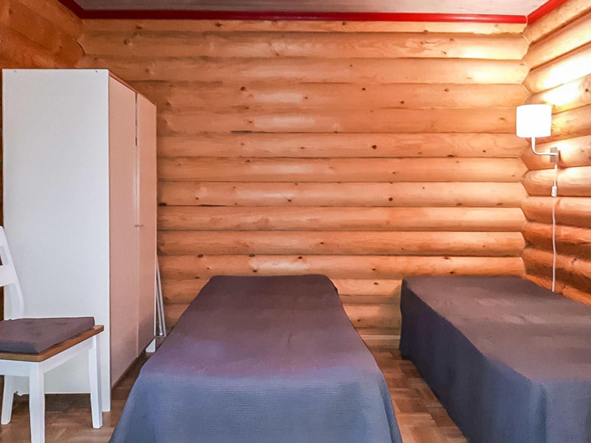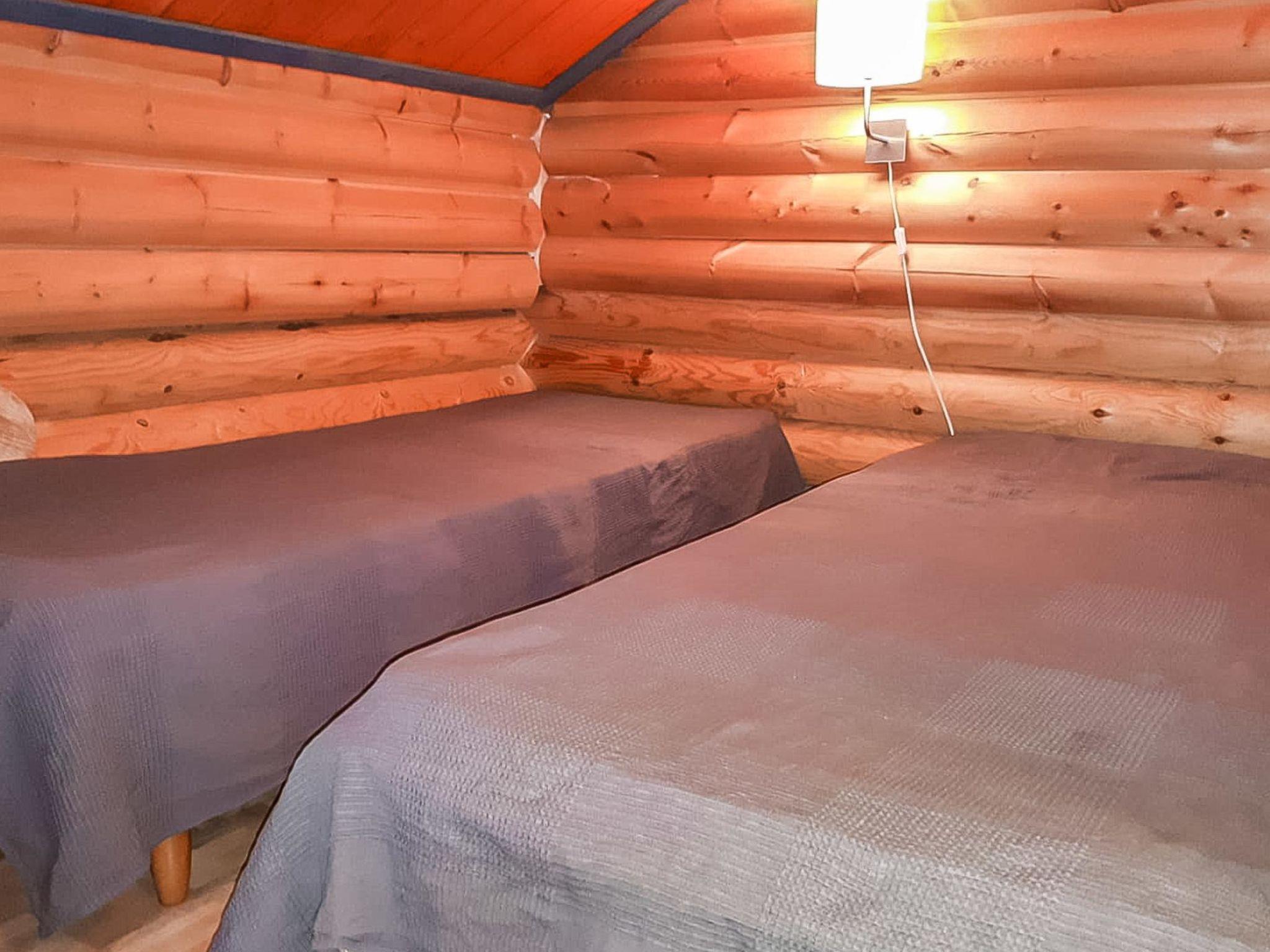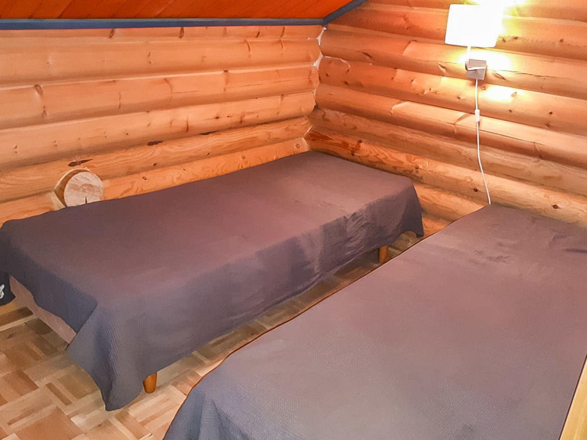 Apartment in log-built semi-detached house 2001, living room 2 extra beds, cooking recess, 2 bedrooms 2 beds in each, spacious sleeping loft with 4 beds, sauna, washroom, open porch, one toilet in downstairs and one in upstairs.