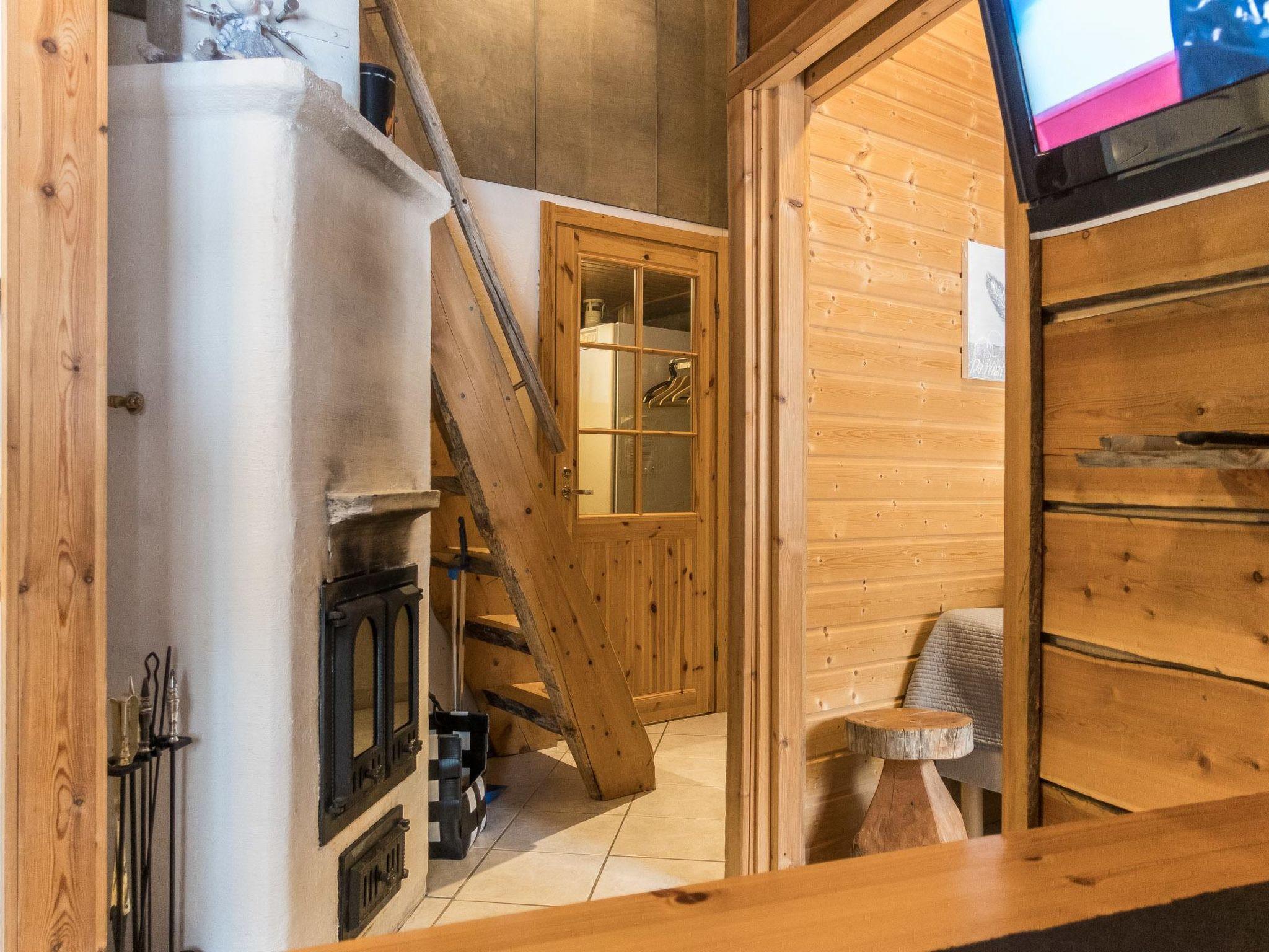 Small silverlog apartment in a small row house, built in 1999, renovated later. Living room, kitchenette, alcove with double bed (width 140 cm), loft (steep stairs, floor area of 16 m²), 2 beds (made upon a double bed), sauna (electric stove), bathroom, terrace.