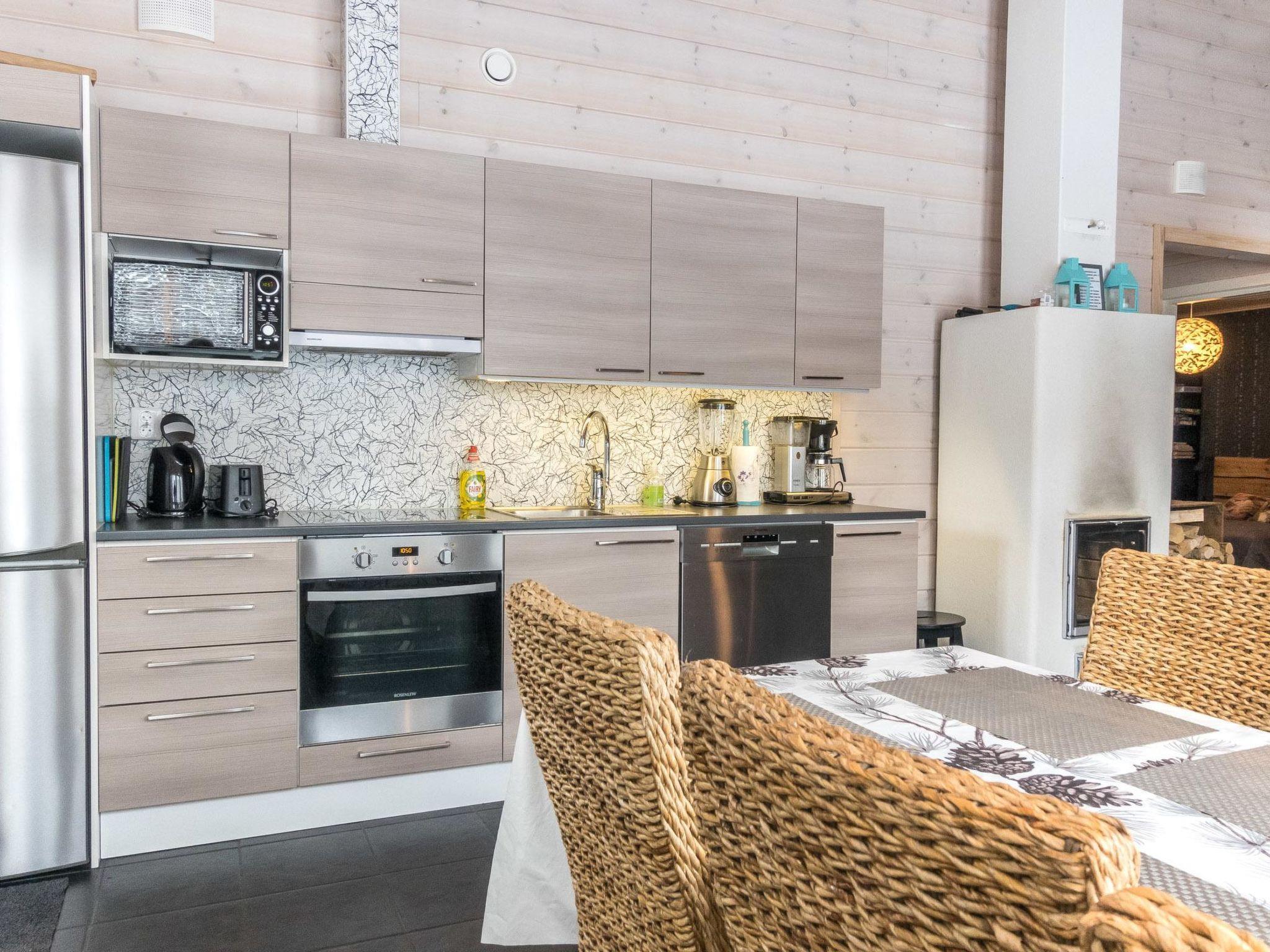 Semi-detached house (log paneled), built in 2014. Kitchen-living room, 2 bedrooms, each with 2 single beds (which are made as double beds), loft 2 single beds, sauna (electric stove), bathroom (2 showers), utility room / dressing room.