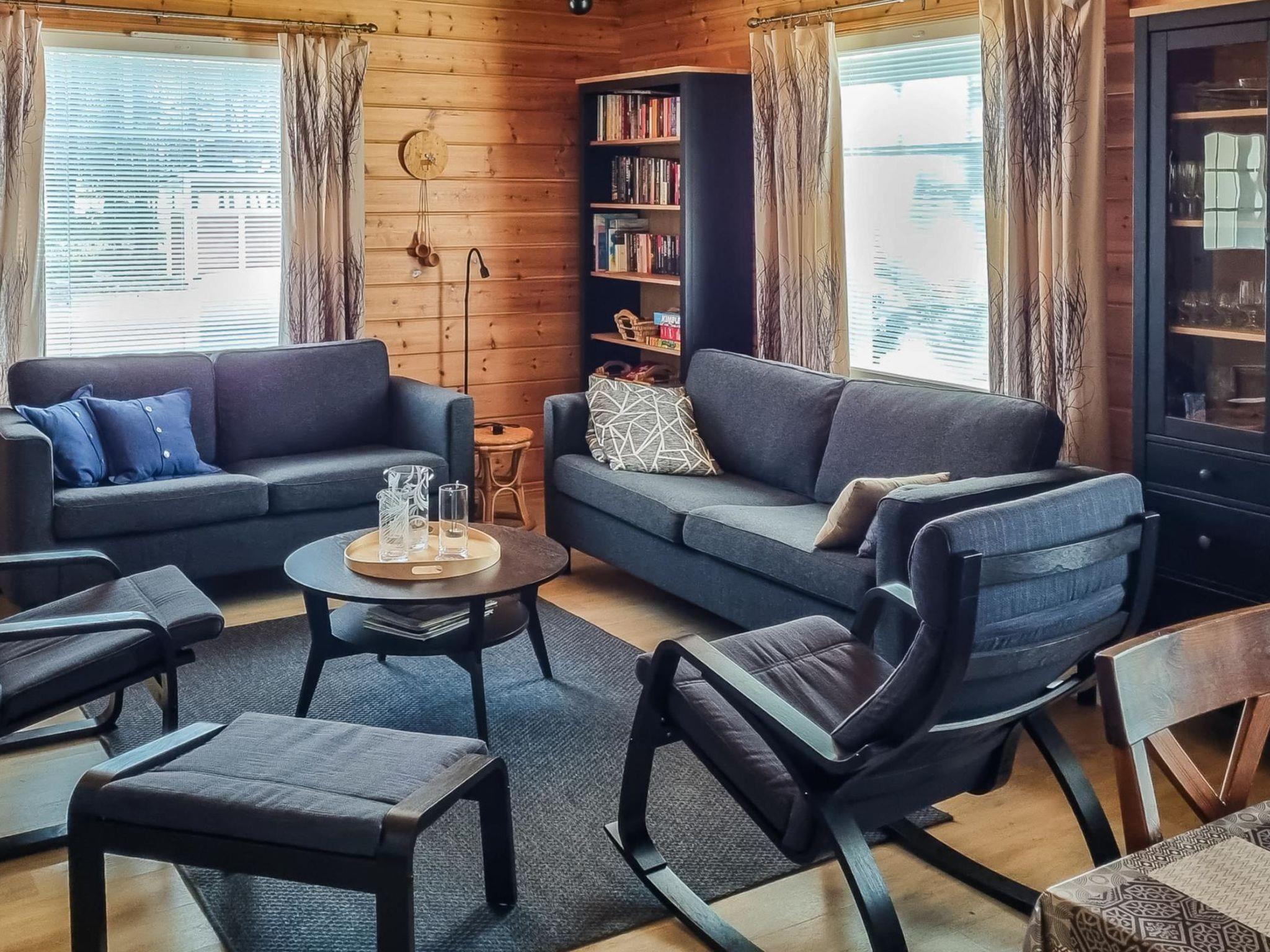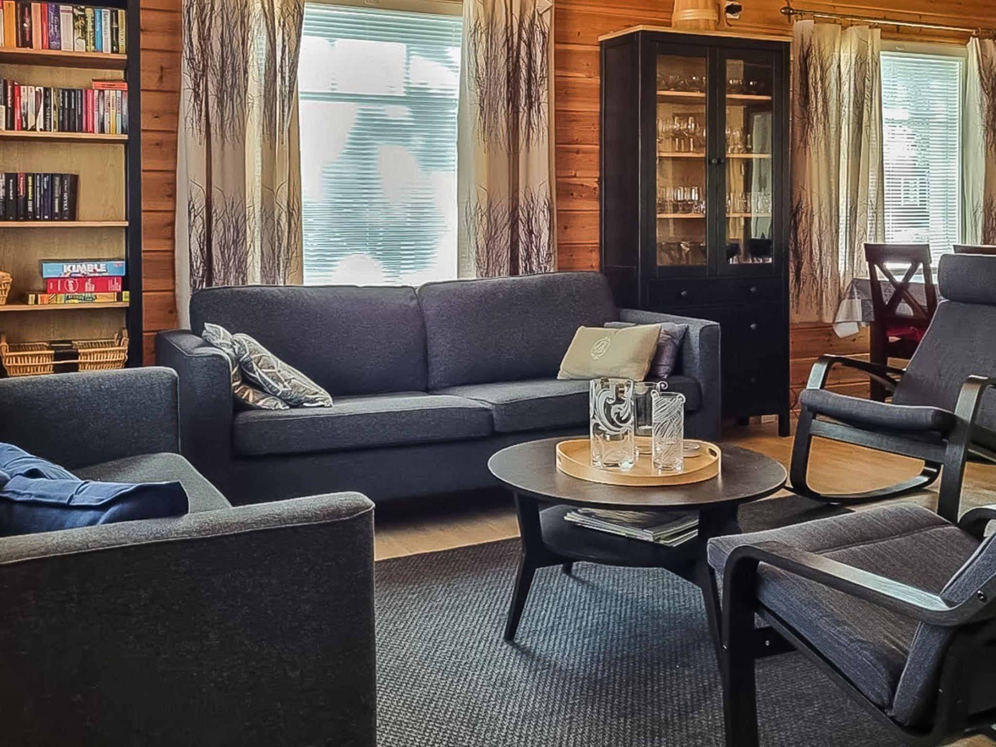 This semi-detached log-panel cottage was built in 2002 and is a perfect choice for a vacation with friends or family. On the ground floor, you will find spacious living areas, including a combined kitchen and living room where you can enjoy shared meals and relax. The ground floor bedroom is furnished with two beds, ensuring a comfortable night's sleep. Completing the amenities on this floor are a sauna with an electric stove, a bathroom, a separate toilet, and an entrance hall with ample storage space for outdoor clothing and equipment.