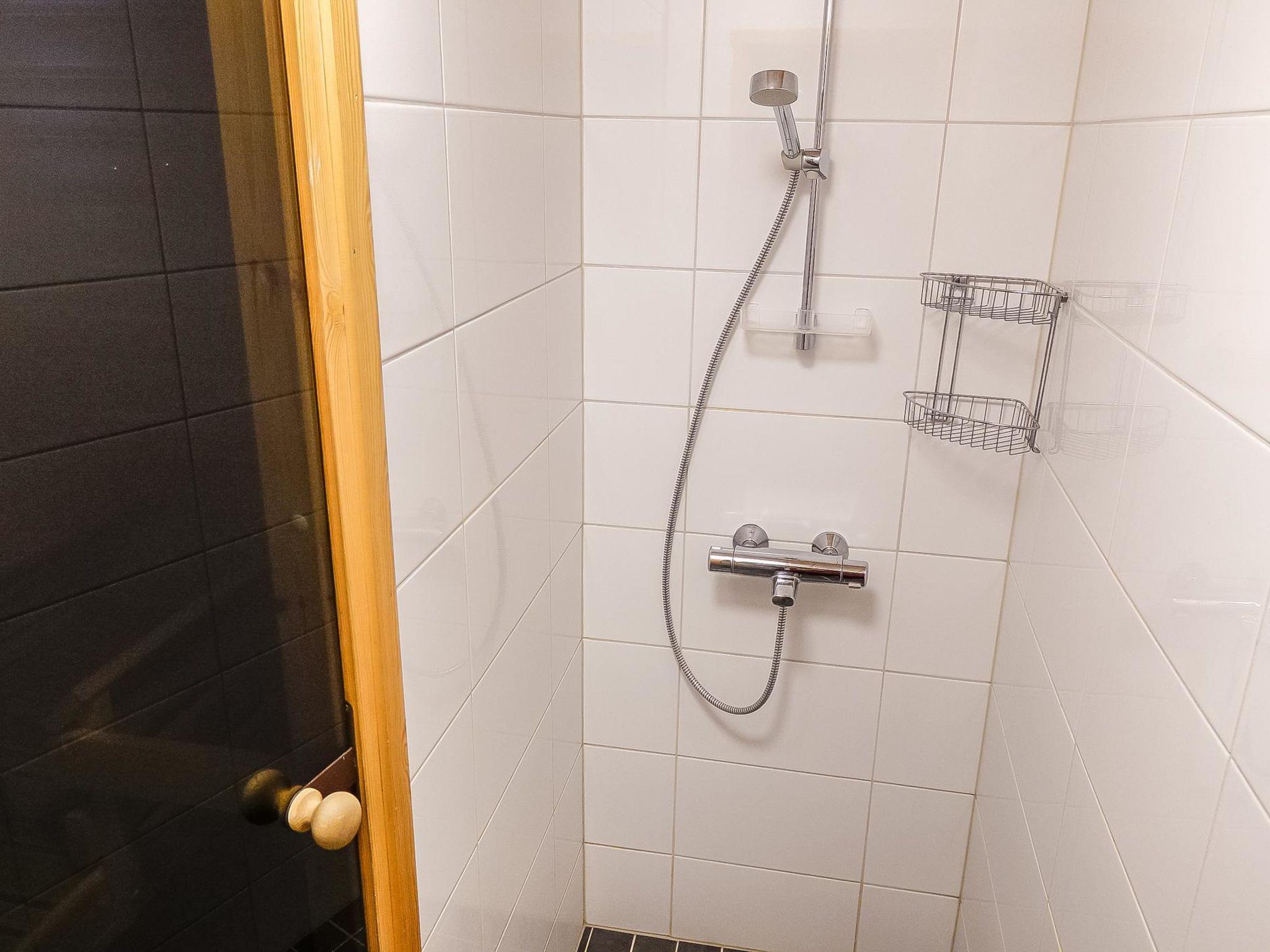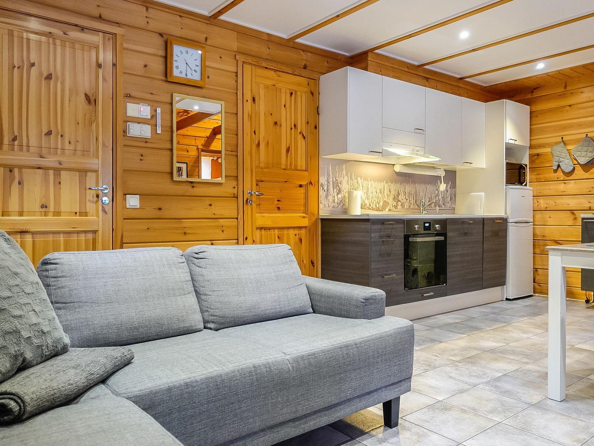 Kitchen-living room, downstairs bedroom with two single beds, upstairs room with 2 single beds ( steep stairs to upstairs/loft), a loft area with two single beds (beds can be moved, if necessary, to the upstairs spacious bedroom), sauna (electric stove), washroom / toilet, terrace. Underfloor heating throughout the ground floor.