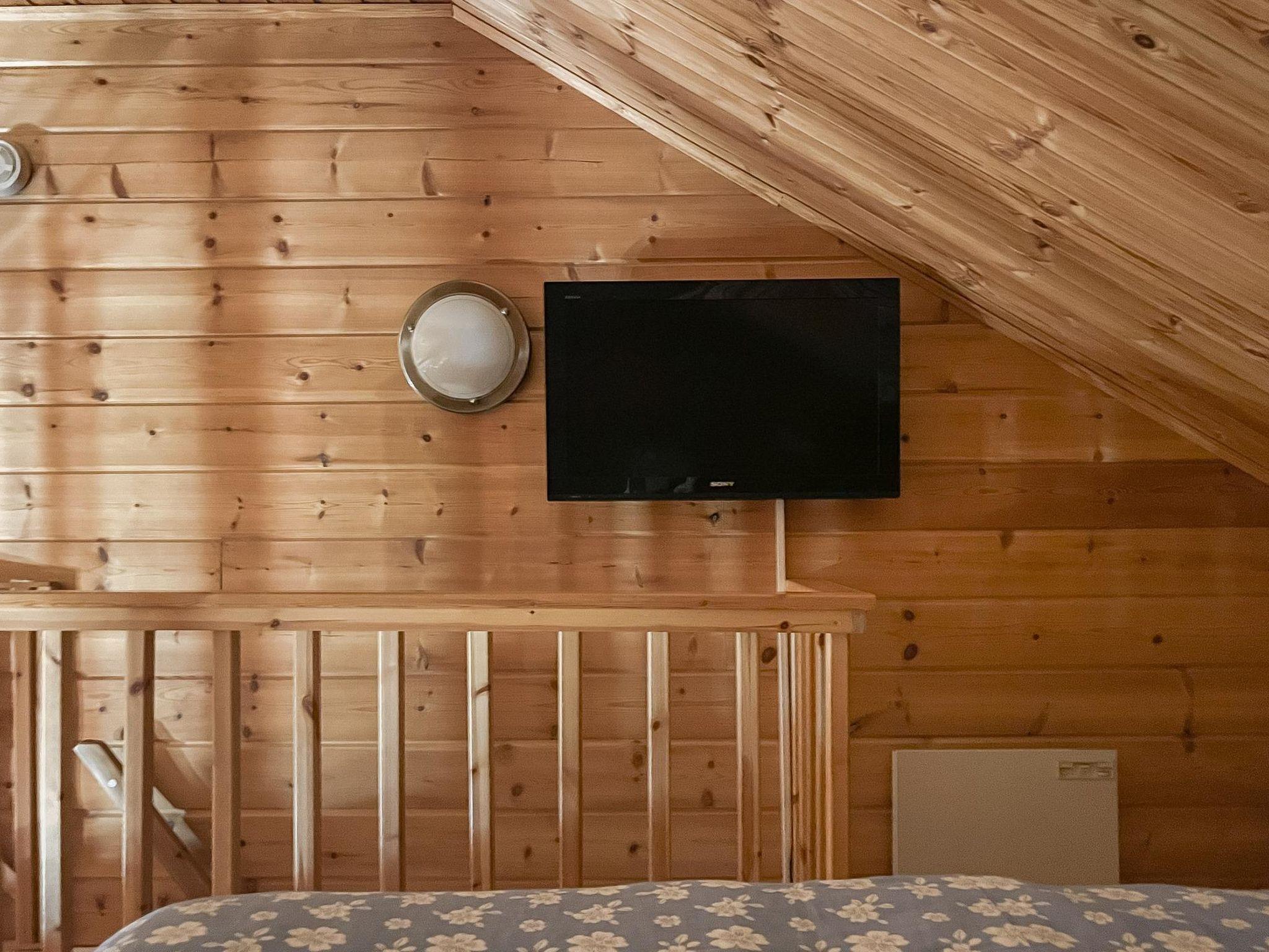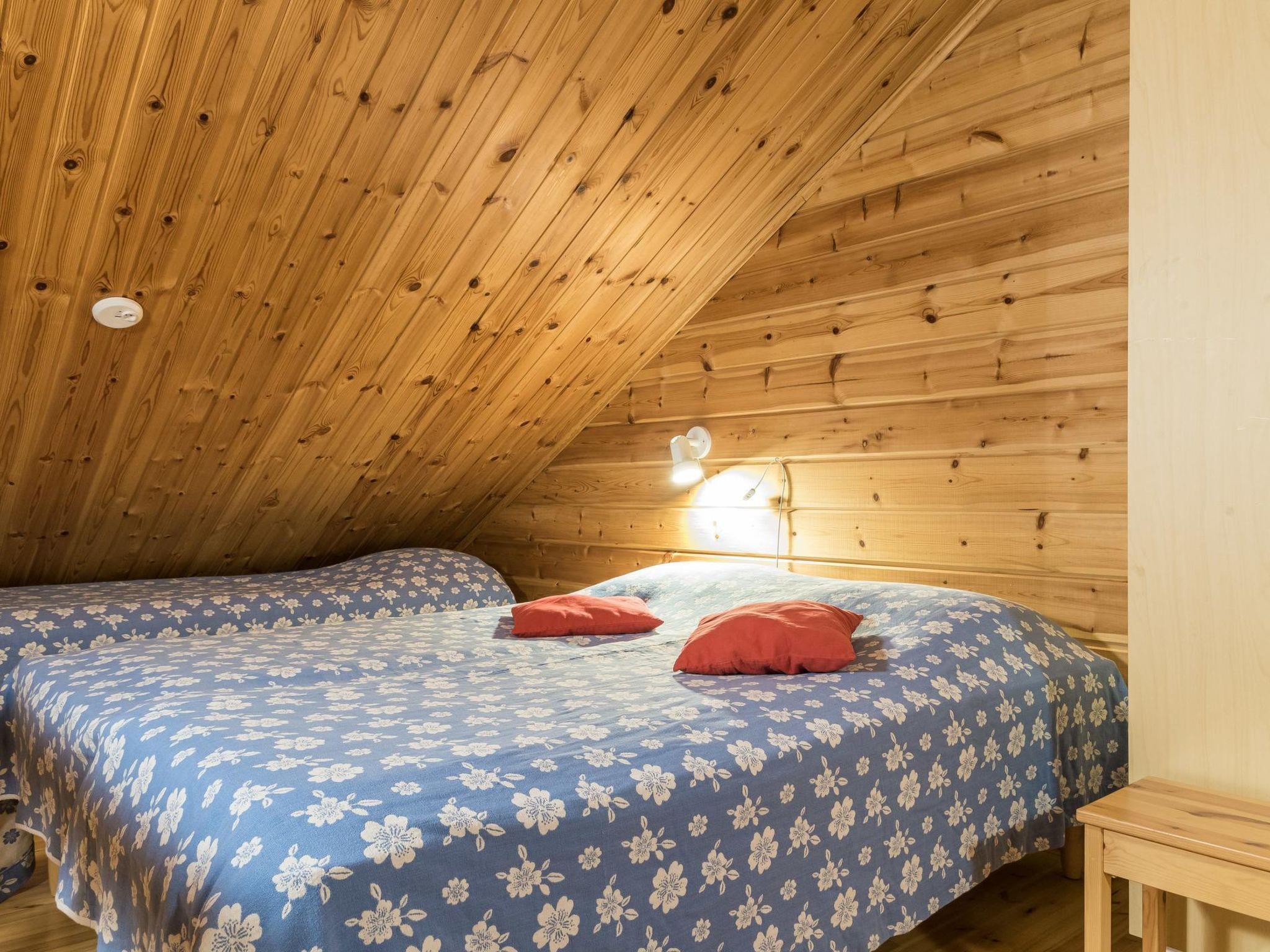 Living room, kitchenette, loft divided into two compartments by wall (one compartment with 3 beds, one with 2 beds) there is sloping ceiling in the loft, sauna (electric stove), washroom, separate WC, open porch, storage room. Ground floor 39 m², loft 24 m².
