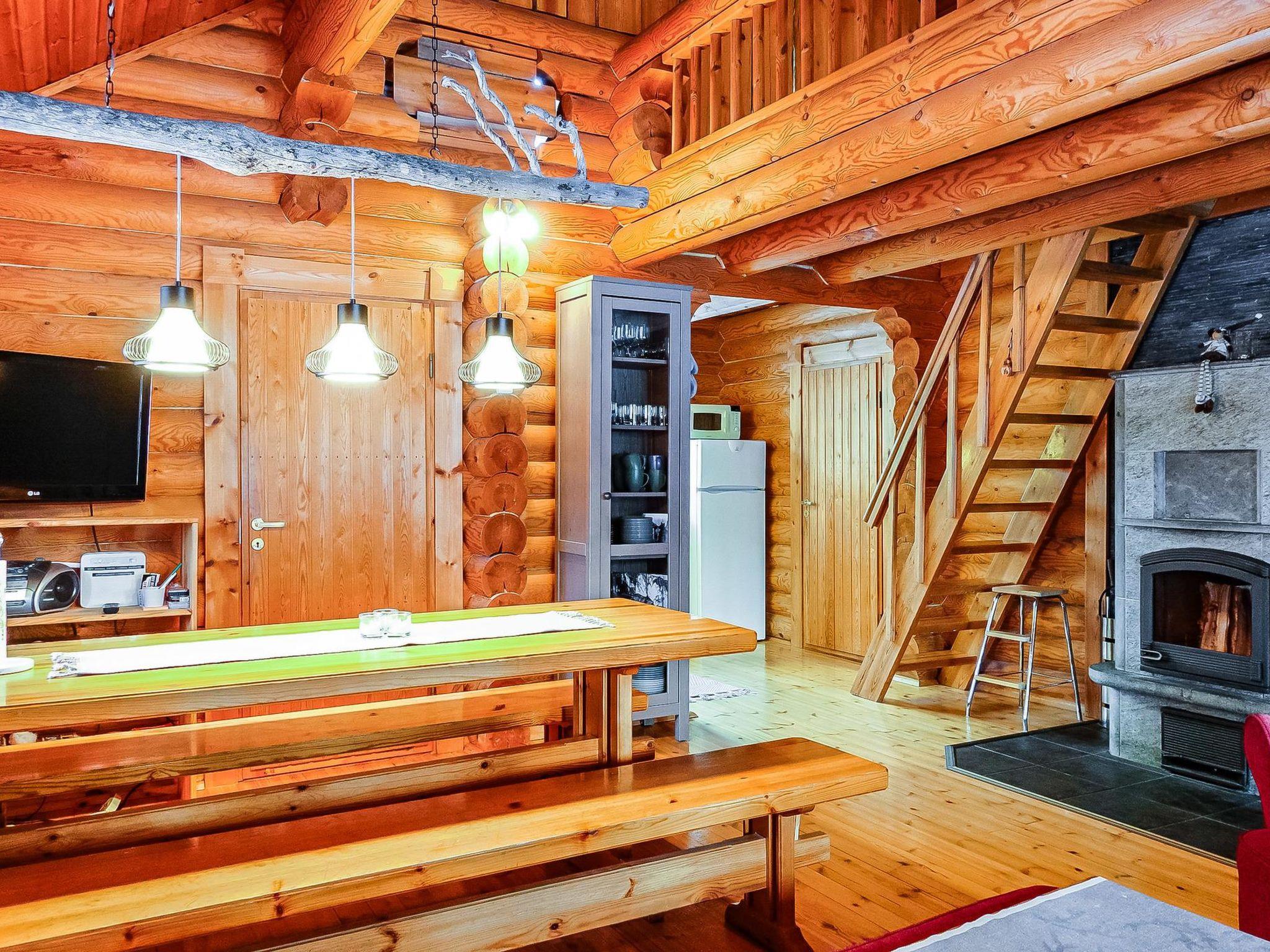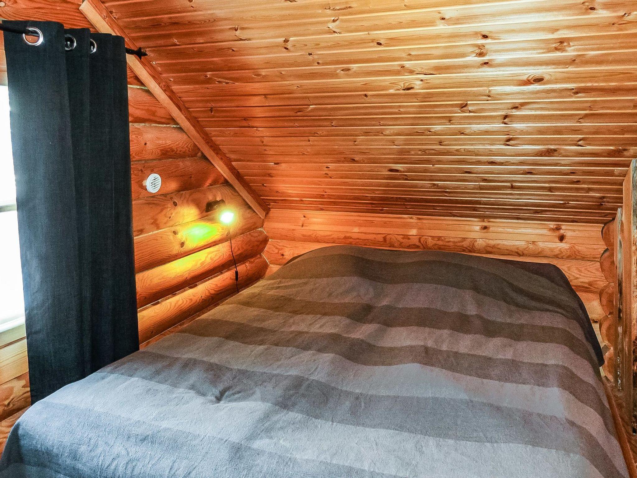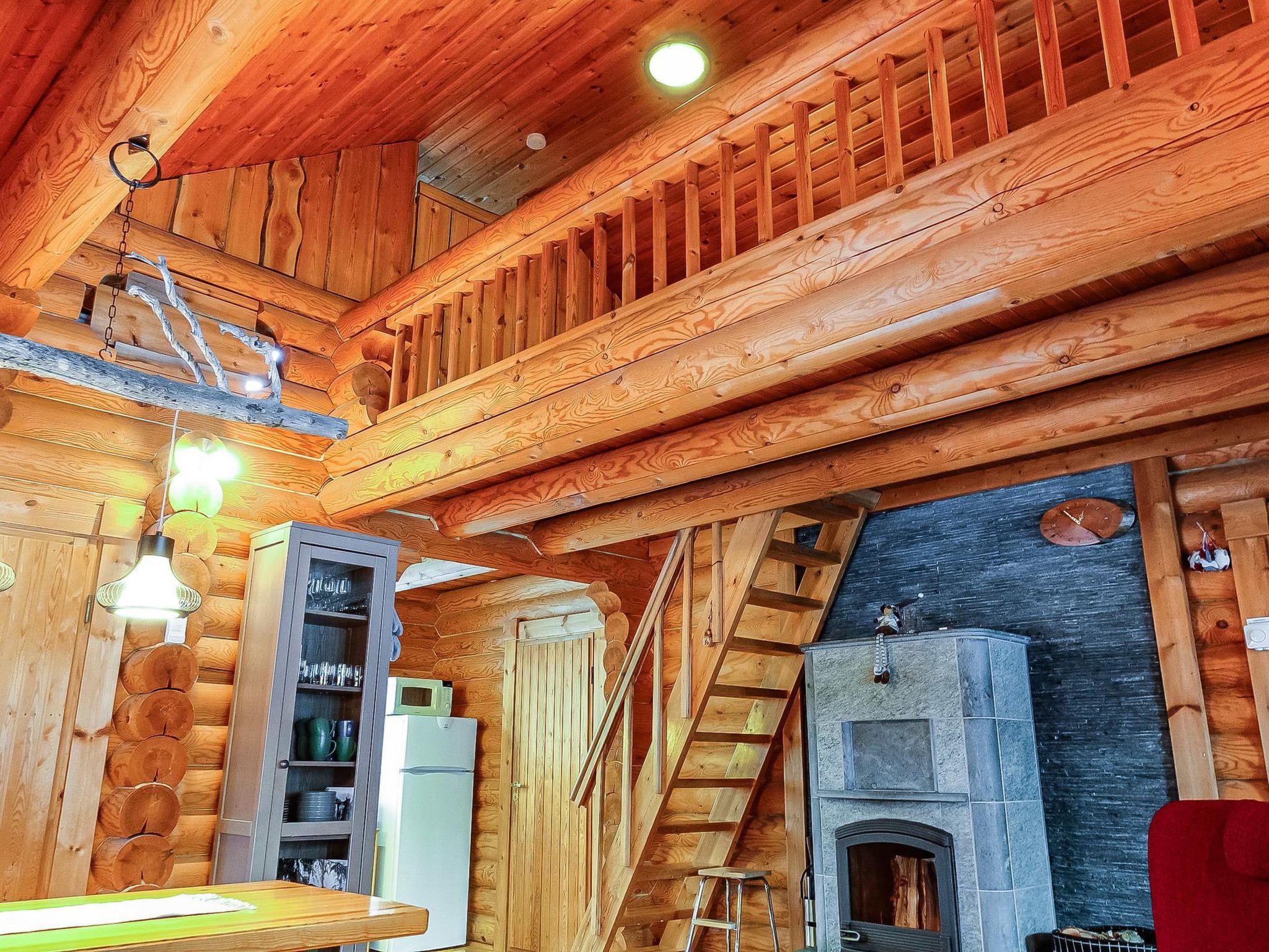 Log cabin, built in 1991, renovated later. Kitchen-living room, 2 bedrooms, both with 1 single bed (width 120 cm), bedroom upstairs (sloping roof) with 3 single beds, loft area has two single beds. Sauna (wood-burning stove), shower room / toilet, covered porch. Barbecue hut; electric light and power socket. Lockable (cold) storage for firewood, suitable also for preservation and maintenance of skis.