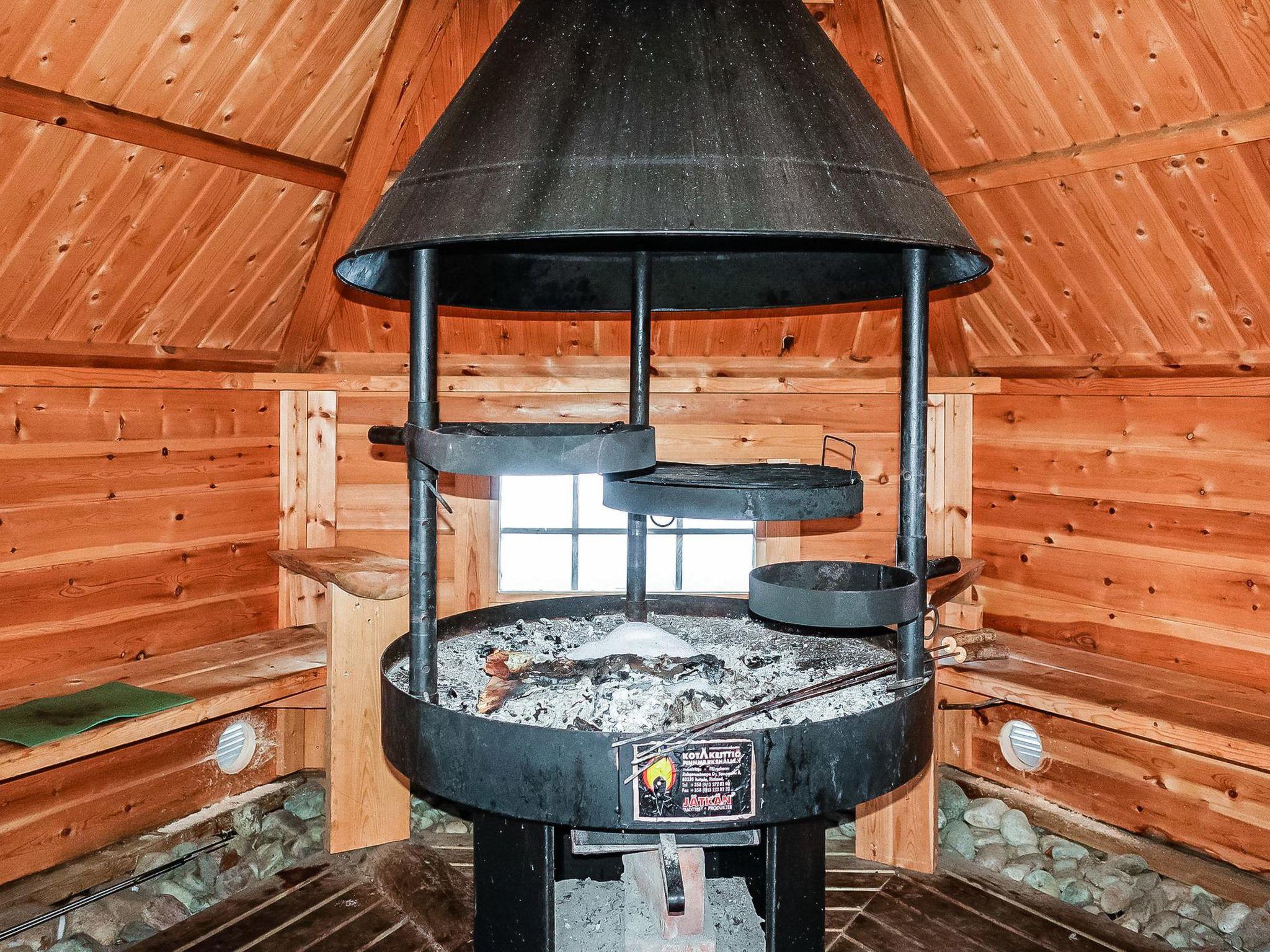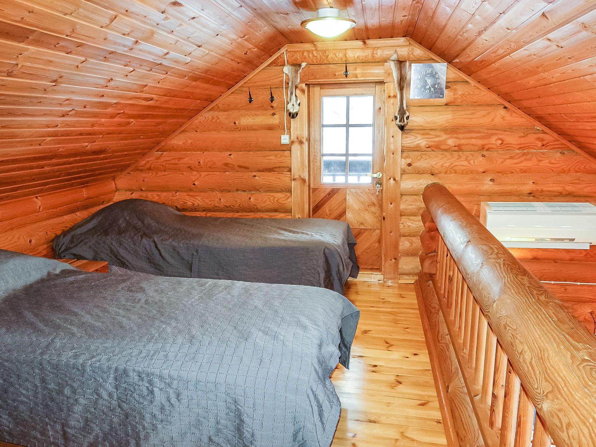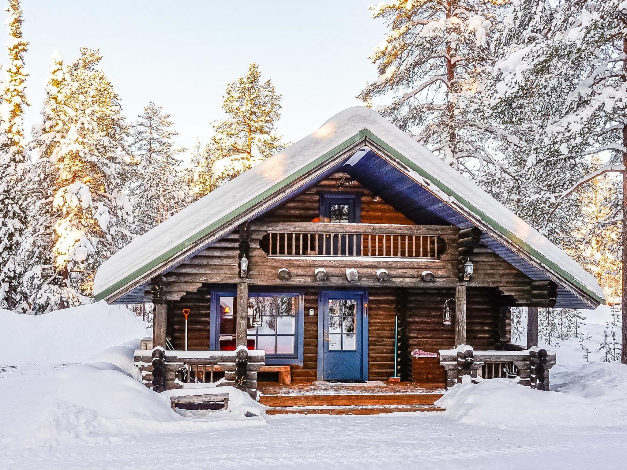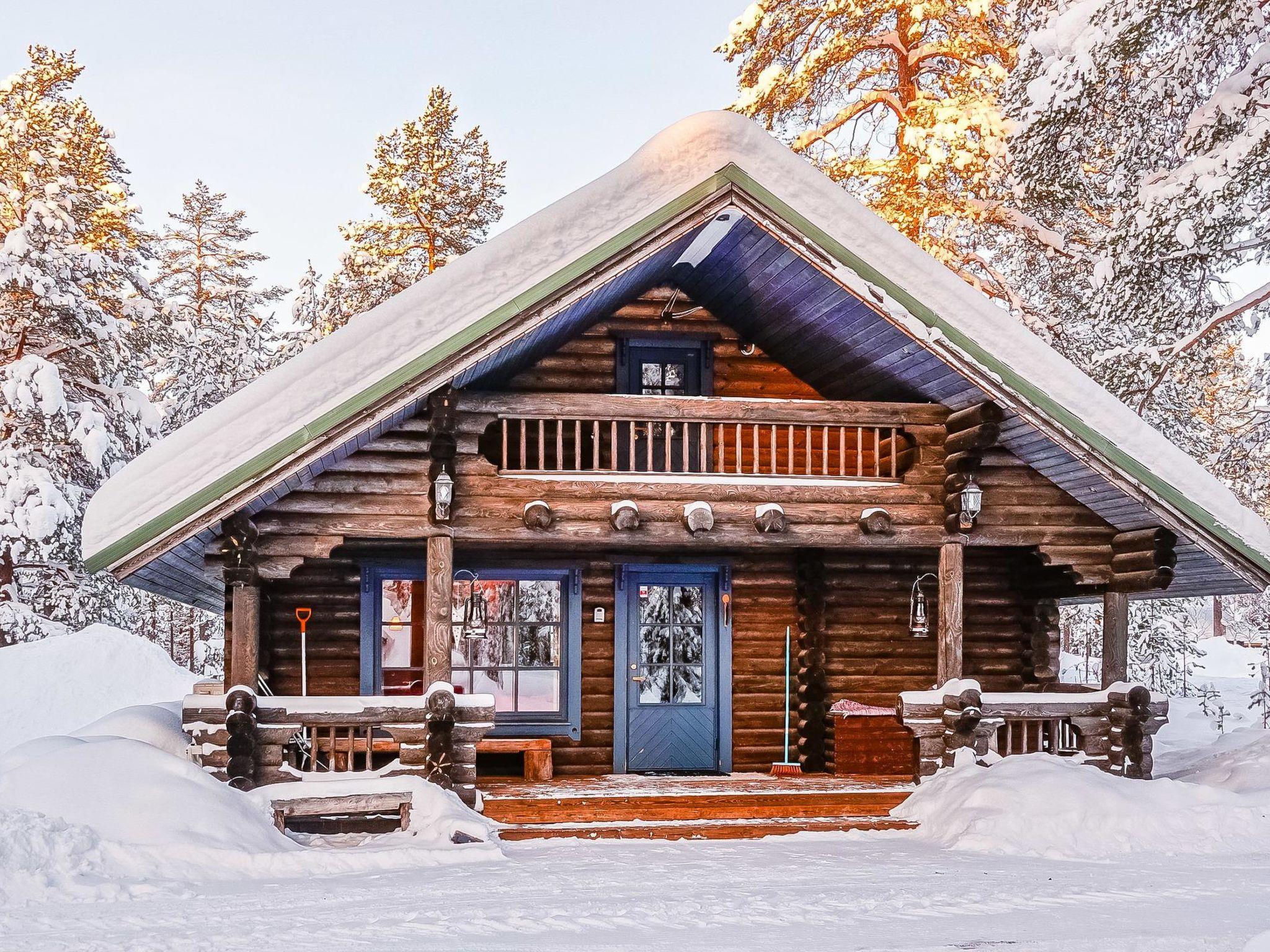 Log cabin, built in 1991, renovated later. Kitchen-living room, 2 bedrooms, both with 1 single bed (width 120 cm), bedroom upstairs (sloping roof) with 3 single beds, loft area has two single beds. Sauna (wood-burning stove), shower room / toilet, covered porch. Barbecue hut; electric light and power socket. Lockable (cold) storage for firewood, suitable also for preservation and maintenance of skis.