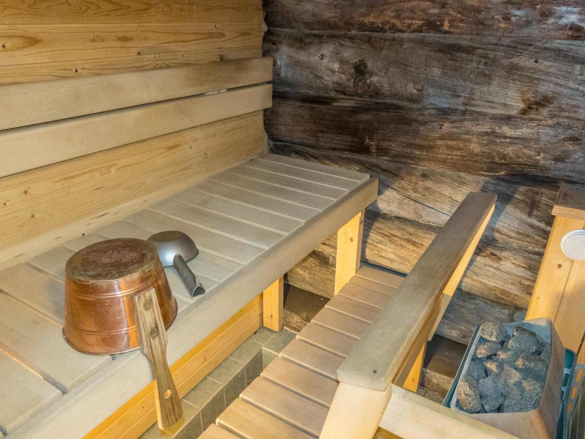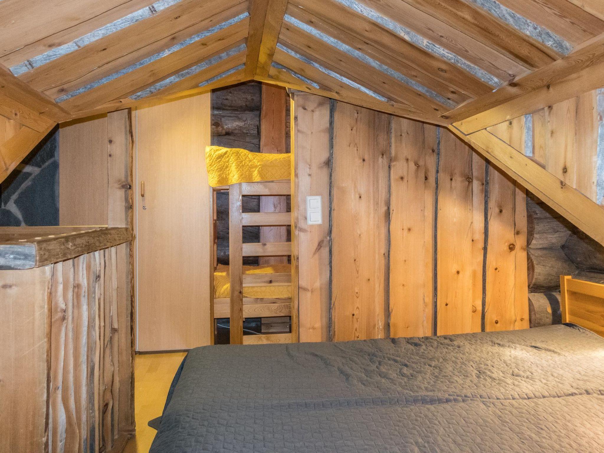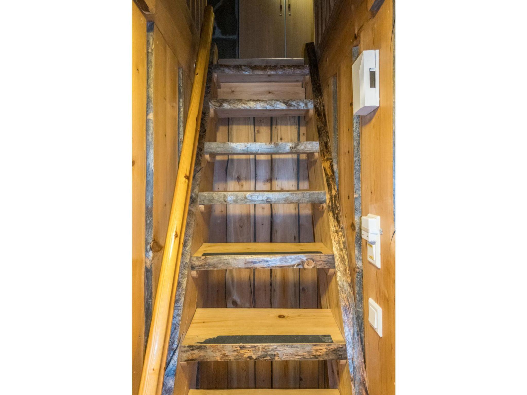 Log apartment, built in 1999. Kitchen-livingroom with sofa bed, loft (15 m²) has two sleeping areas, separated by partition wall, one area with bunk bed, another (lower one) with 2 beds. Sauna with electric stove, bathroom/toilet, hallway and small covered porch. Narrow staircase with quite steep stairs to the loft.