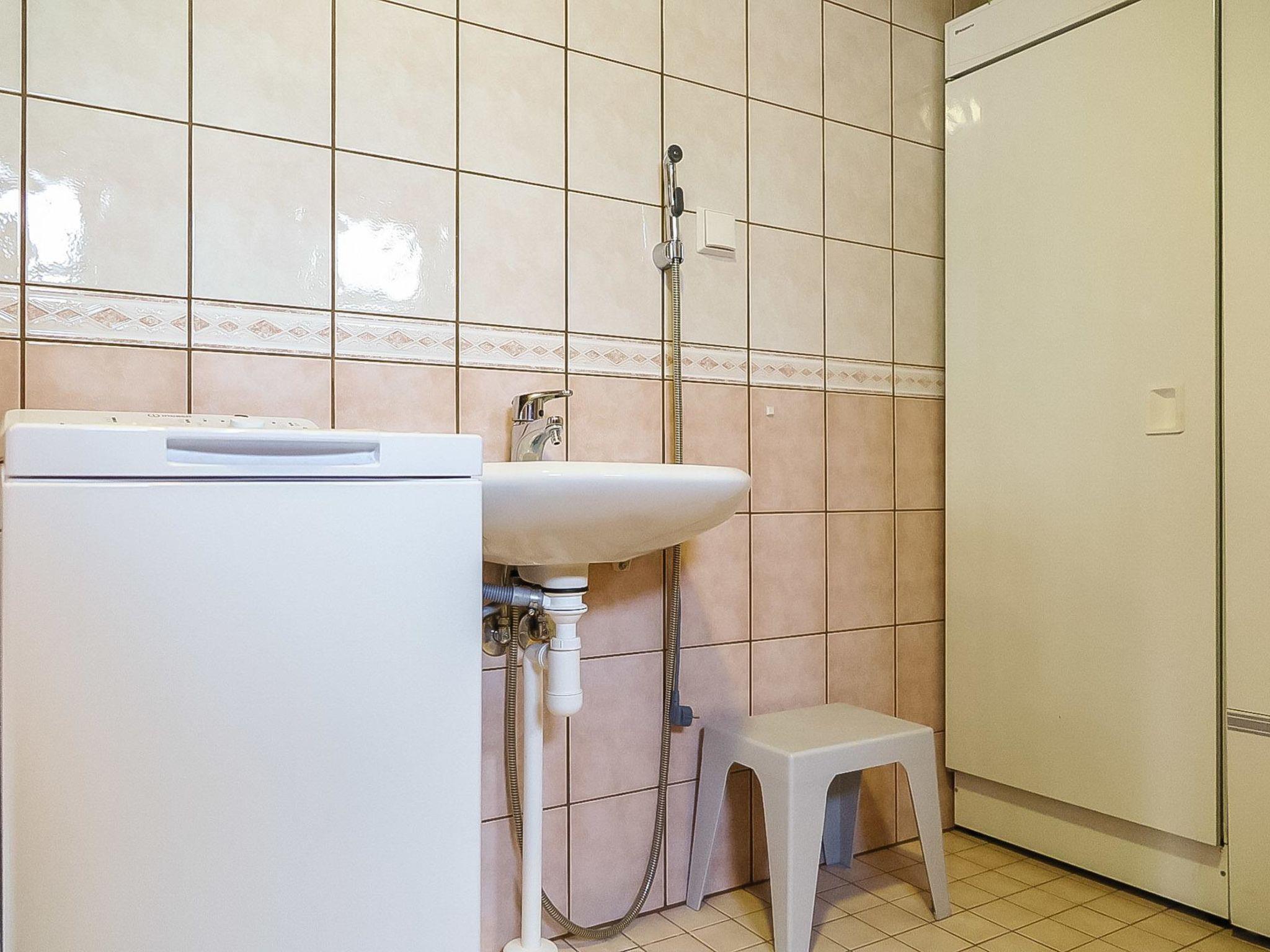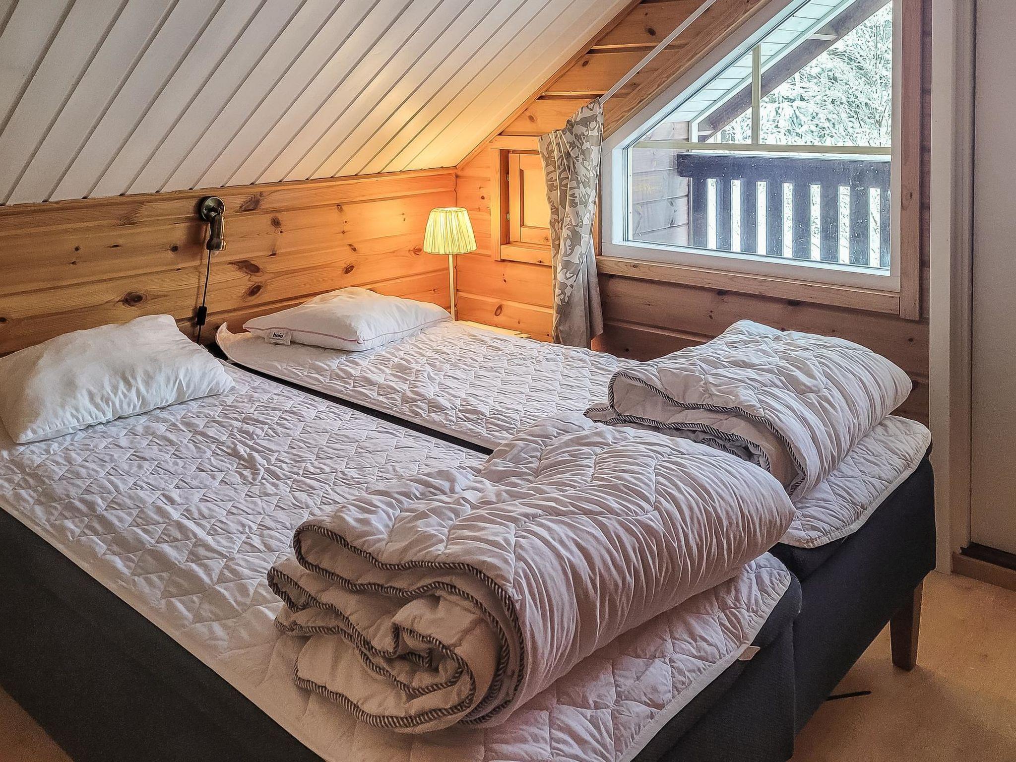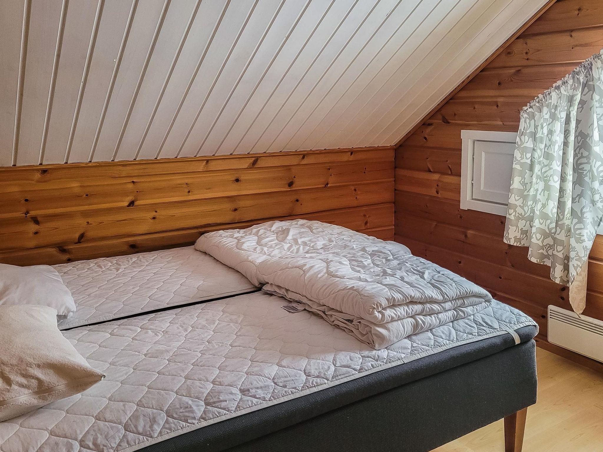 On the ground floor living room, kitchen, bedroom 2 beds, sauna (electric stove), washroom (2 showers), separate toilet and covered terrace. Upstairs, 4 bedrooms, all with 2 single beds, toilet and balcony. Child gate upstairs.