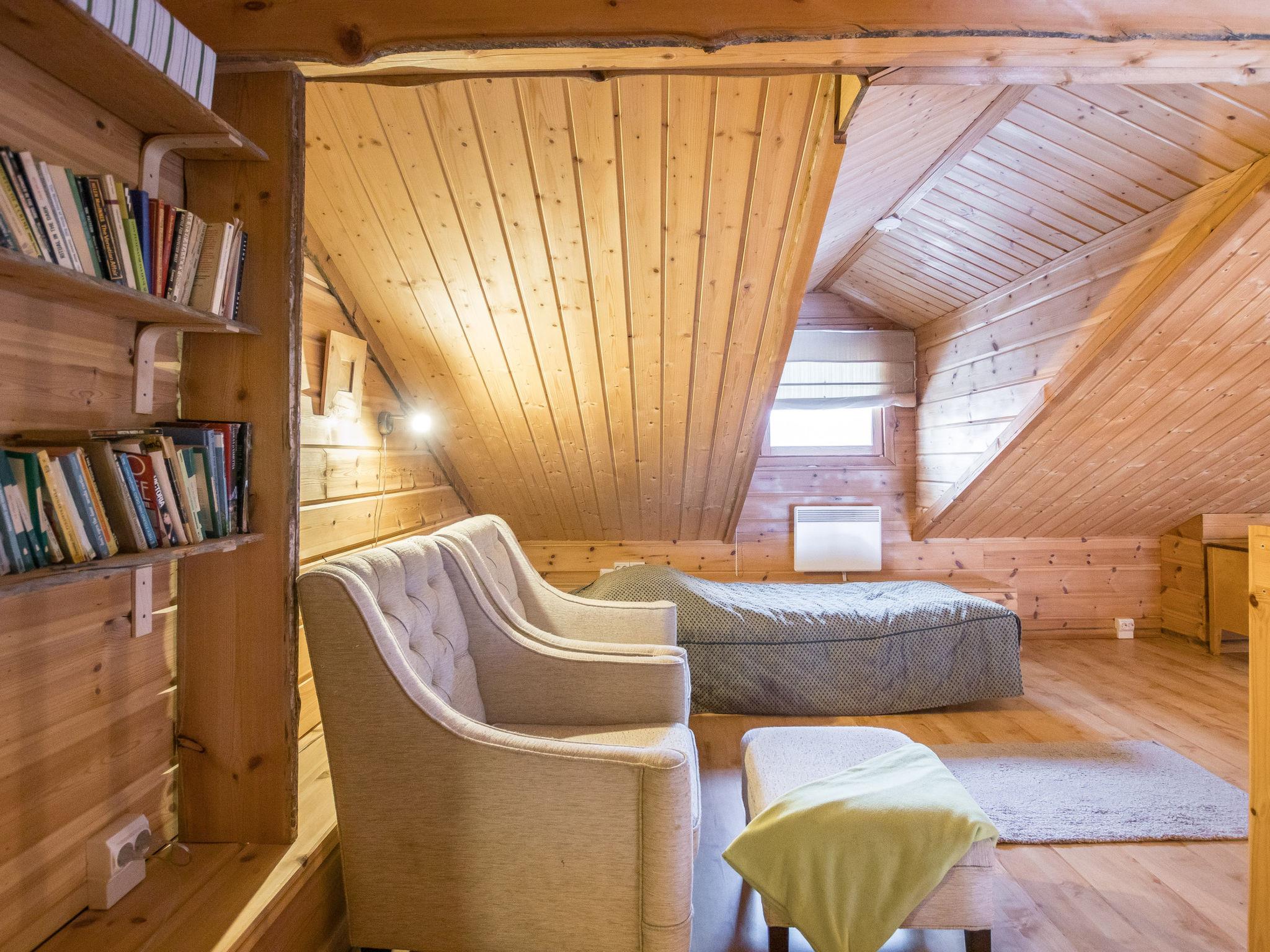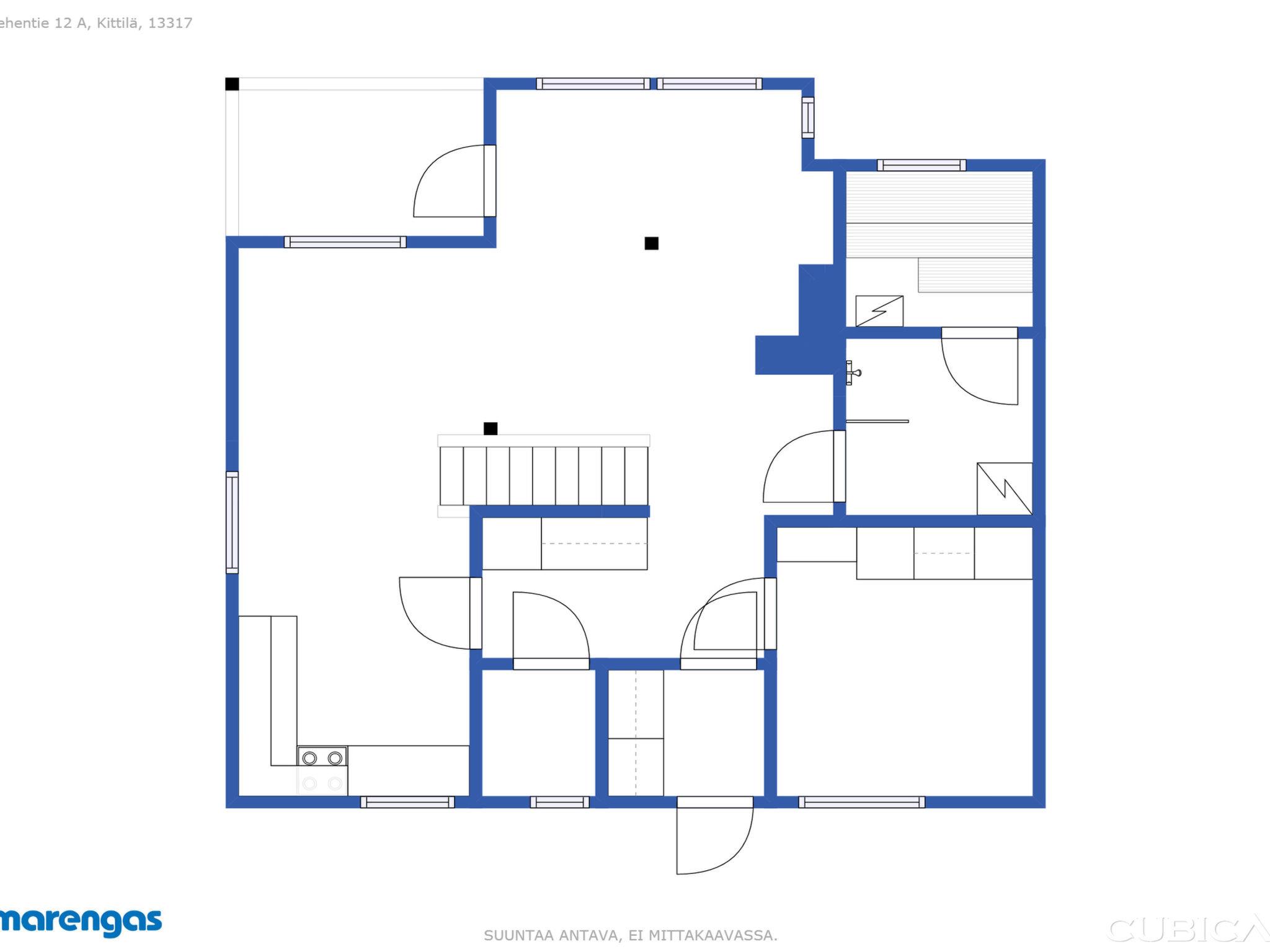 Wooden semi-detached house, built in 2005. Living room with sofa, kitchenette, bedroom with double bed (sliding door). Loft with double bed and 2 single beds (widths 80 cm and 120 cm). Sauna, washing room, separate toilet and small covered porch. The kitchen also has coffee and water kettles, an espresso machine (the customer brings the capsules) and a toaster. 43-inch Smart TV. You can watch Netflix, Prime Video, Google Play, etc. The kitchen and living room furniture were renovated in 2025, and the washing machine was replaced in 2024.