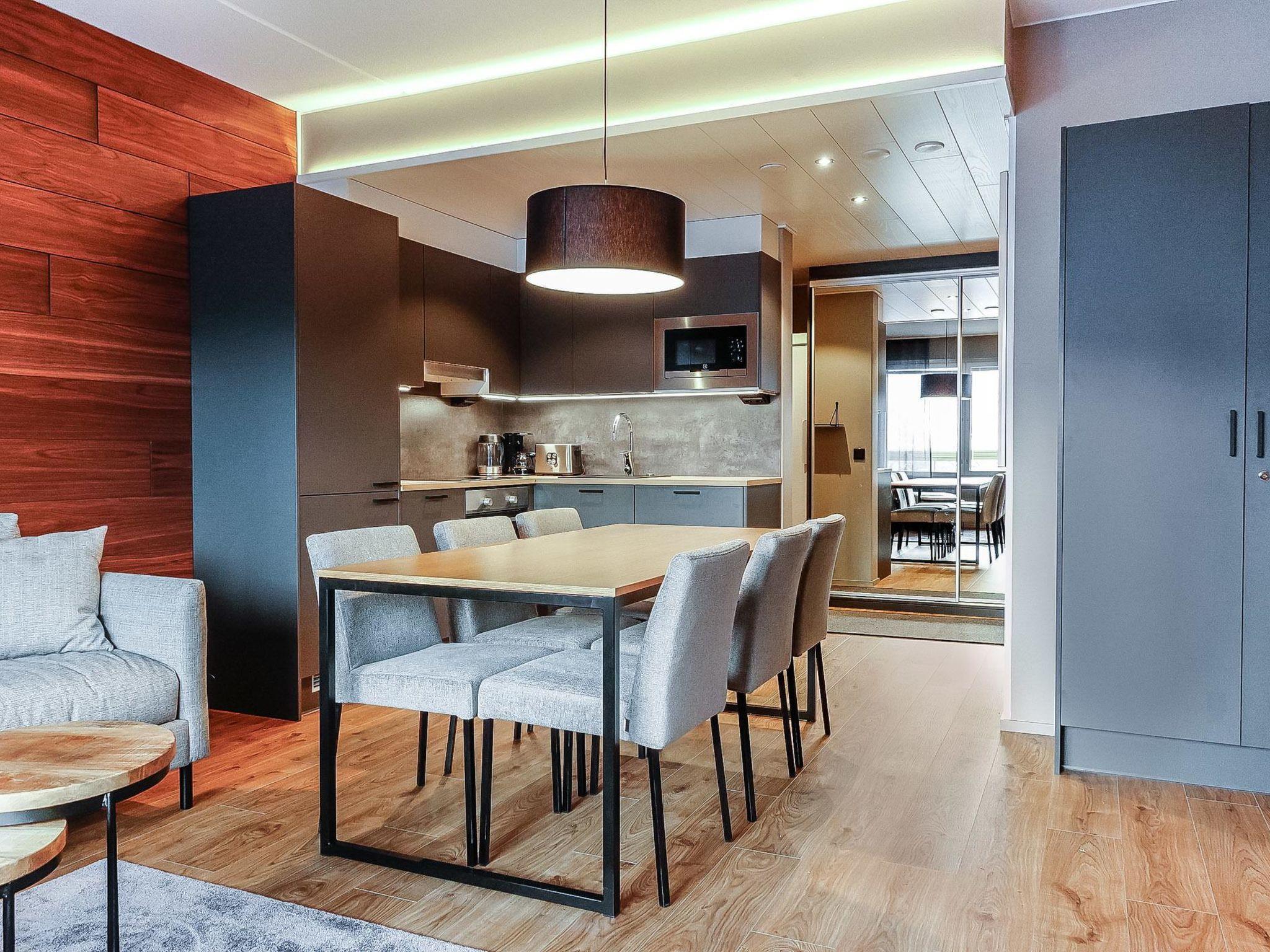 170 km to the north from Rovaniemi, in the Levi tourist center, nearby Levi’s main ski slope (Front slope). View to the slope from living room and glazed balcony. All essential services are within walking distance.