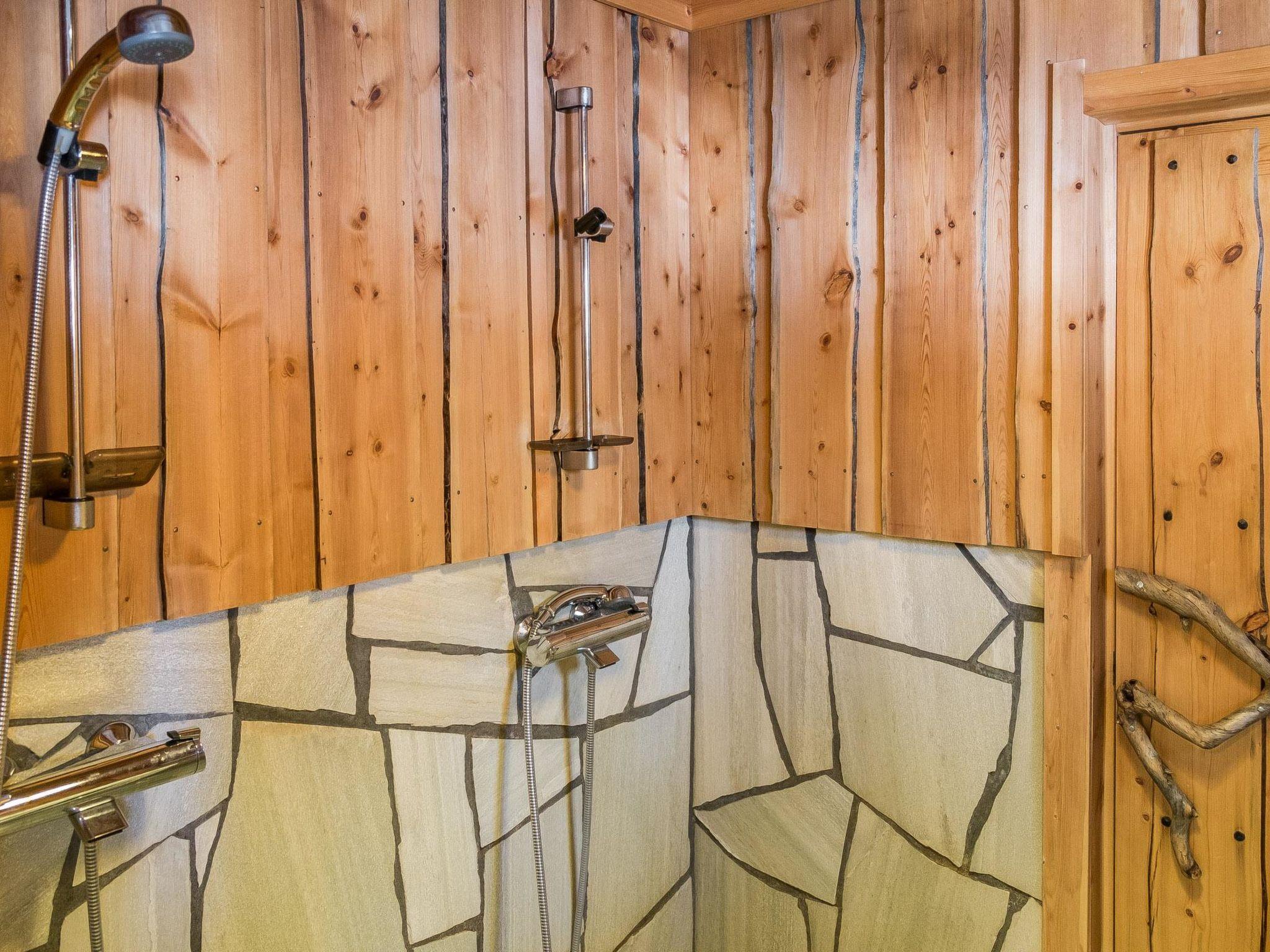 Villa is in one floor. It has three bedrooms from which one has a double bed, one has two single beds and one has two full bunk beds. Living room is very spacious and offers seating for the entire group. Kitchen and dining area is right next to the living room. In addition the villa has a dressing room, bathroom with two showers and a spacious sauna. Toilet is separate.