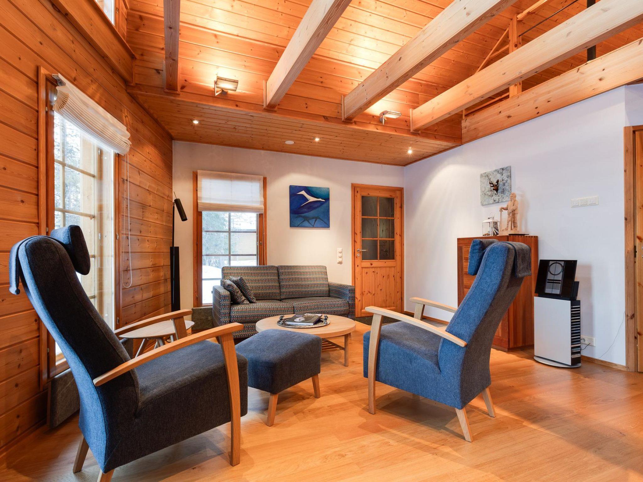 Log cabin, inner walls are paneled, built in 2002. Living room/kitchen, 2 bedrooms, both with double bed (width 200 cm and 180 cm), downstairs there is also a sofa bed (bed size 140x190cm).