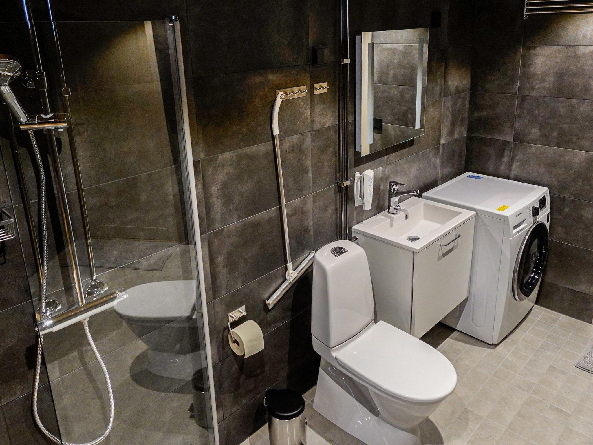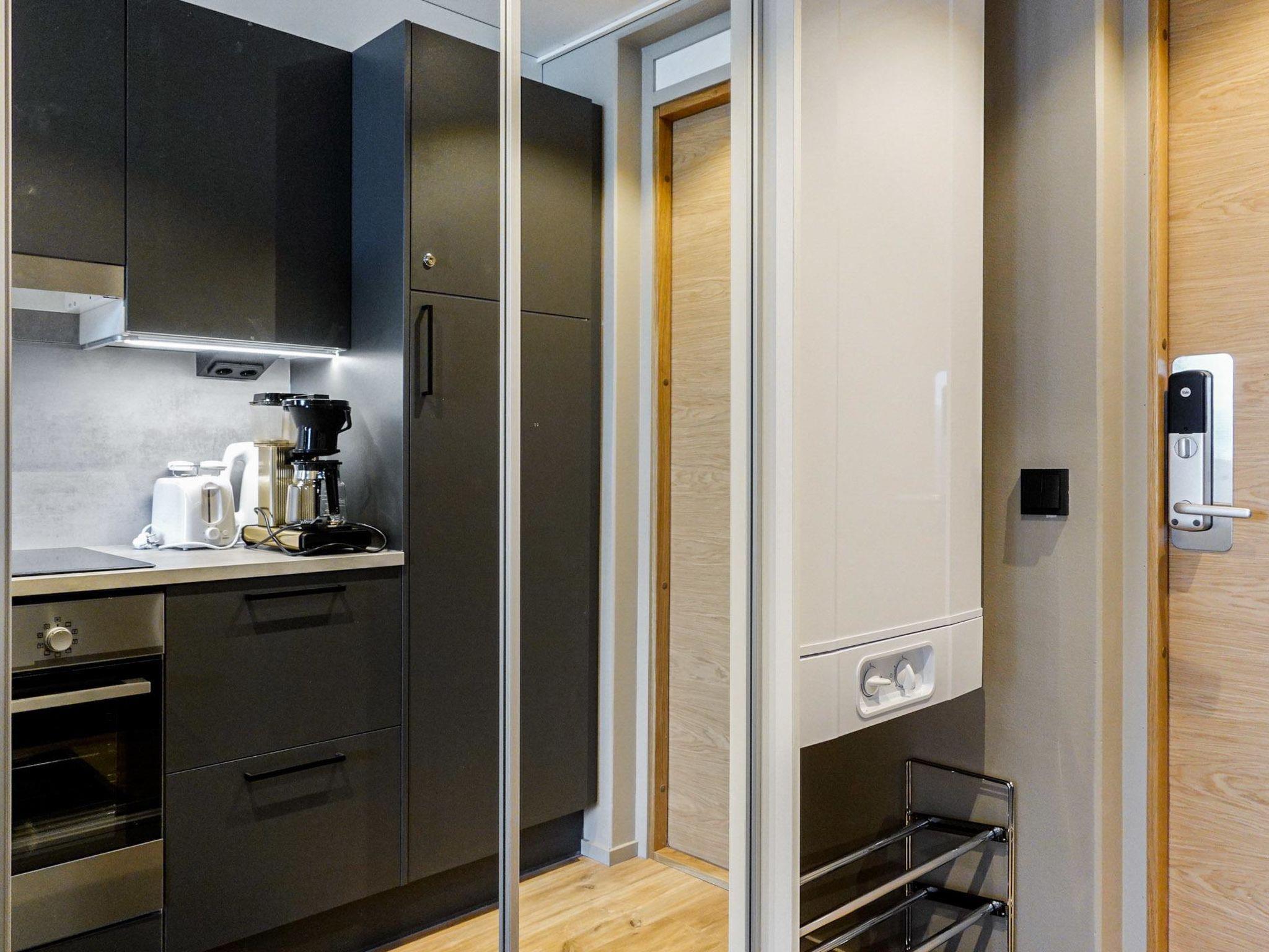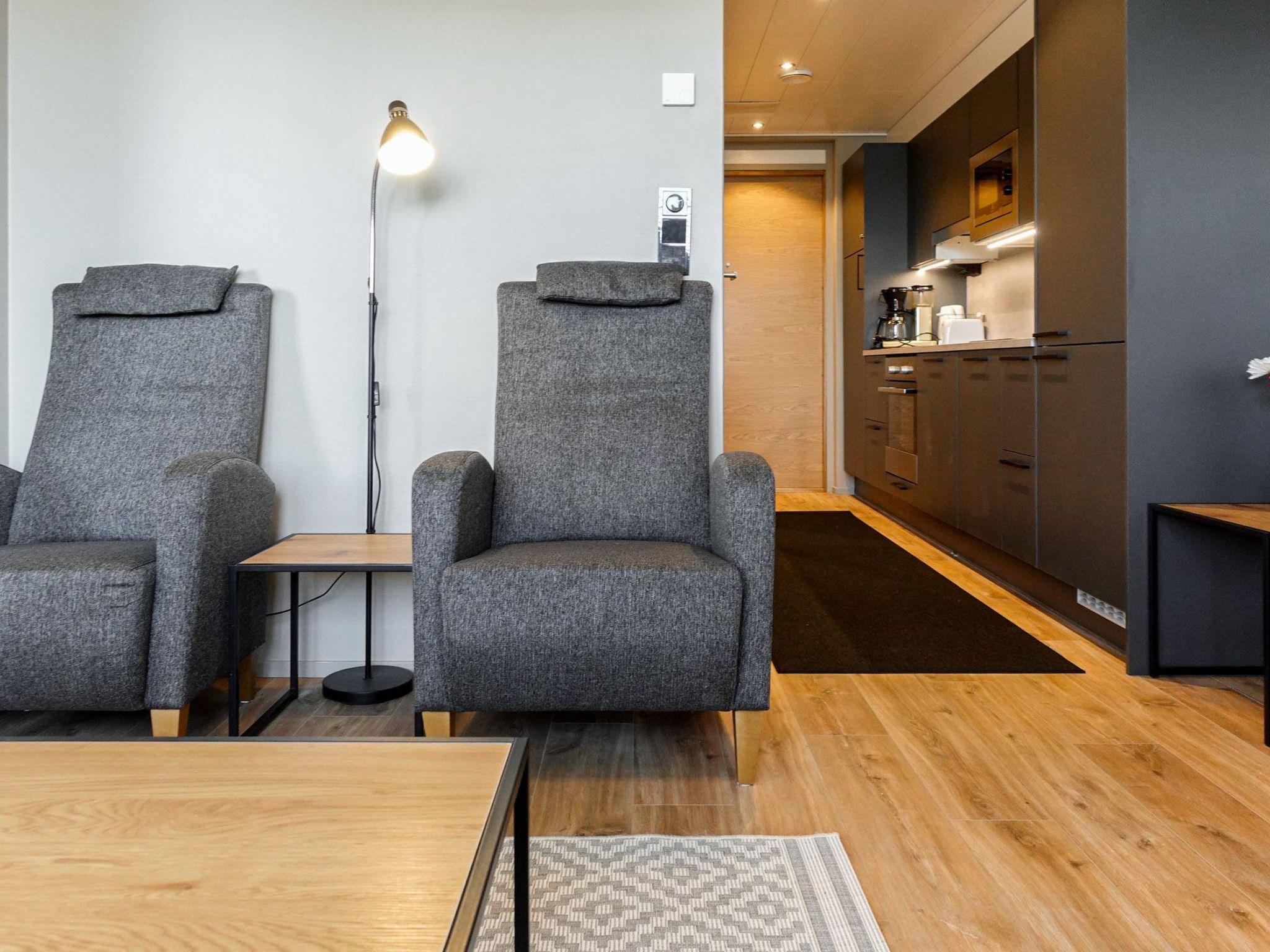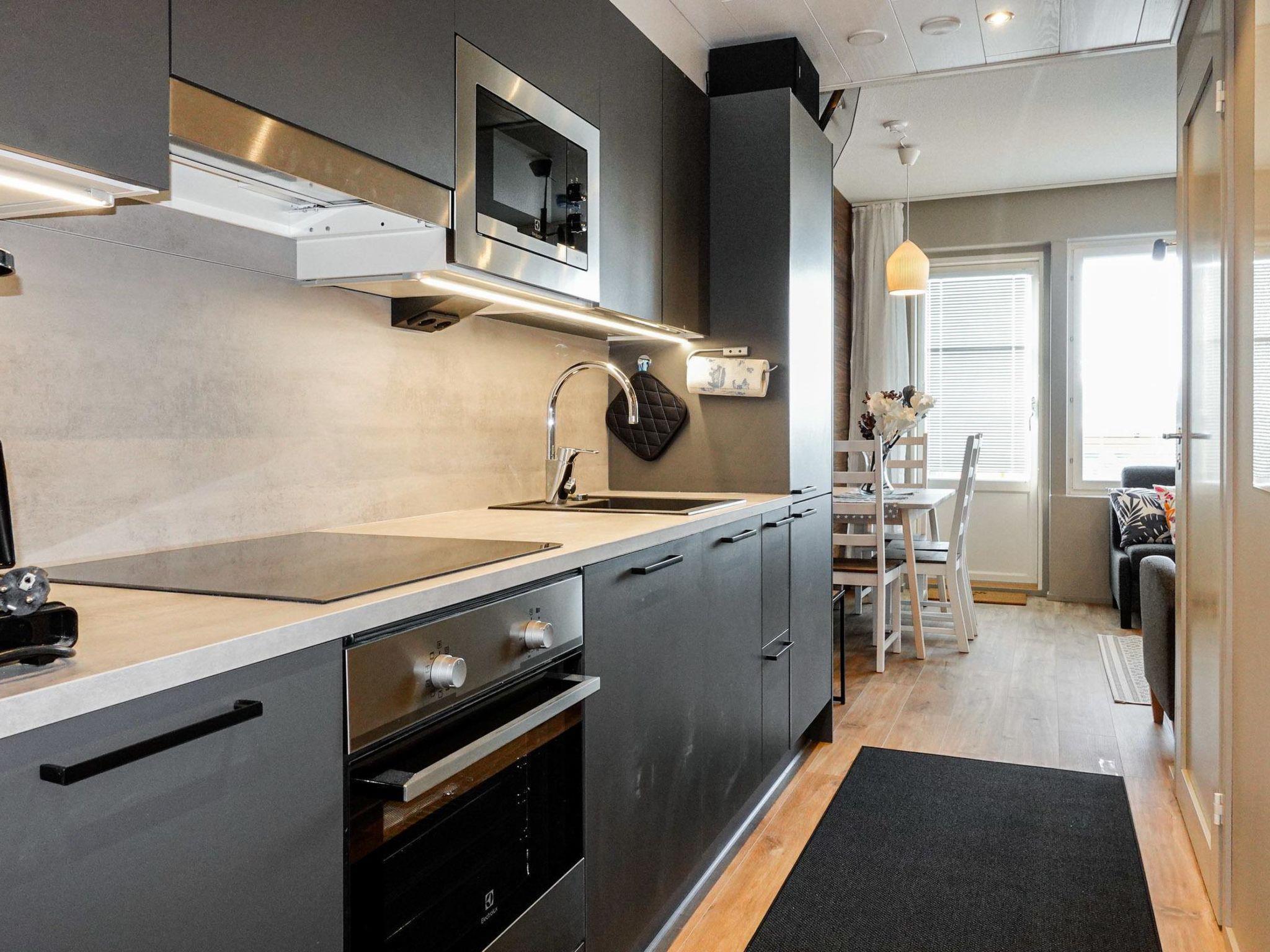 Living room/kitchen with sofa bed, bedroom with 2 beds, sauna, washroom/WC and balcony. View over the Front slope and Levi center from the balcony.
