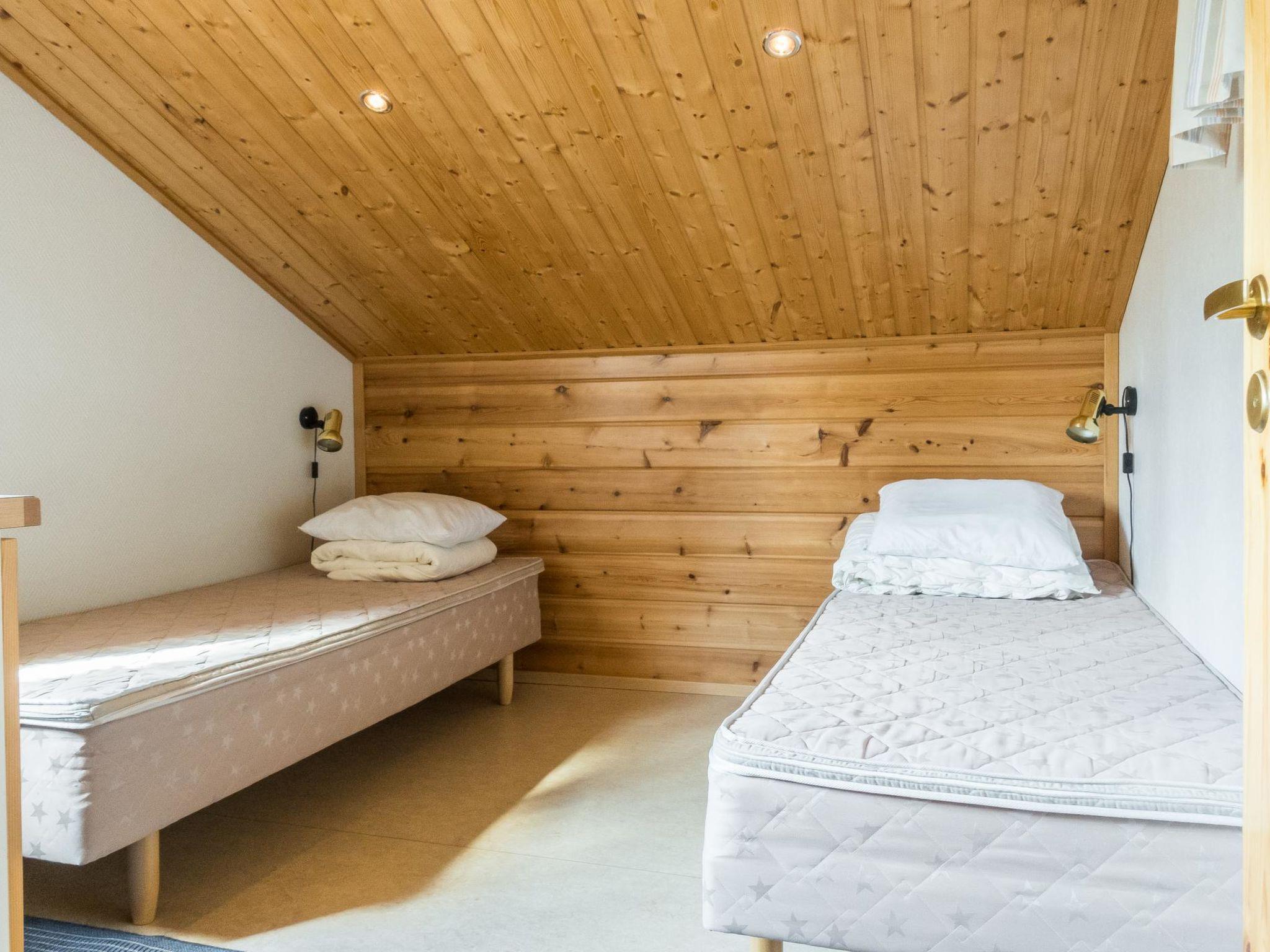 On the upper floor, 2 bedrooms, both with 2 beds, bedrooms have sloping ceilings, living area and WC.
