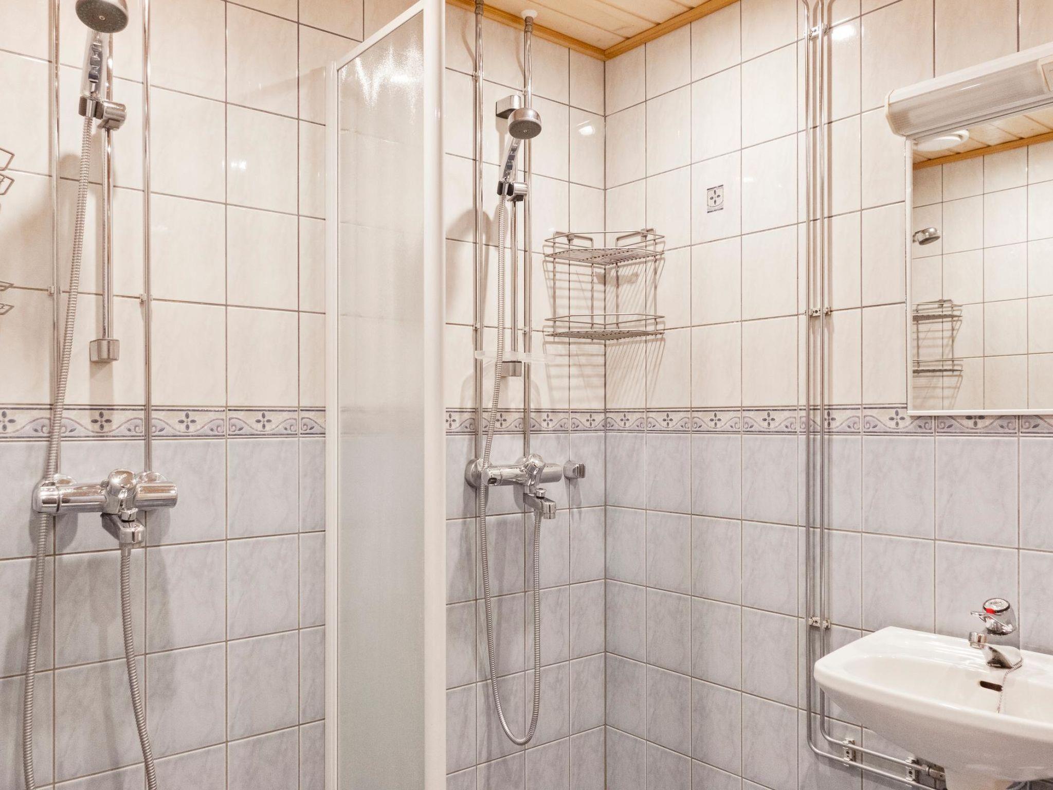 Wooden cabin. Living room, 3 bedrooms, all with 2 beds, one bedroom with folding door, kitchenette, sauna, washroom, separate WC and covered terrace.