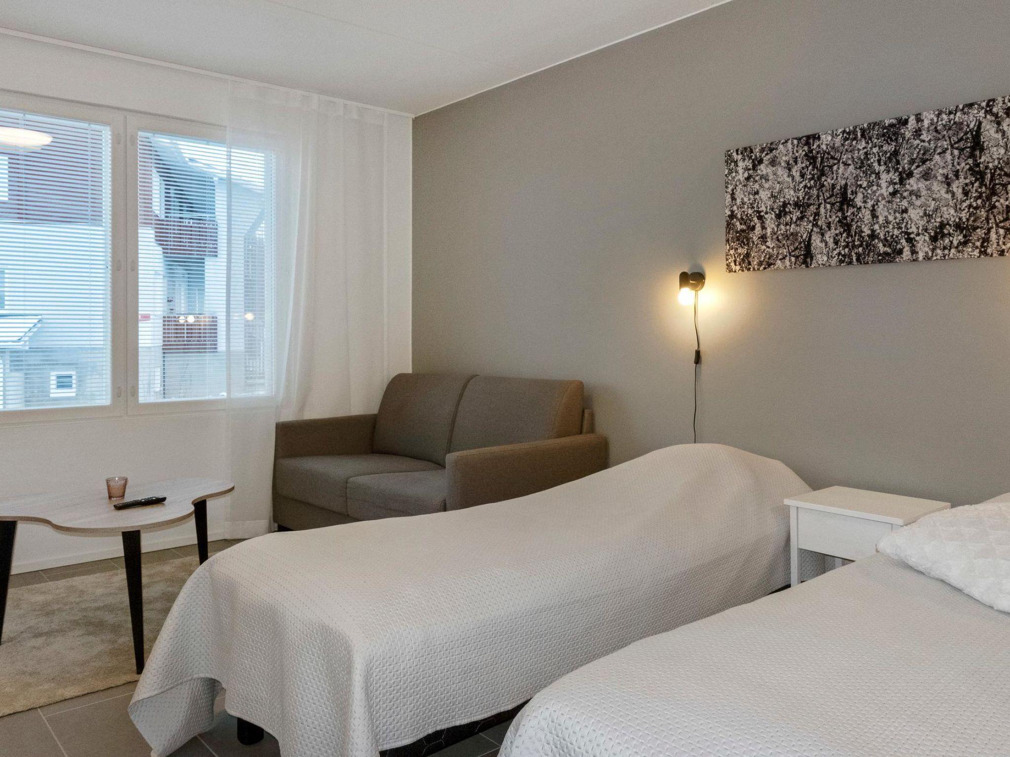 Apartment on the second floor in ? two-storey stone-built apartment hotel, built in 2020. Living room/kitchen with 2 beds and sofa bed, sauna and washroom/WC.
