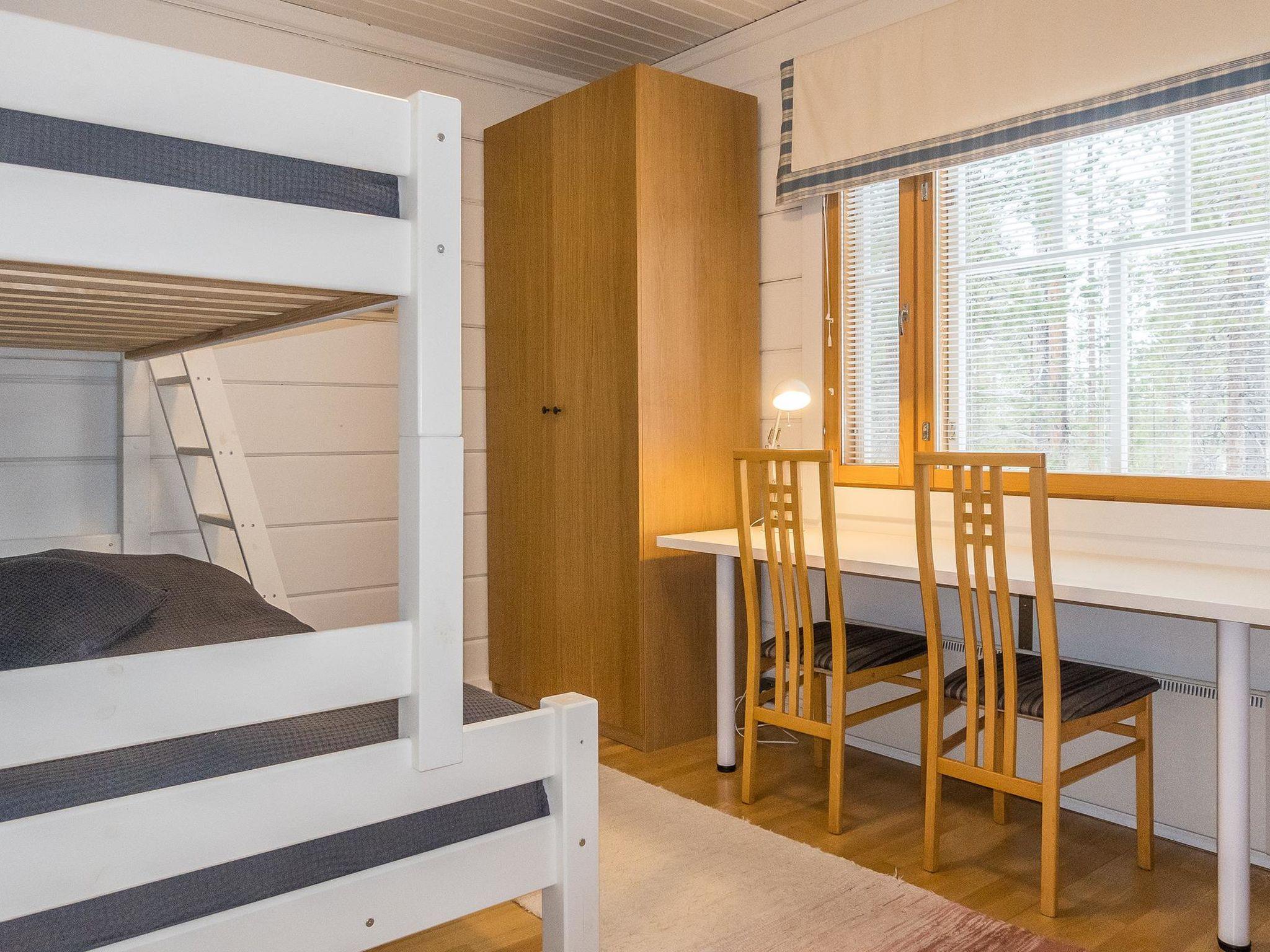 Atmospheric living room/kitchen with spreadable sofa bed (140 cm). Three bedrooms in total, one bedroom with double bed, second bedroom with two separate beds and third bedroom with bunk bed. The lower part of the bunk bed is 120 cm wide. This bedroom also has a work desk and smart TV.