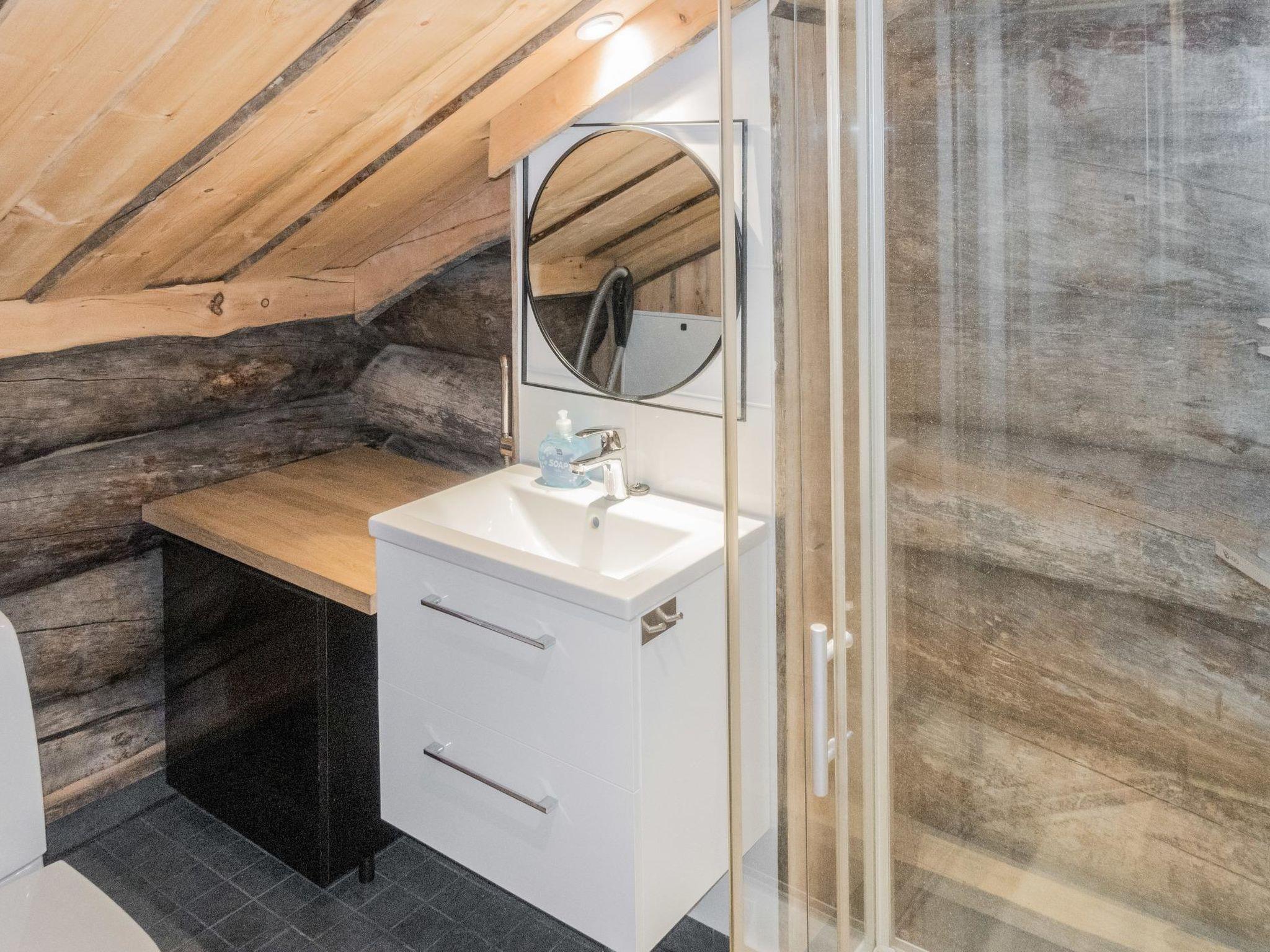 On the ground floor, there is sauna, washroom, fireplace room with sofa bed, electric fireplace and flat-screen TV. On the ground floor, there is also separate WC and drying room, where washing machine and drying cabinet for clothes.