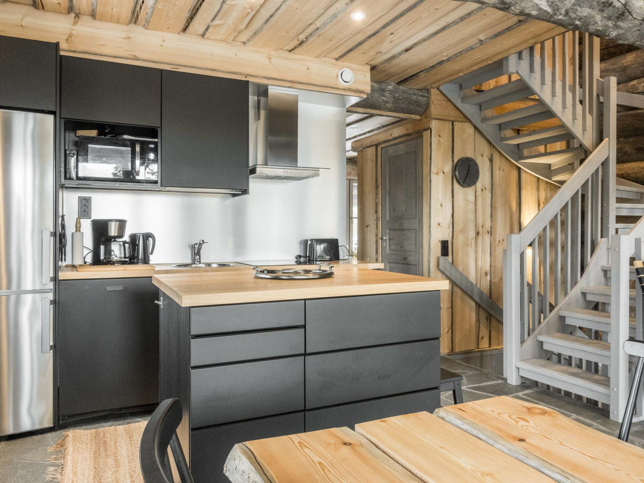 Located in the Levi tourist center in Lähirakka district. Apartment in kelo-log built semi-detached house, facilities on three floors.