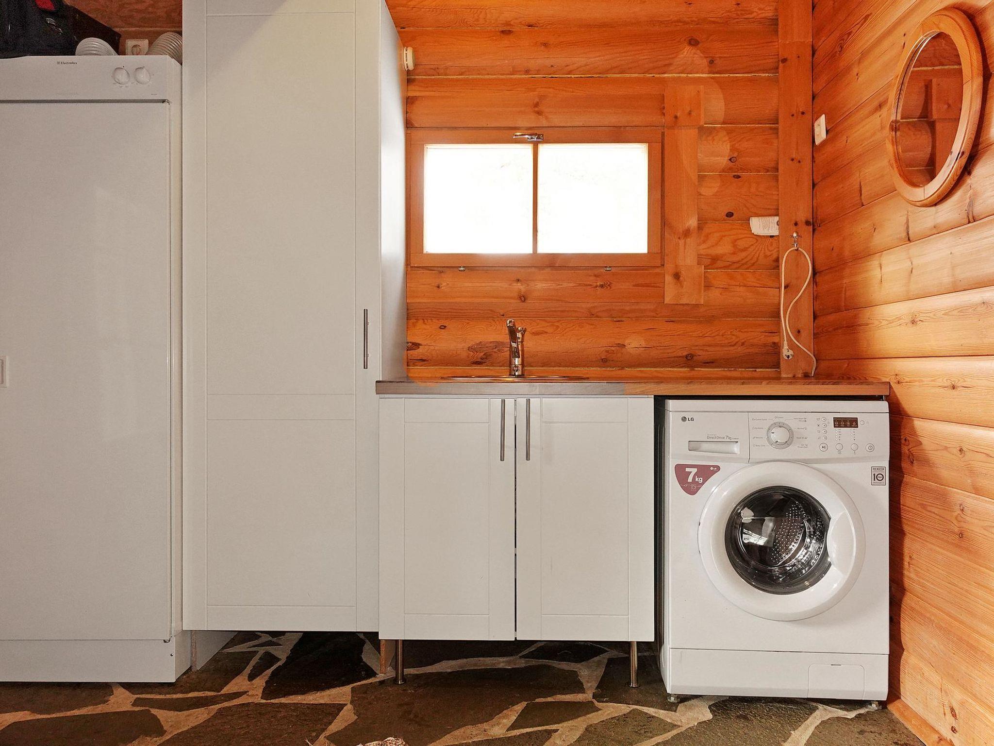 Living room with sofa bed, kitchen (no door), bedroom with double bed (width 140 cm), second bedroom with bunk bed (width 140 cm). The sauna and washroom have been renovated in the summer of 2023 (shower and hydro massage bath), separate toilet, small covered terrace and storage.