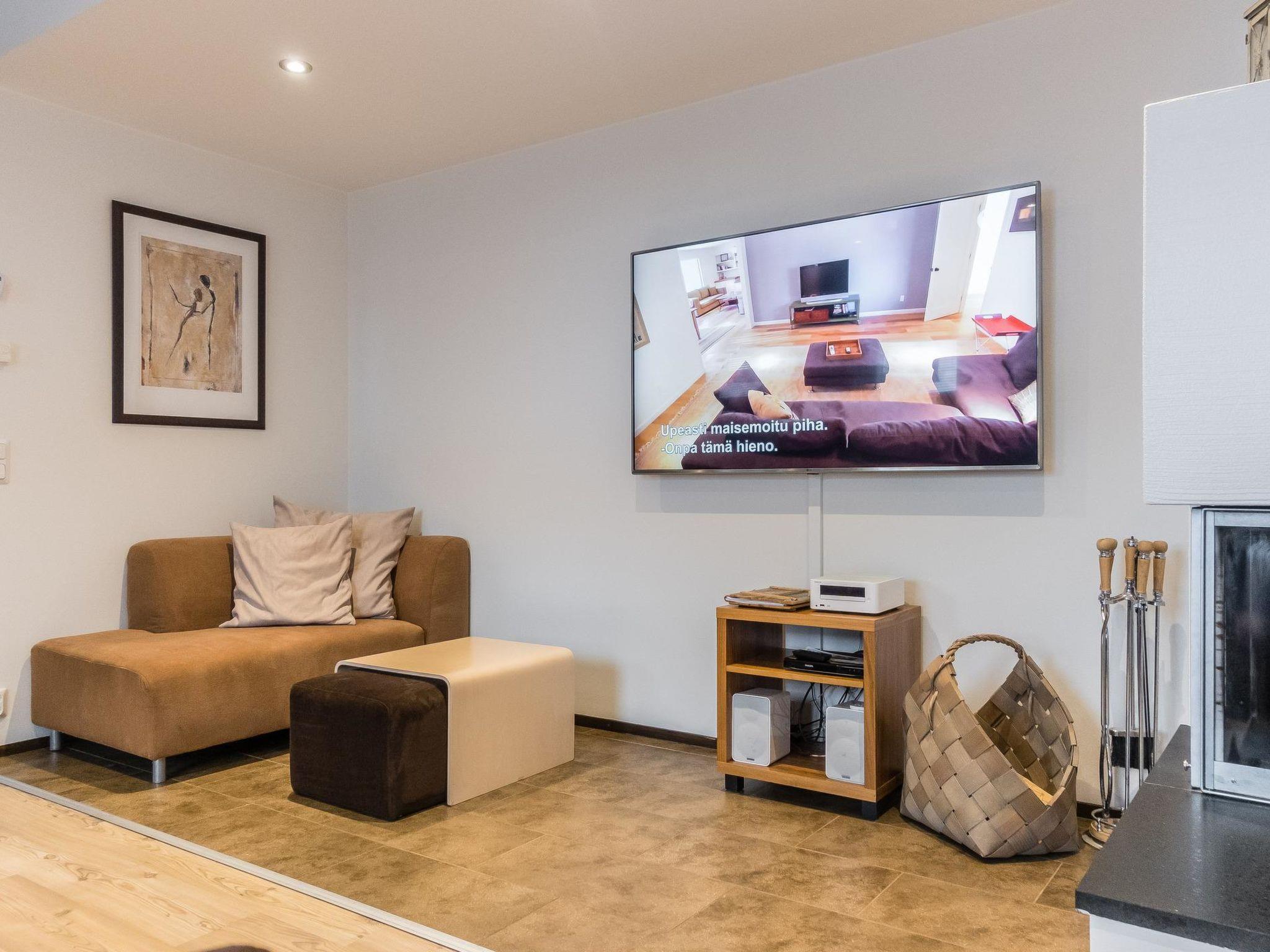 Comfortable and spacious apartment in the heart of Levi. Slopes, trails and other services nearby. Apartment on the second floor in Alpine-style stone house, facilities on two floors. Visual contact to the slopes.