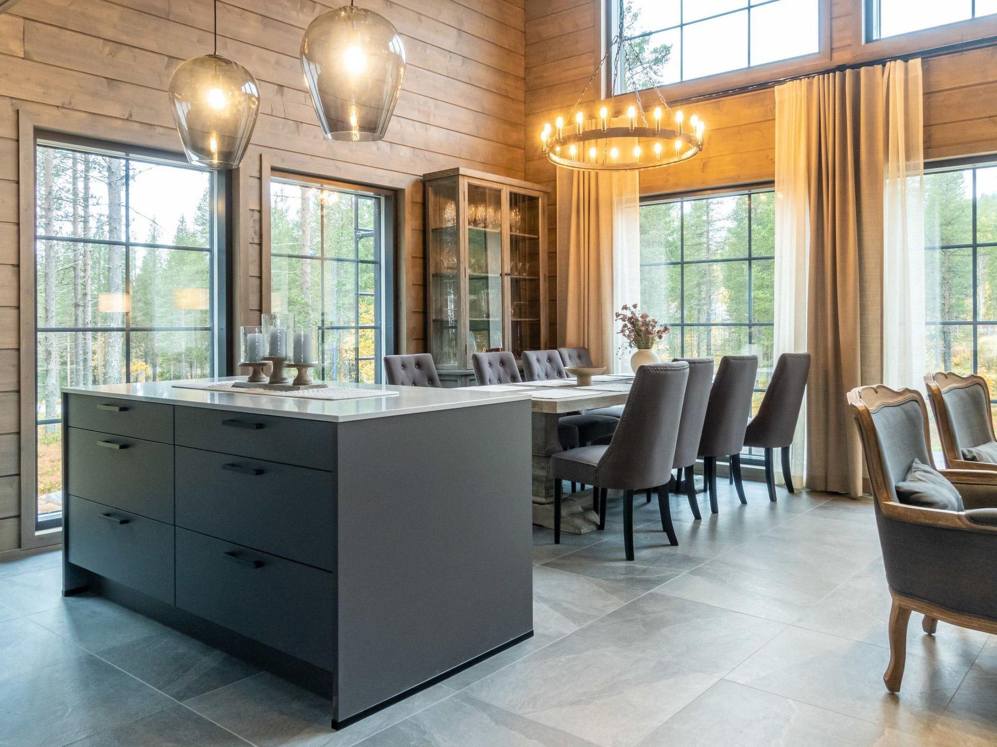 You can enjoy of Levi's fell view from the dining area, as well as from the living room thanks to large windows. From the windows, you can see the gondola and West Point ski lifts and Santa's cabin while you are enjoying of your morning coffee, for example. The bus stop is right near the cabin and the Levi Skibus operates every half hour between the ski slopes and the center of Levi.
