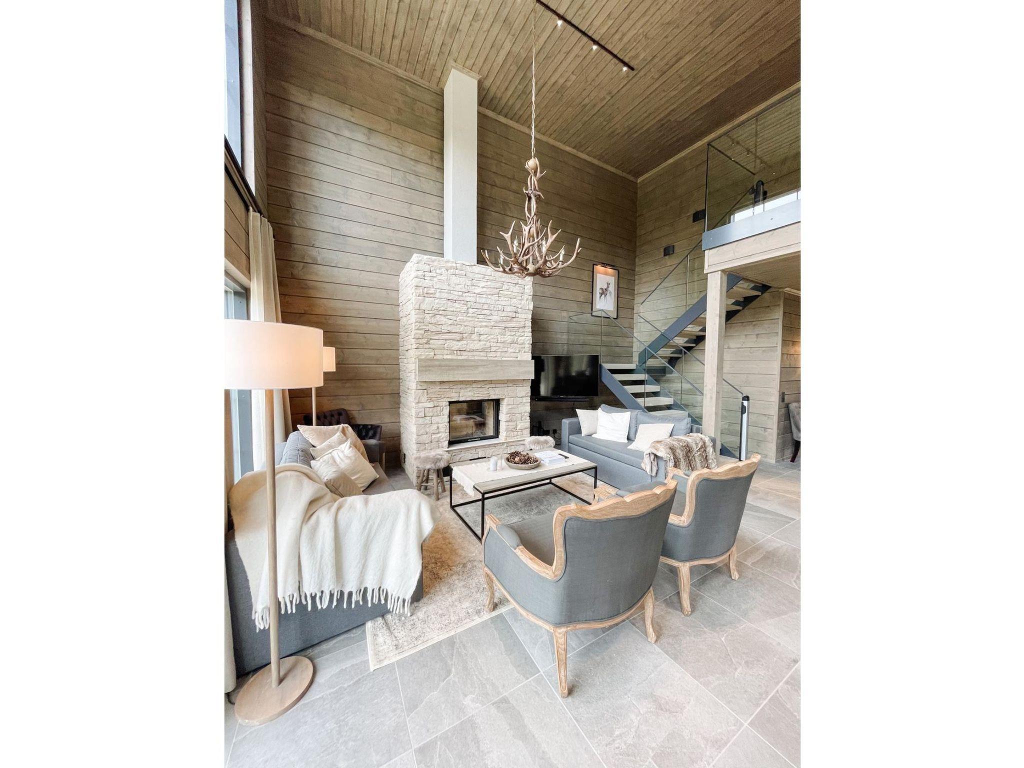 Facilities on two floors. On the first floor, spacious hall with plenty of space for cross-country skiing and downhill skiing equipment. Living room, dining room and kitchen are the heart of this villa. The kitchen is very well equipped, so you can cook and even bake for a larger group.