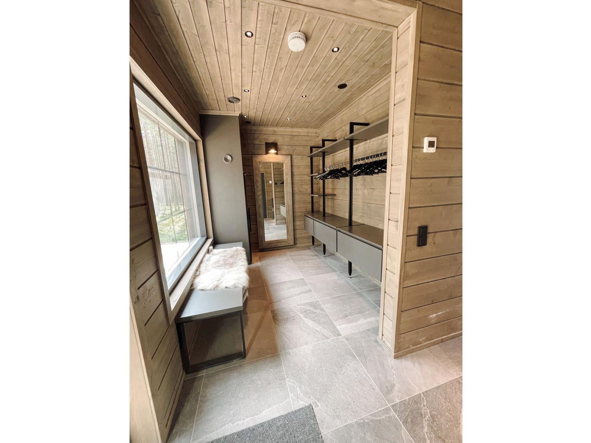 Washroom and sauna are also on the ground floor, entrance from the hall. In addition to WC, the washroom has a sauna and two showers. The washroom also has a washing machine and tumble dryer.