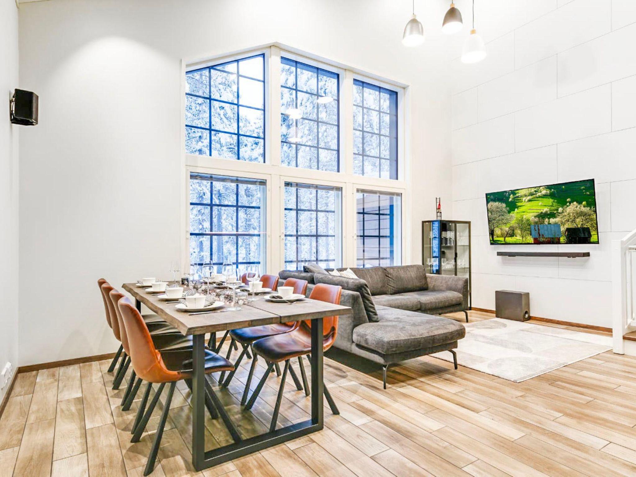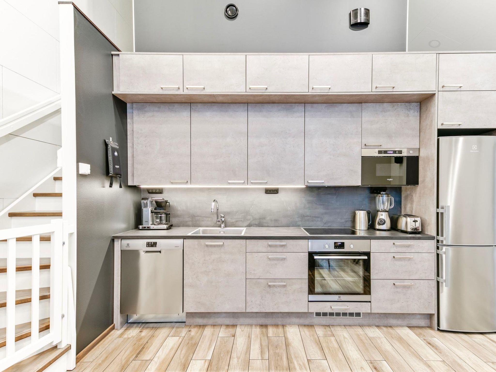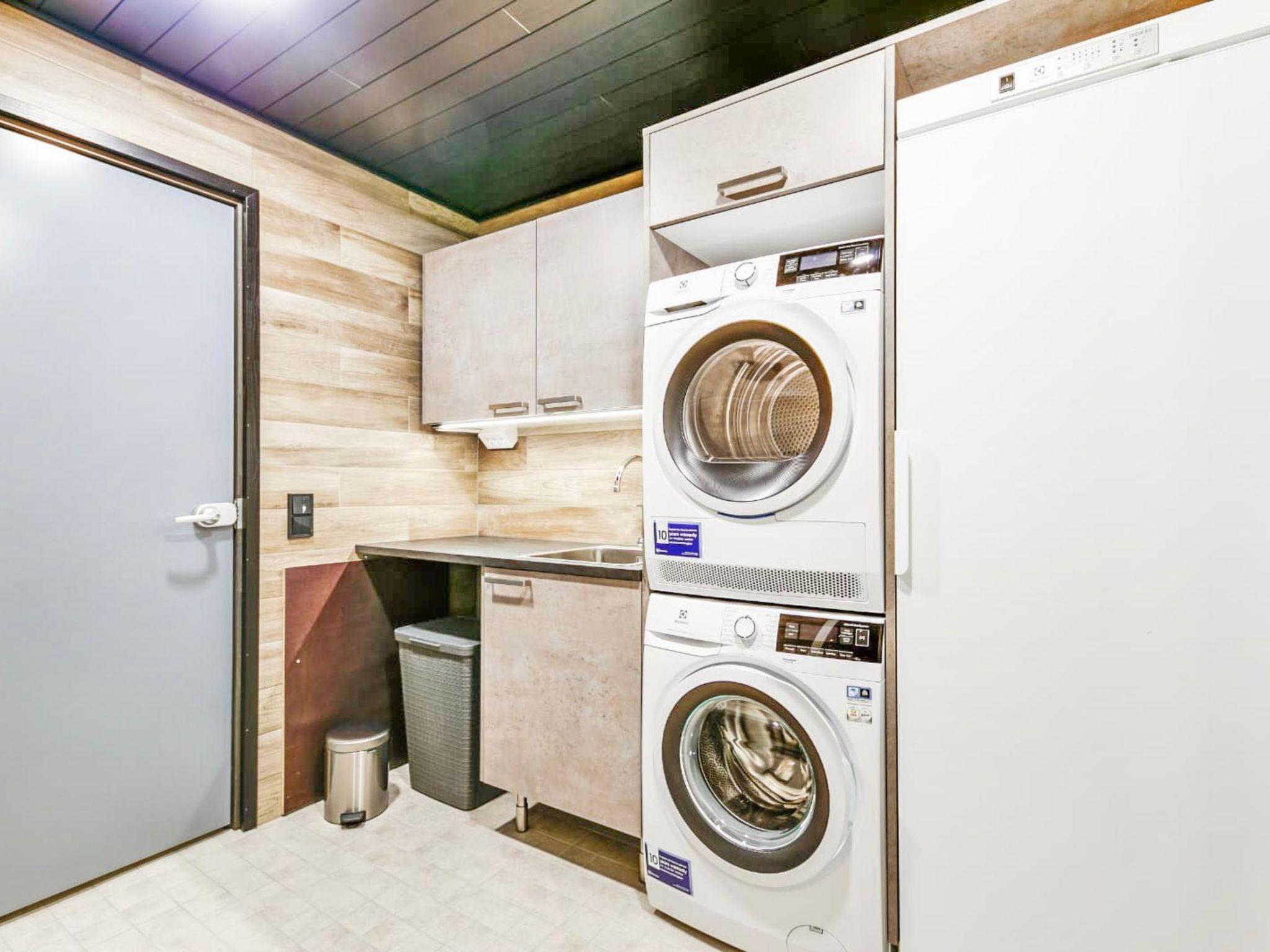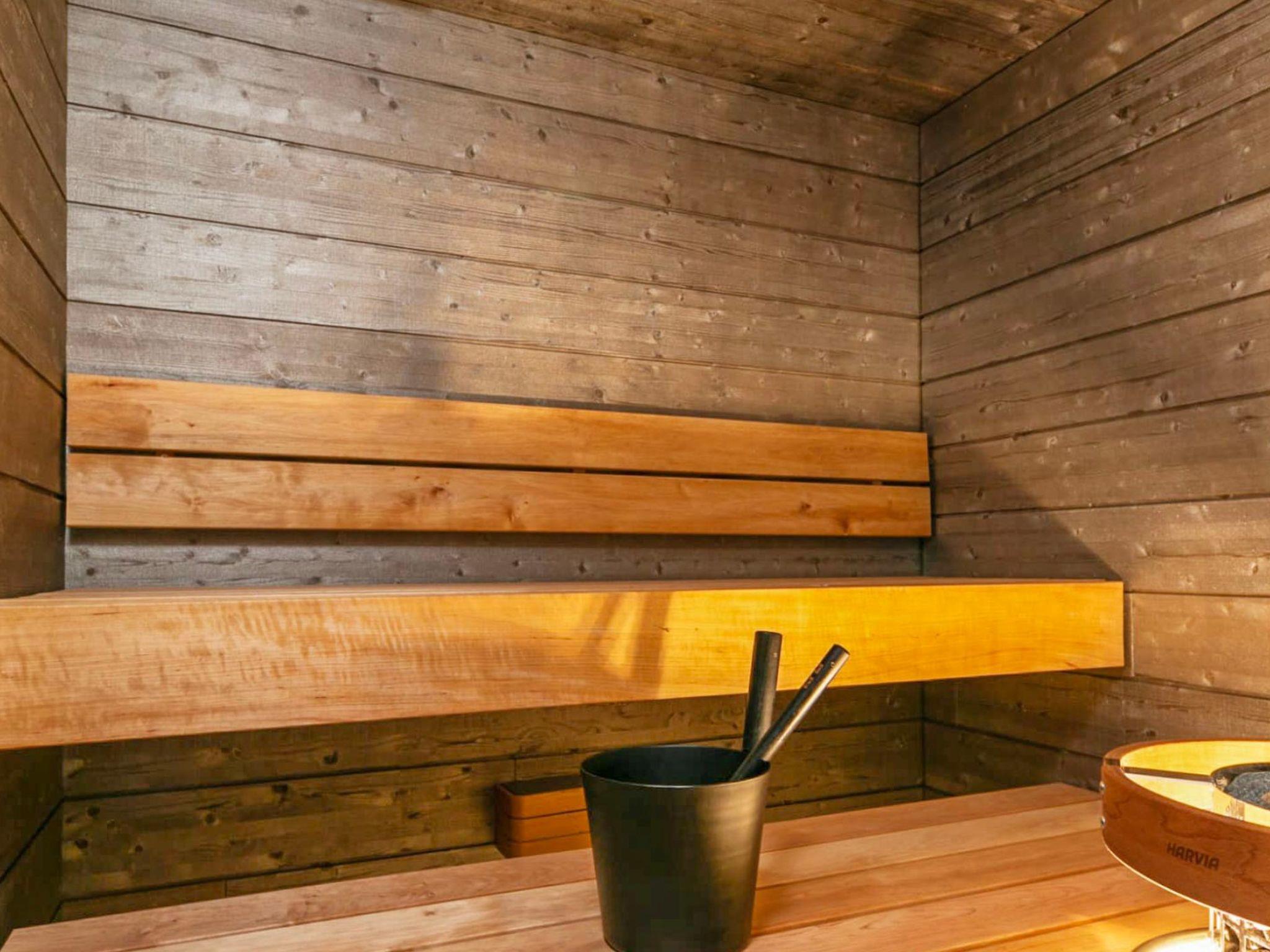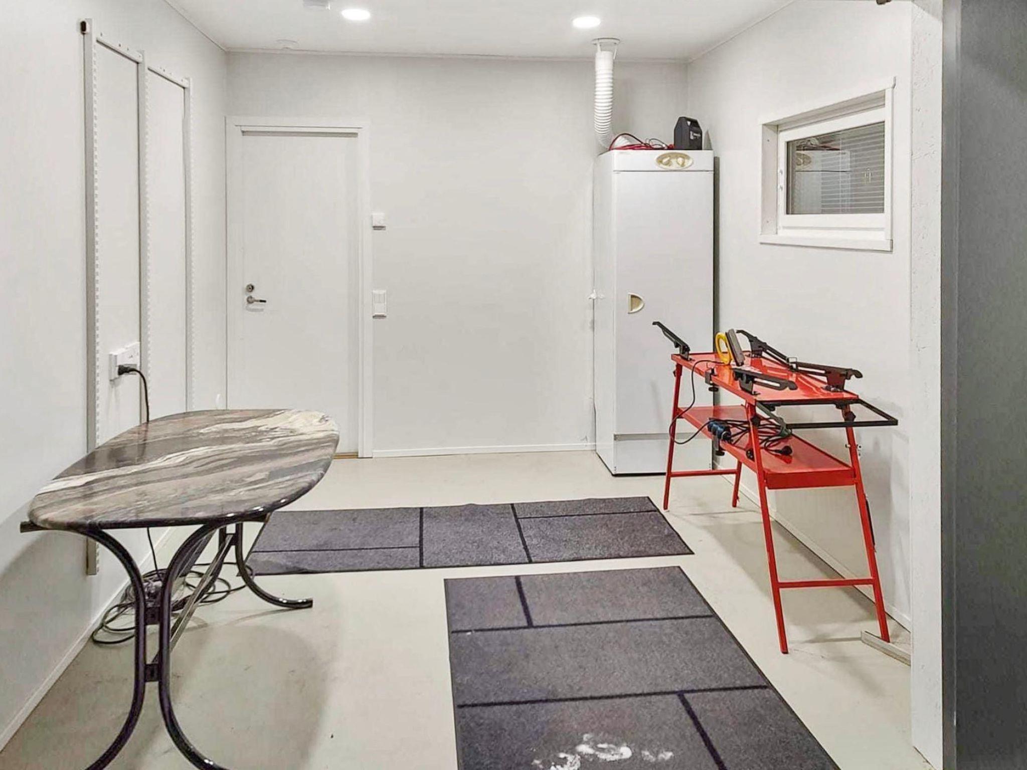 The living room/kitchen provides plenty of space for spending time together. The utility room is equipped with a washing machine, dryer, and sink. The sauna and comfortable bathroom offer a perfect setting for relaxing sauna moments.