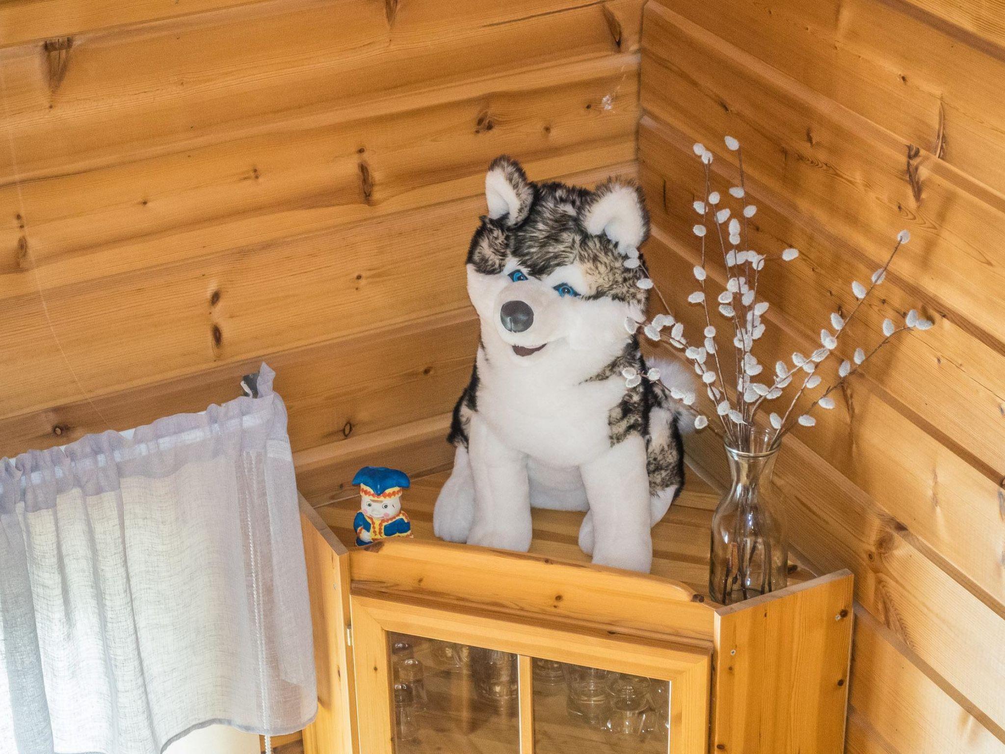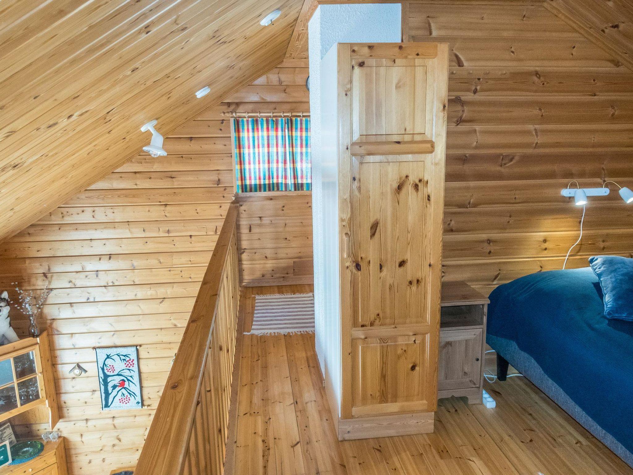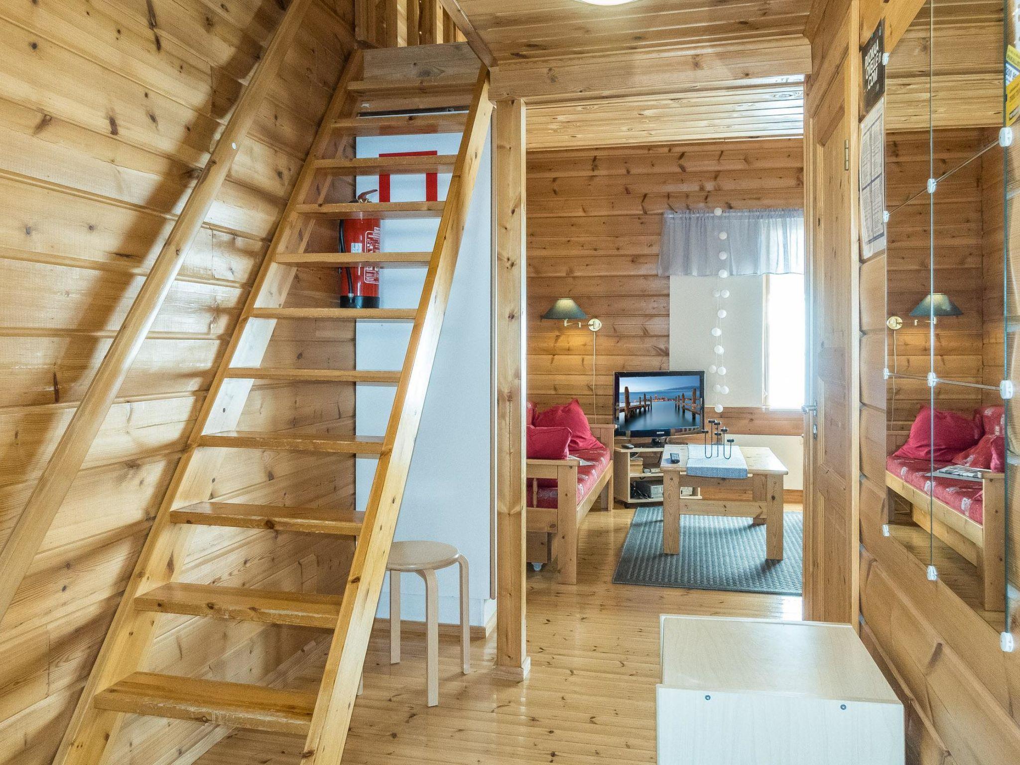 The apartment has living room with sofa bed, kitchenette, sauna, washroom and separate WC. The loft has a wall that divides it into two compartments. There are three beds in the first compartment and two beds in the another. The loft has a sloping ceiling.