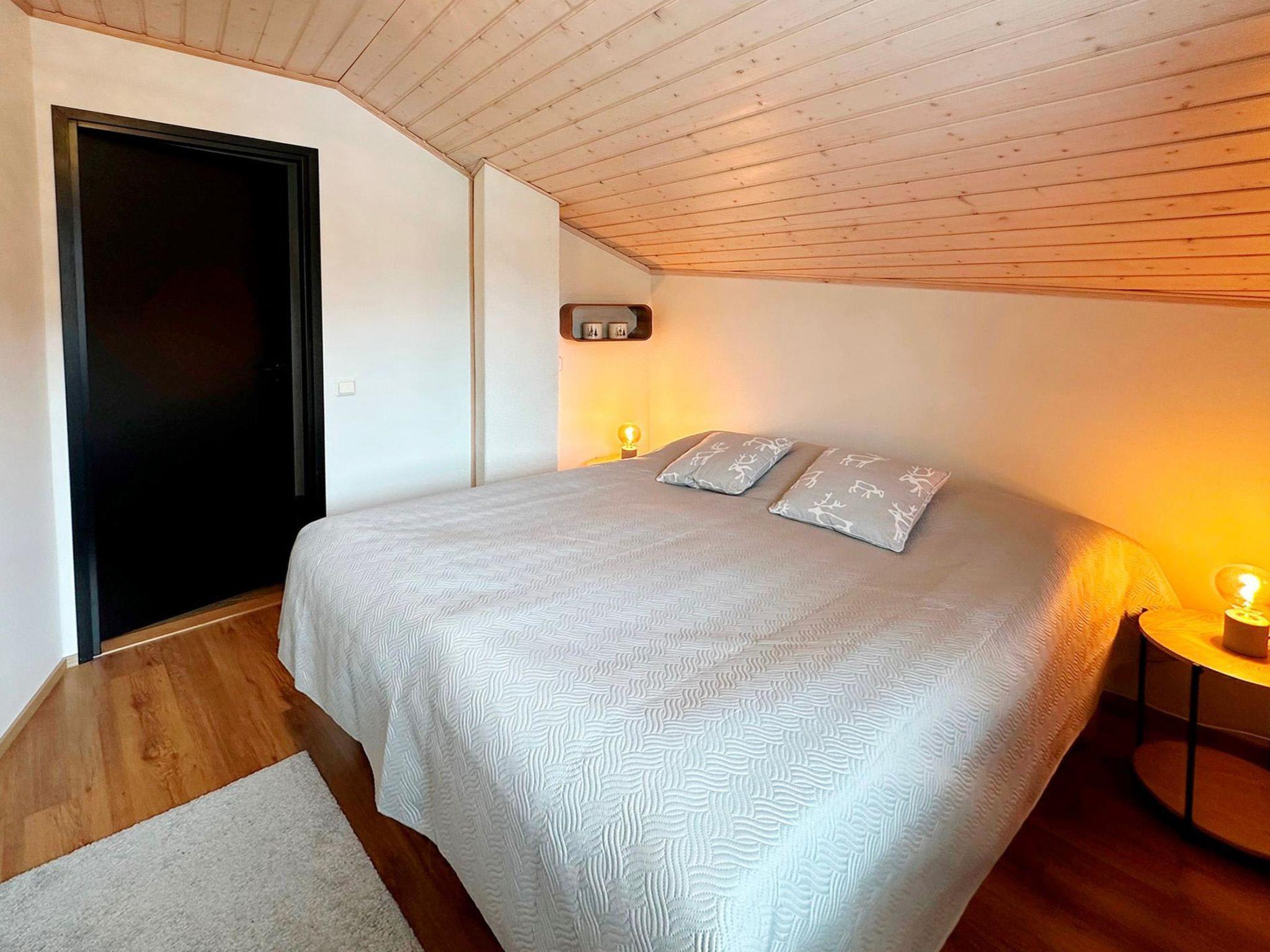 On the upper floor, there are three bedrooms. In two bedrooms are 2 beds and in one bedroom are 3 separate beds. One of the bedrooms has access to its own balcony. On the upper floor, there is also WC and shower, which make your morning routines much easier.
