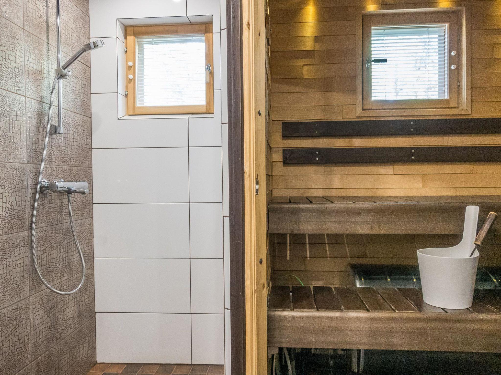The apartment is located in a peaceful area in the Levi ski resort. Ski trails and a fitness track are nearby. The nearest ski slope, Koillisrinne, is also just a kilometer away.