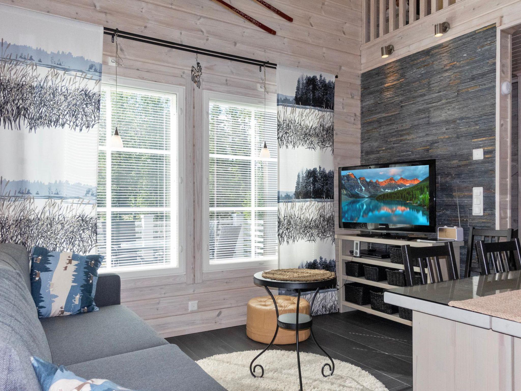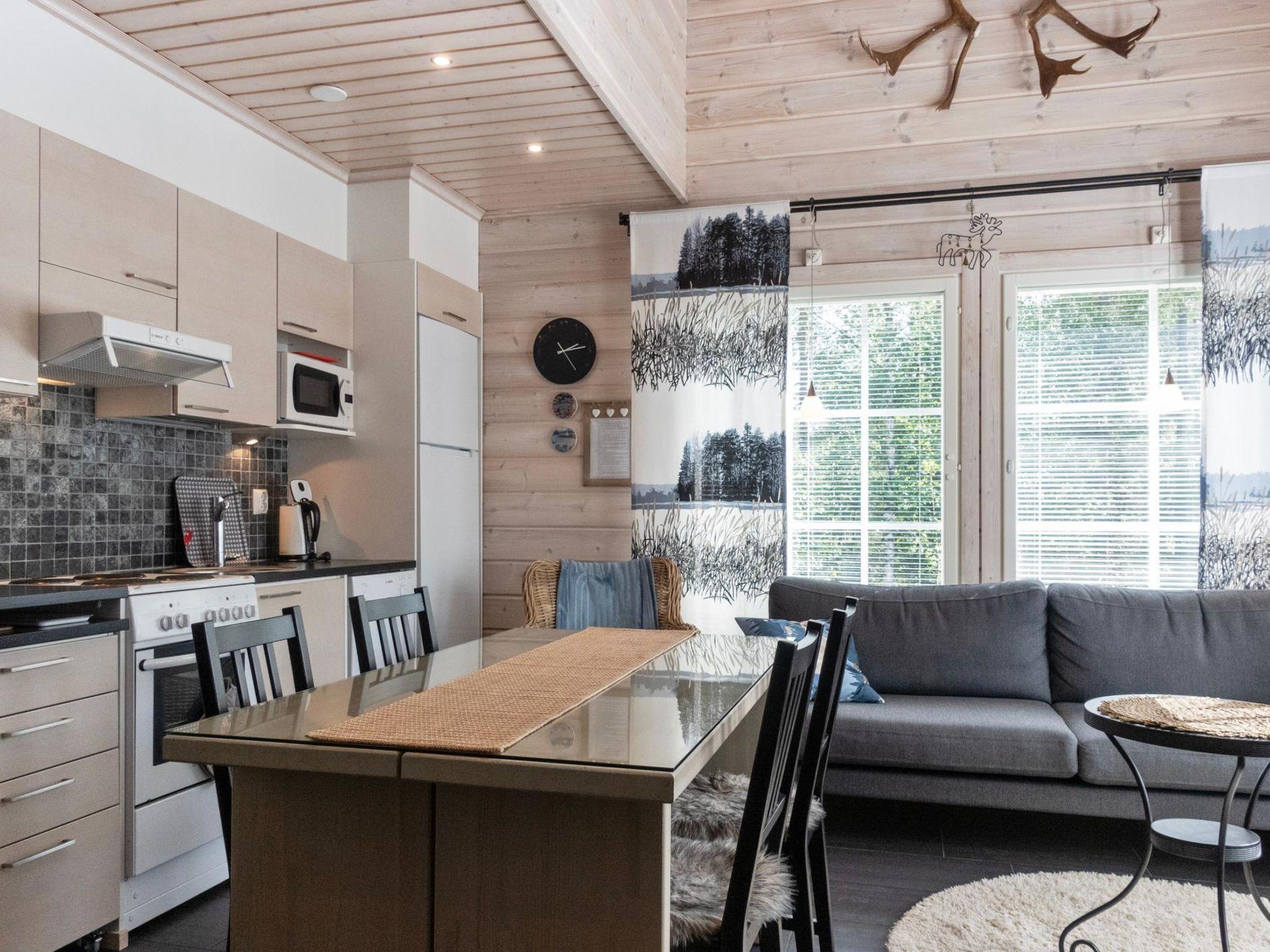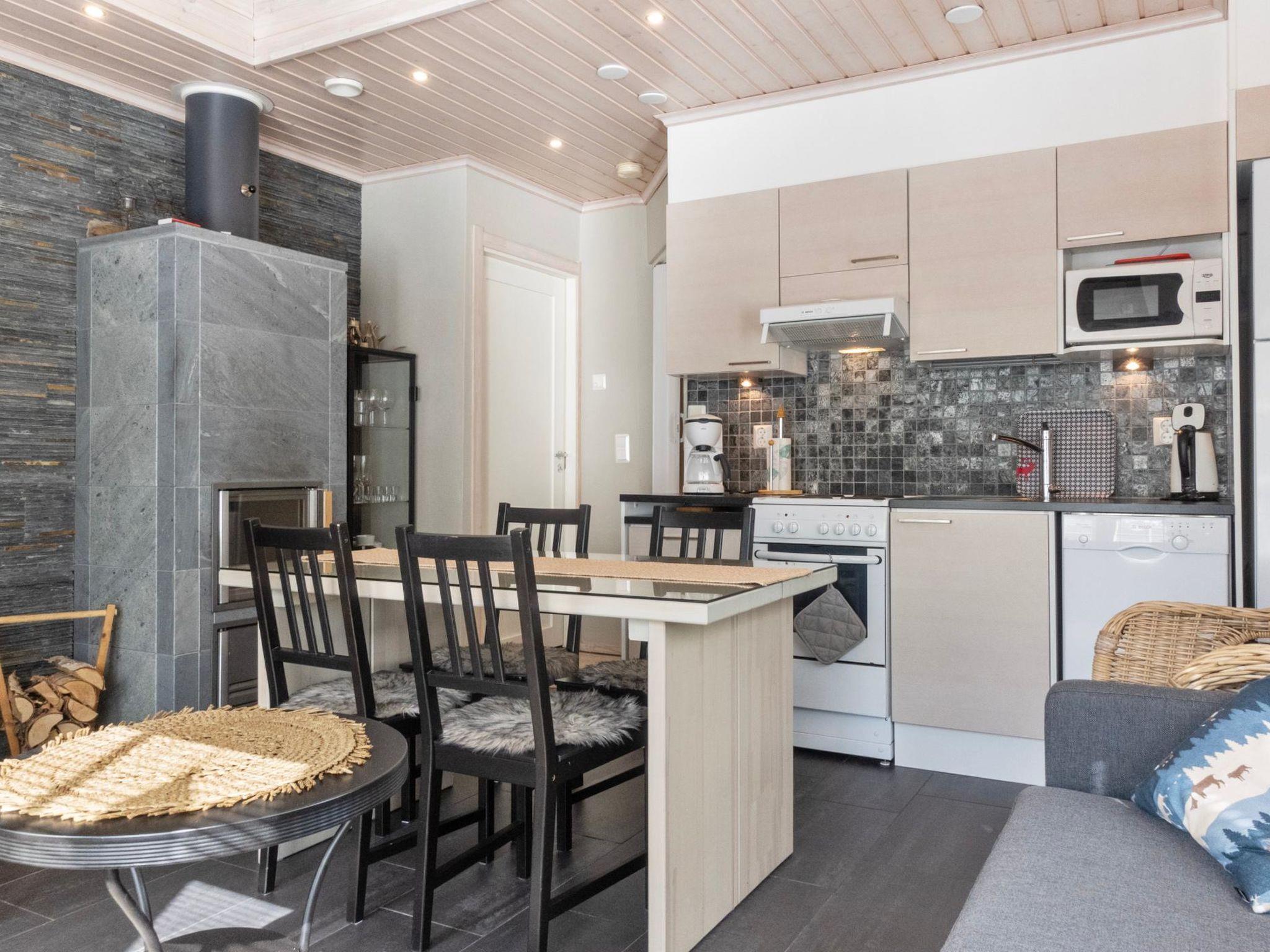 The apartment is located in a peaceful area in the Levi ski resort. Ski trails and a fitness track are nearby. The nearest ski slope, Koillisrinne, is also just a kilometer away.