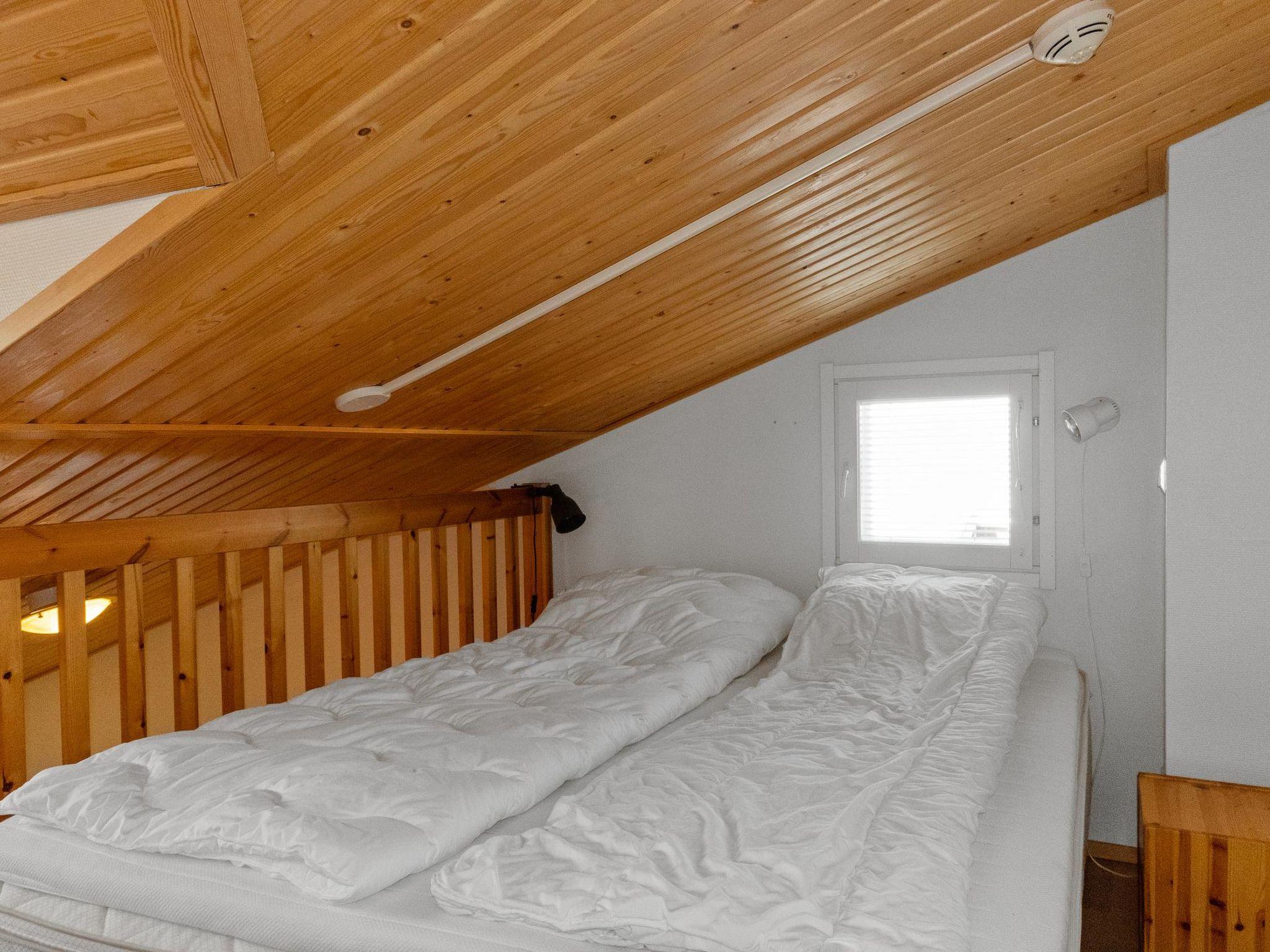The entrance of the apartment opens into living room/kitchen area with a sofa bed. The sleeping loft is on the upper floor, providing accommodation for three people. Please note, that the loft has a sloping ceiling, and the height is limited (you can stand normally next to the bed). The stairs leading to the loft are steep.