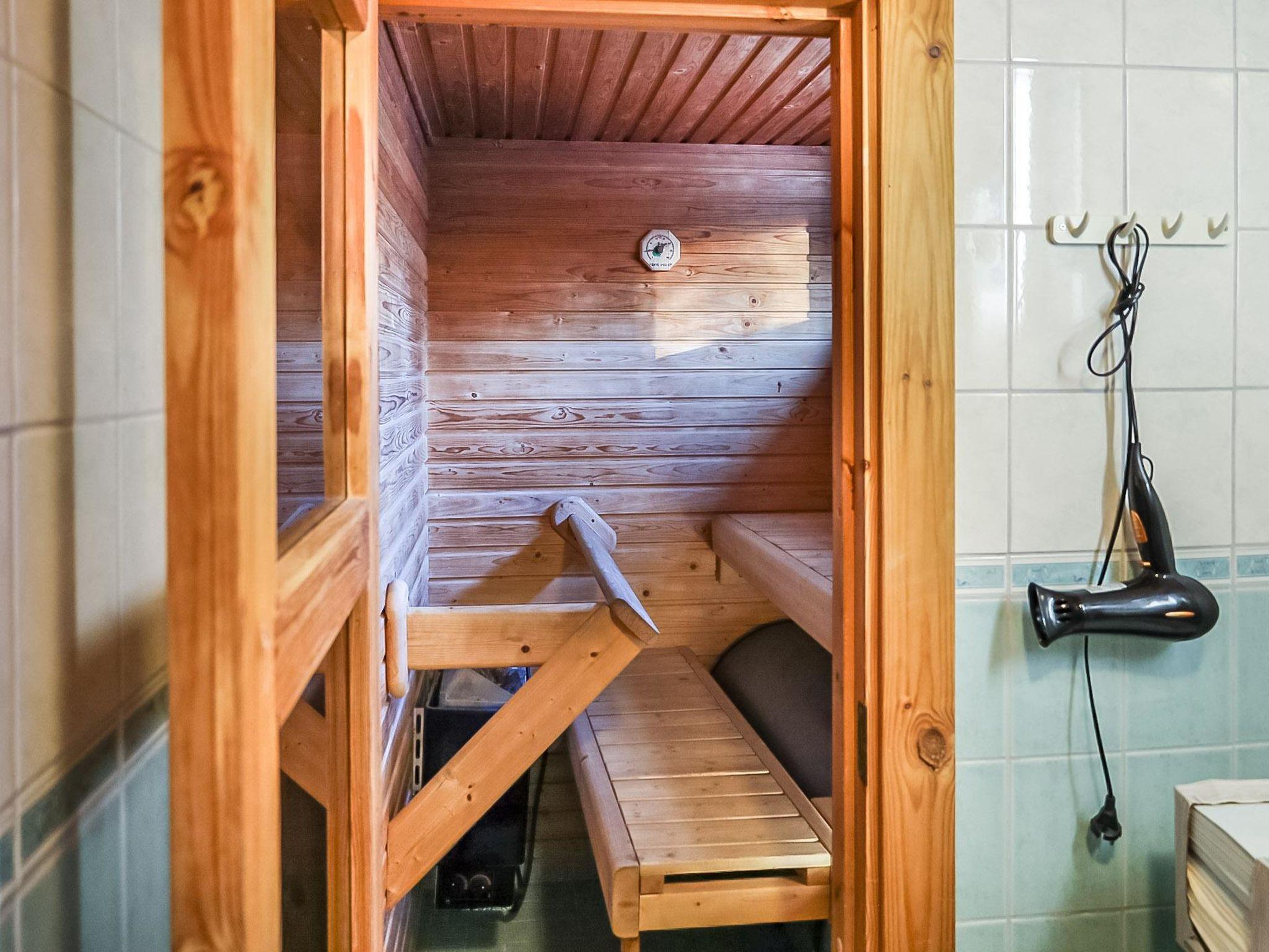 The apartment's open kitchen has a sofa bed. There are three mattresses in the loft. Please note that the loft is small, and the stairs leading to it are very steep. The apartment also has its own sauna and bathroom, as well as a small terrace.