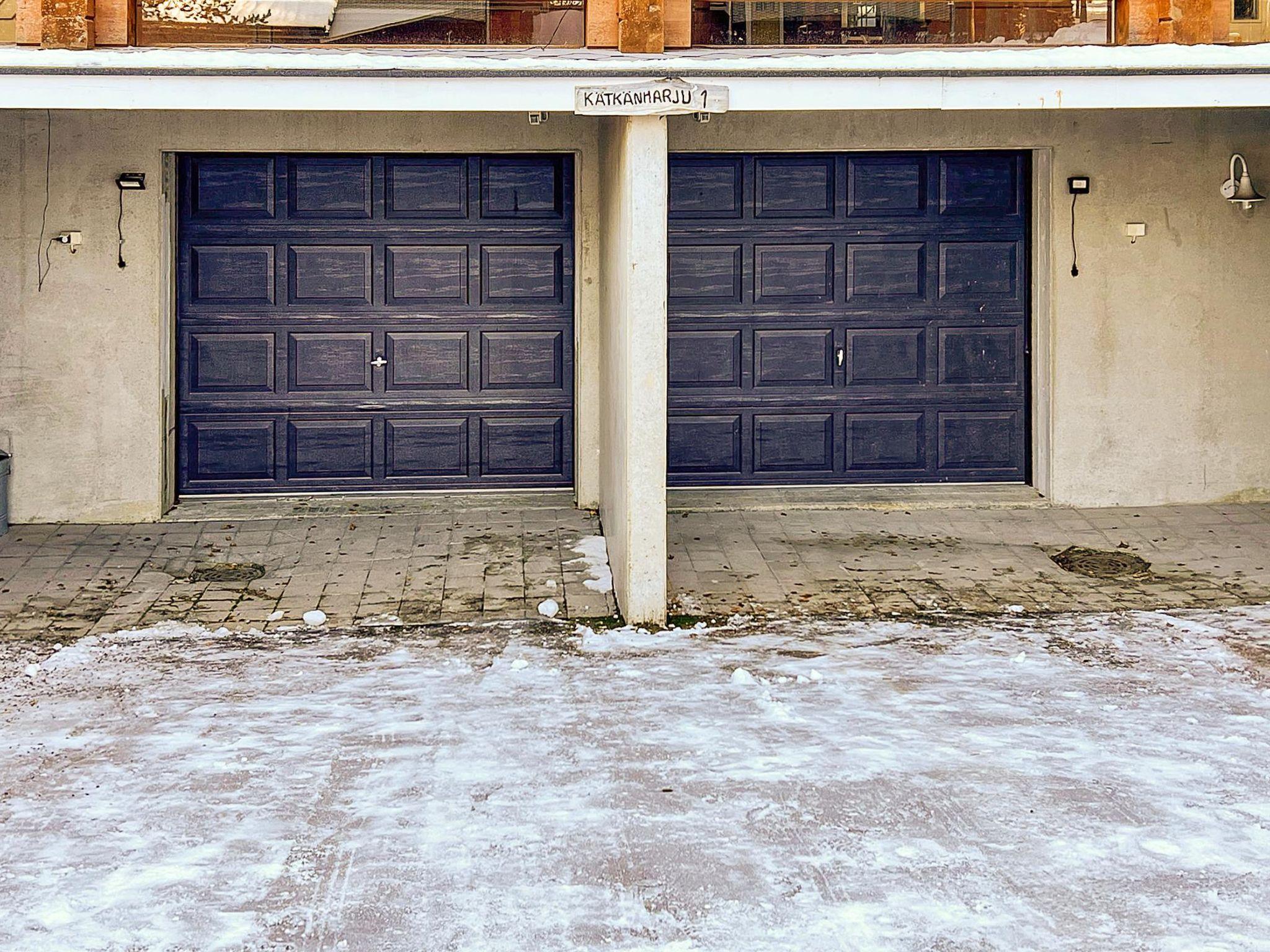 Furthermore, the basement has a garage (18 m²), offering a secure place for a car and recreational equipment. The height of the garage door is 210 cm. Please, notice that garage ramp might be snowy and slippery in winter and therefore it might not be possible to drive there in winter.