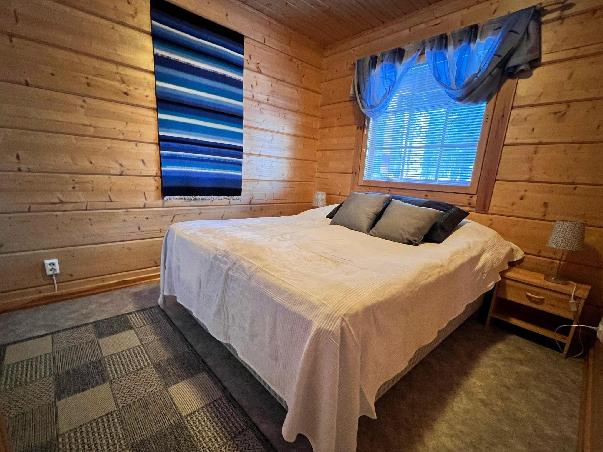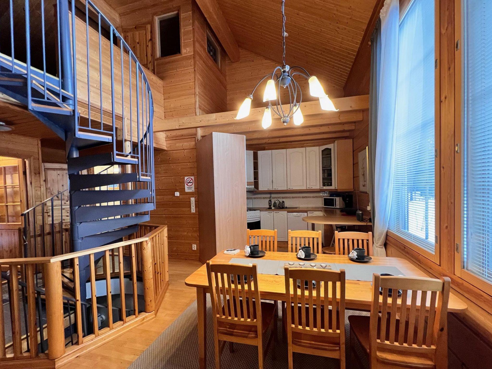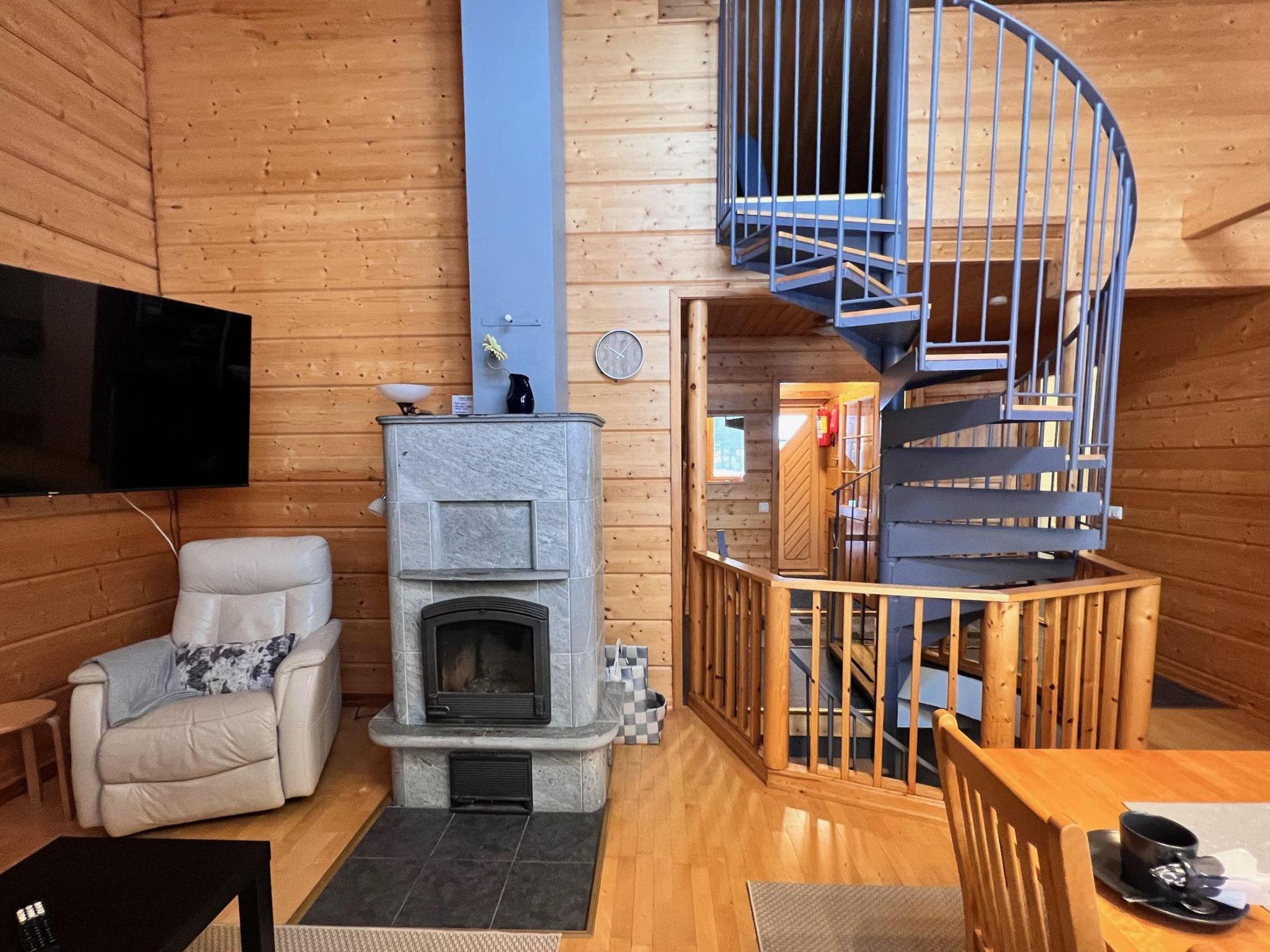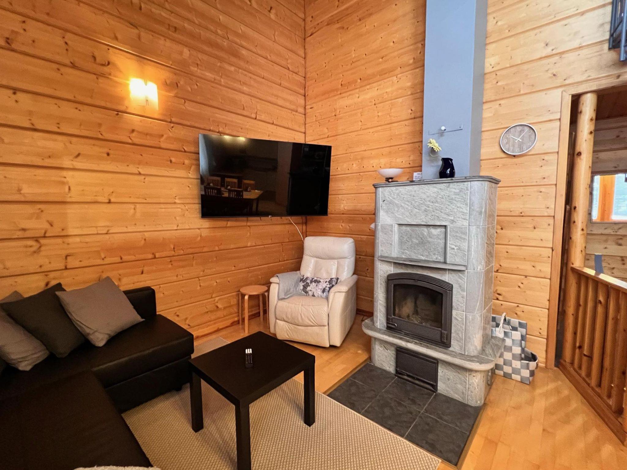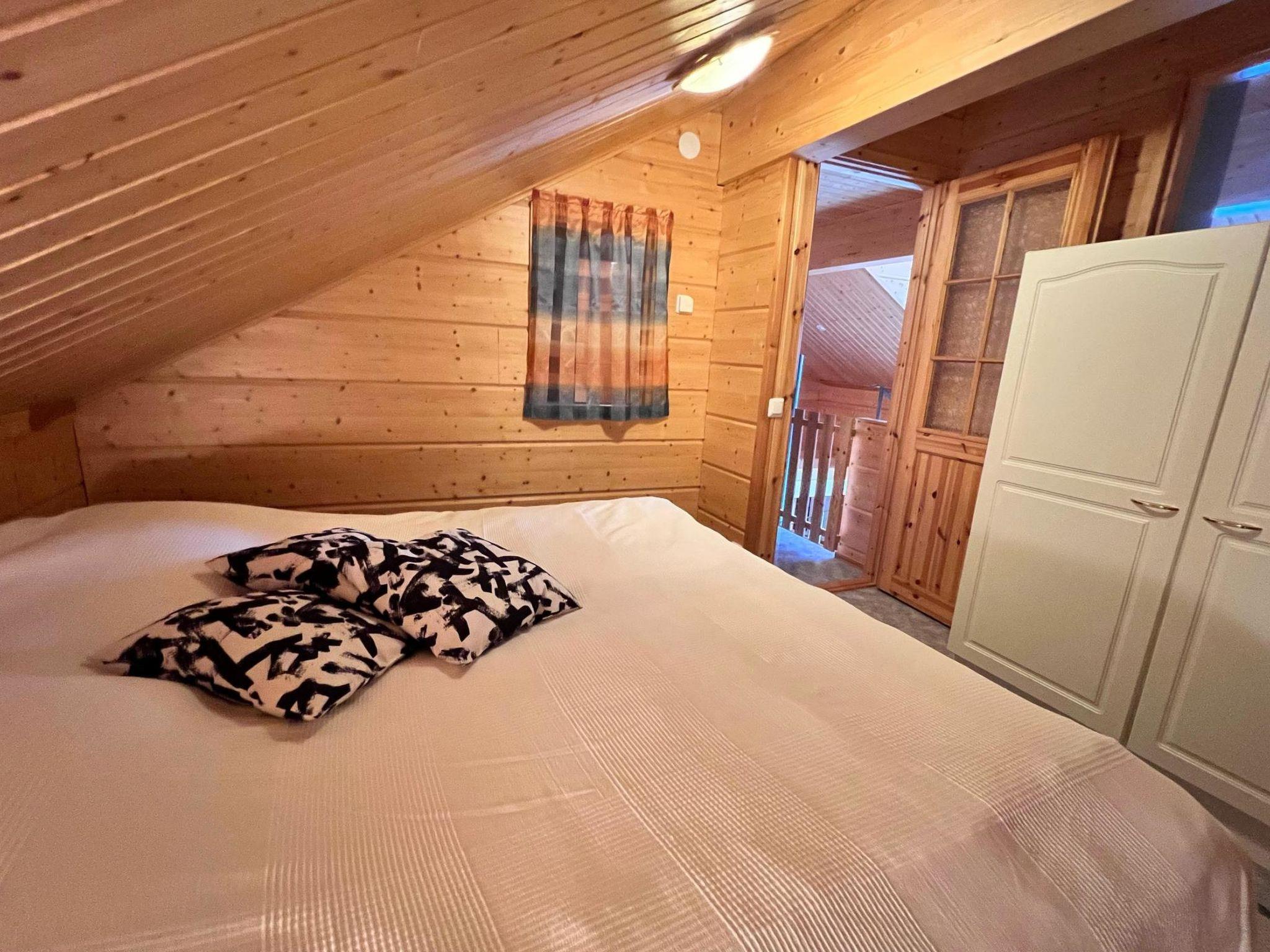 On the entrance floor, you'll find an open kitchen that is well-equipped for preparing your own meals. The living area has a spreadable sofa bed. This floor also features one bedroom with a double bed. Sauna compartments are also located on this floor, allowing you to relax and warm up after a day of activities. The washroom and WC are conveniently on the same floor.