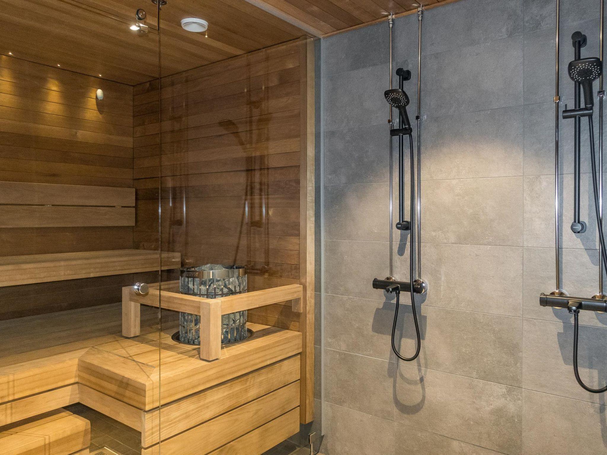 For relaxation and indulgence, there's a sauna and a spacious bathroom where you can unwind after a day of activities. Additionally, the apartment boasts its own balcony with stunning views.