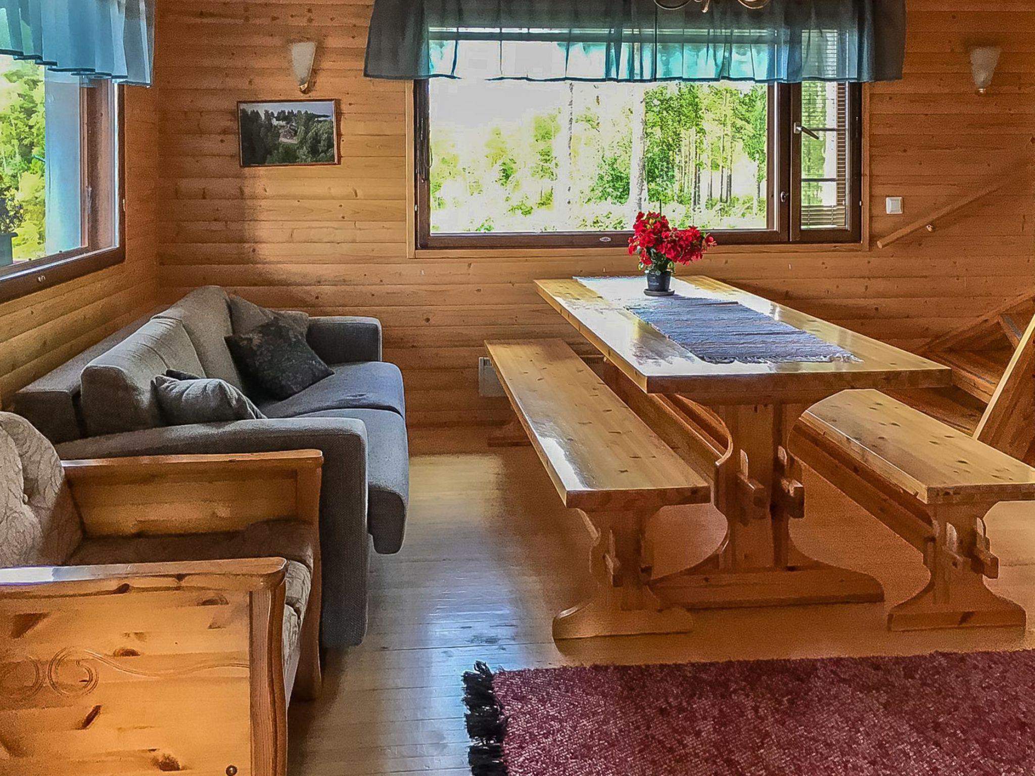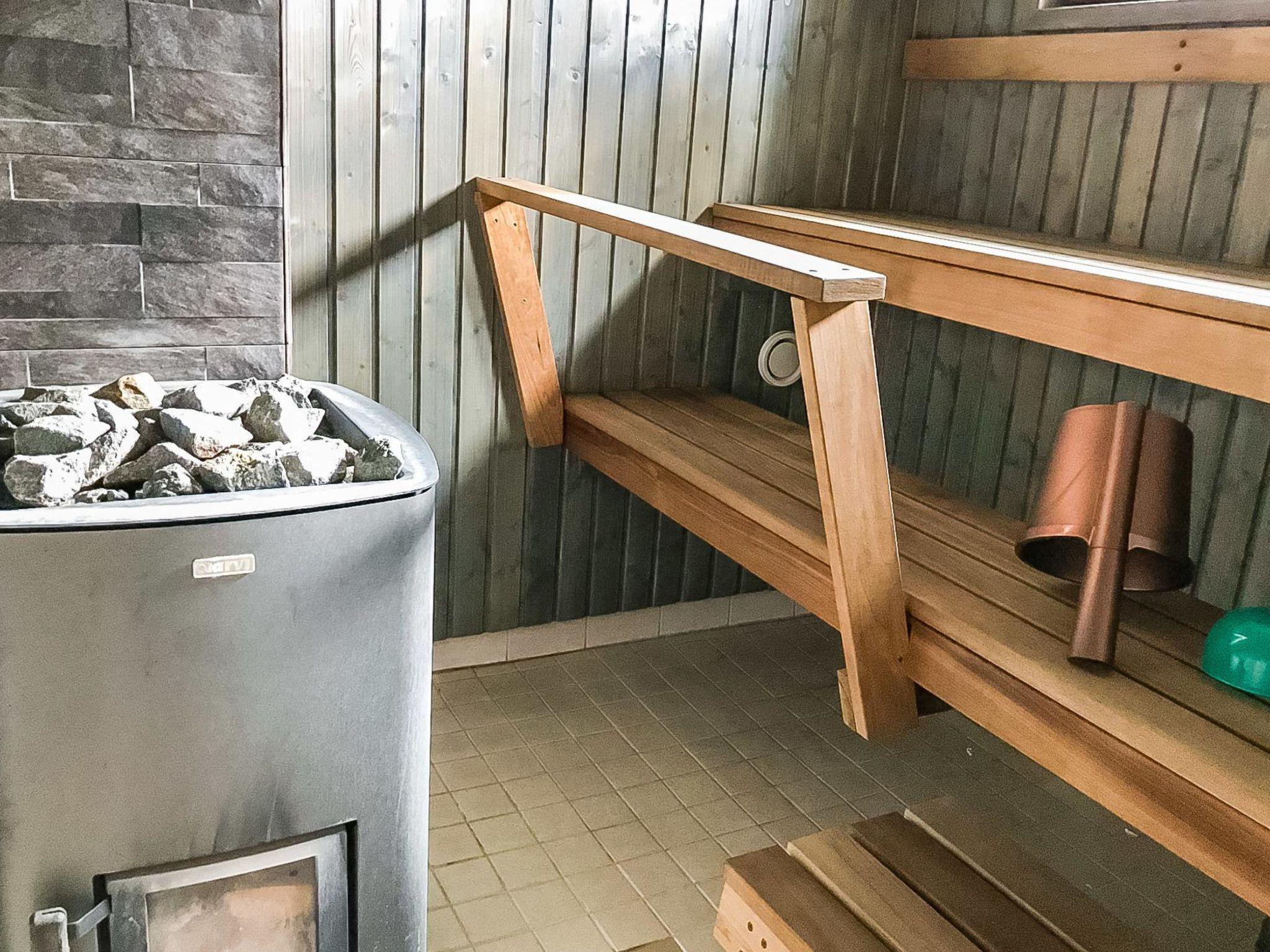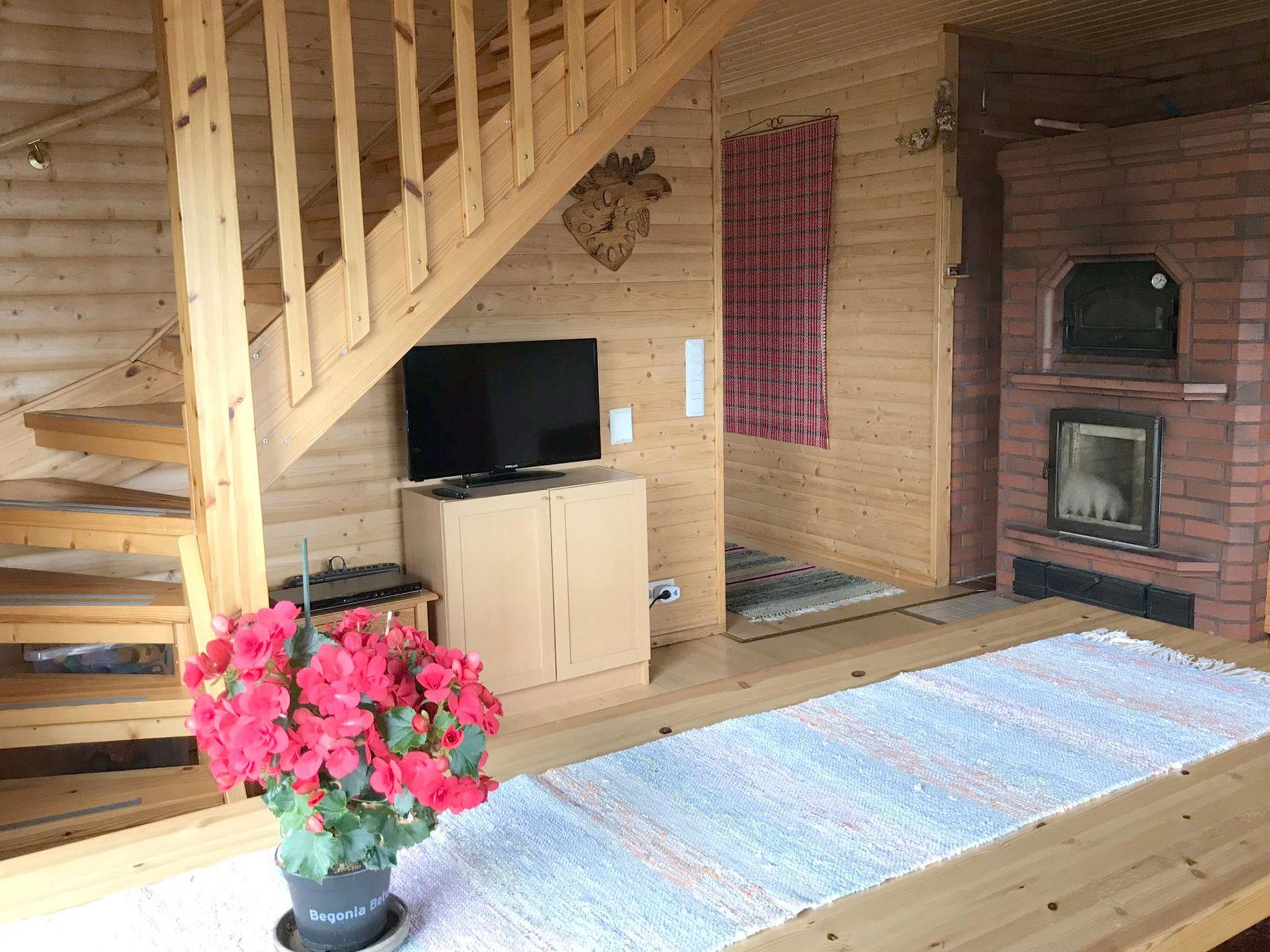 Upstairs: lounge with sofa bed for two and sofabed for one, two bedrooms with two beds in each, toilet, closet, spacious balcony. Smoke sauna building (40 m²) with room with fireplace and electric light.
