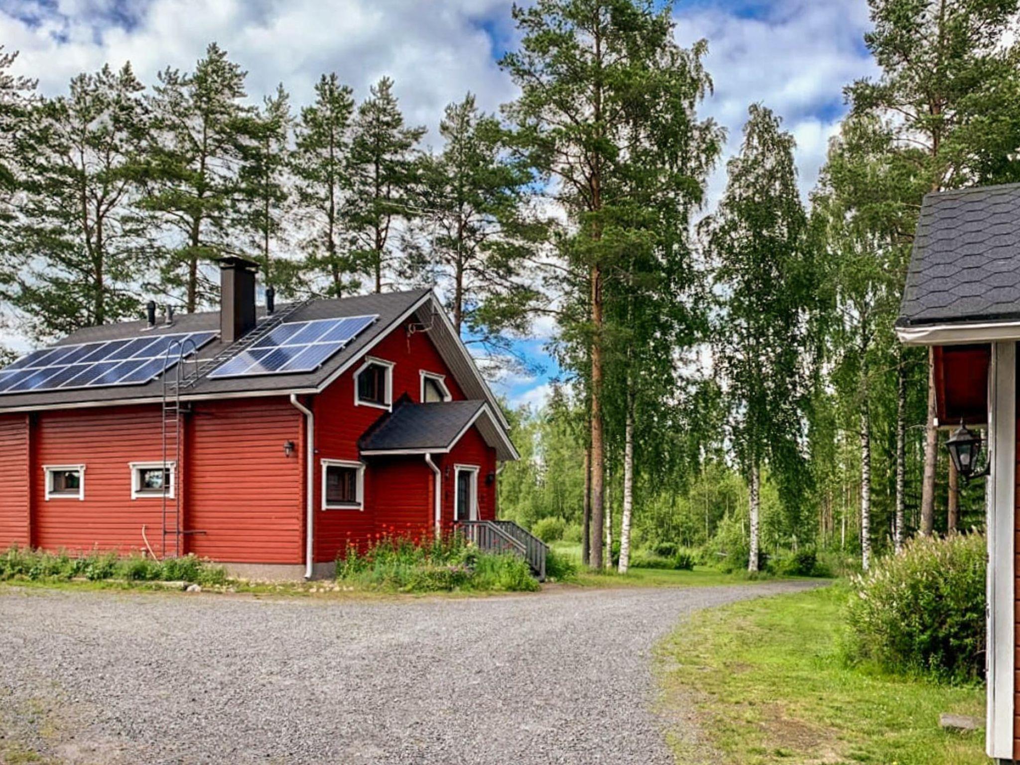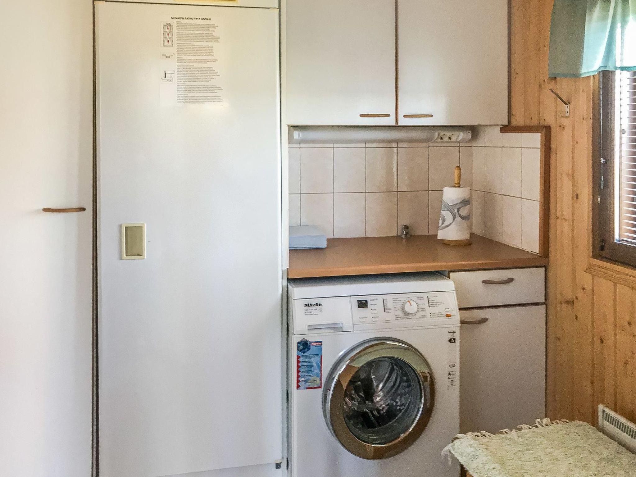 Wooden villa 2001, downstairs living room with sofa bed for two, kitchen, hallway, vestibule, bedroom with double bed, wood-fired sauna, washroom, toilet in the washroom, dressing room/utility room, terrace.