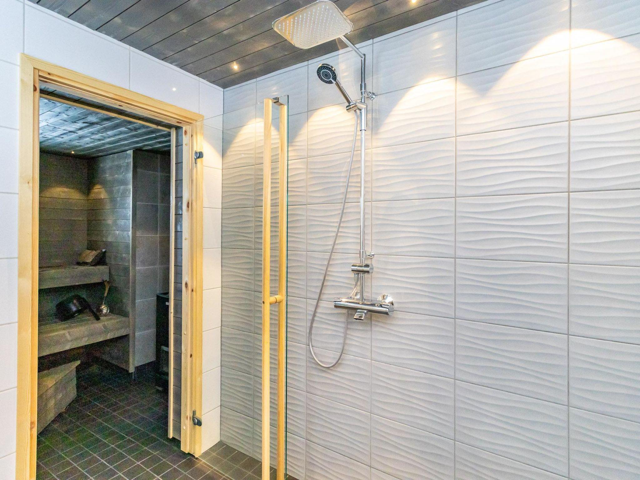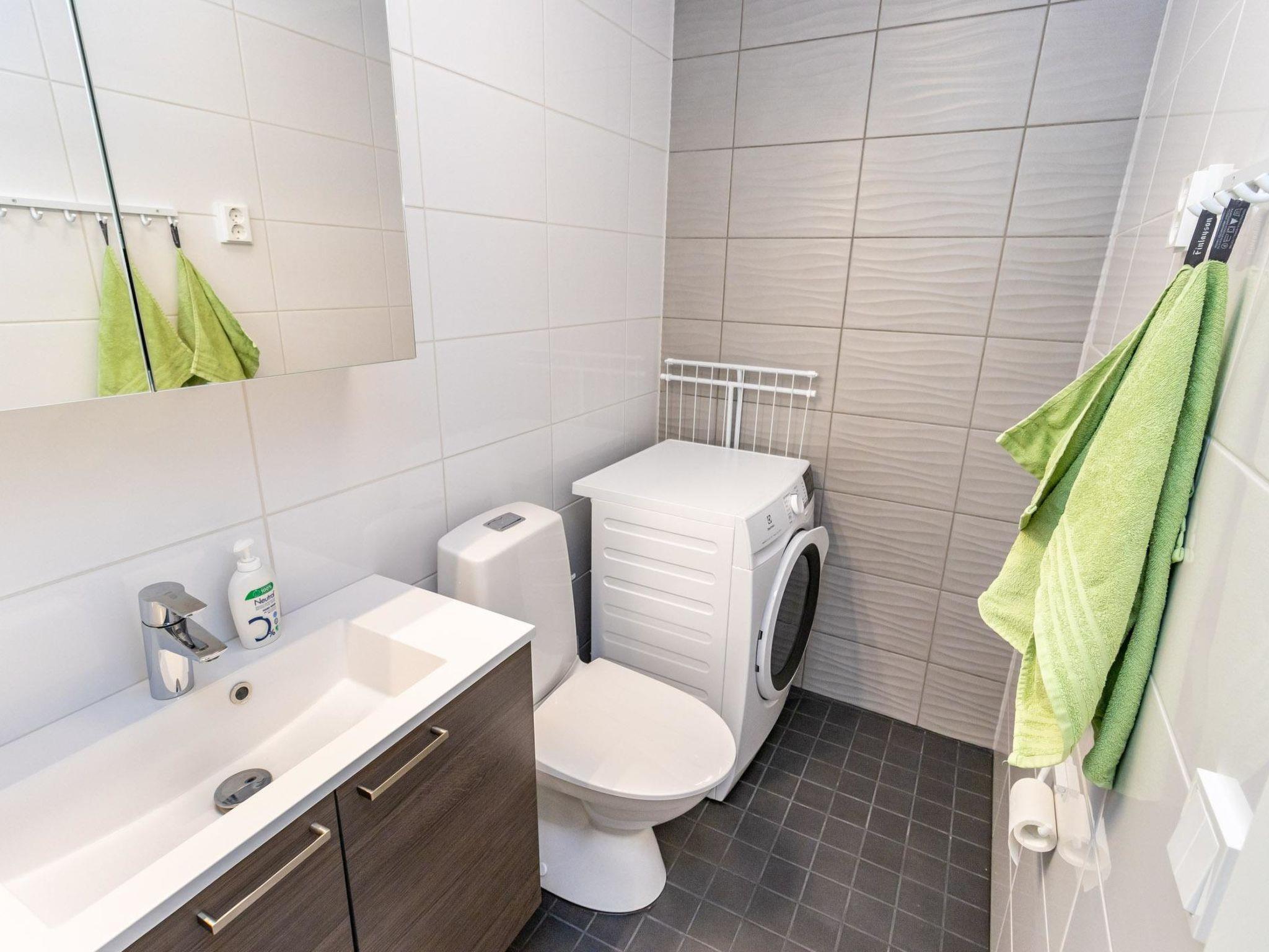 On the ground floor, wood-heated sauna and washroom with WC. The sauna lobby room can be used as a dressing room. In addition, separate WC with washing machine (including drying function).