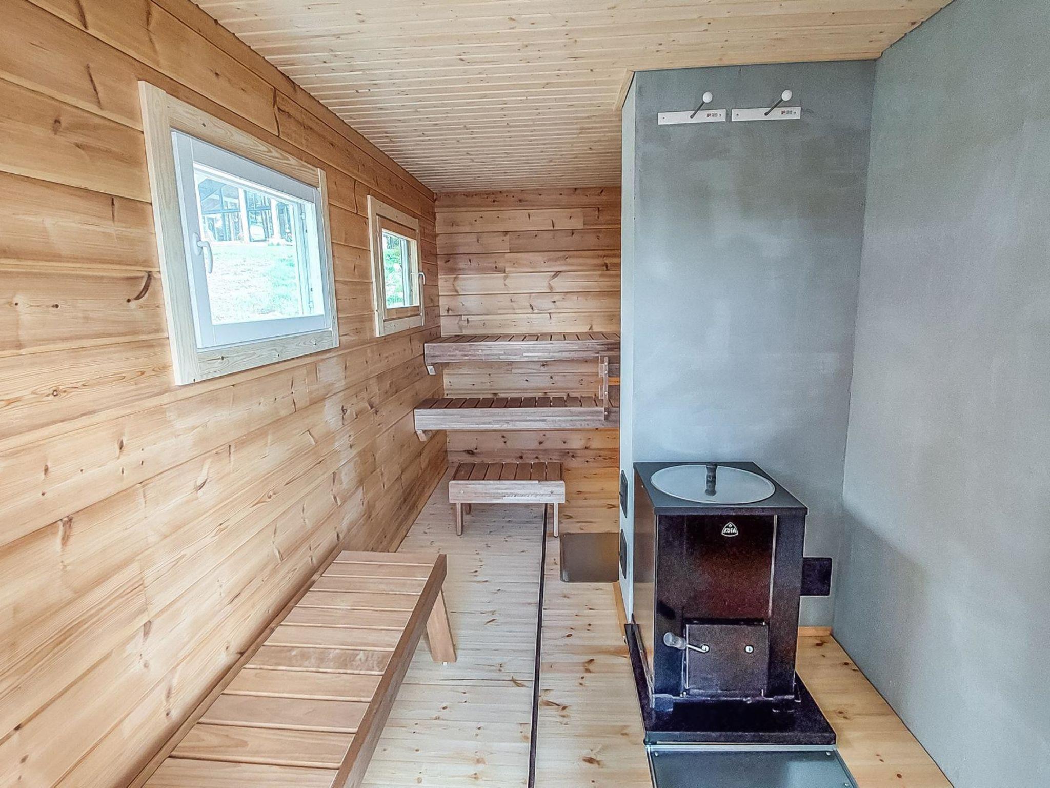 Lamel log-built villa, living room / kitchen with large windows facing the lake, bedroom with double bed, another bedroom with two separate beds (beds can be connected into double bed), loft with two beds (can be also connected into double bed). Sauna and washroom/WC, separate toilet, covered terrace and open terrace.