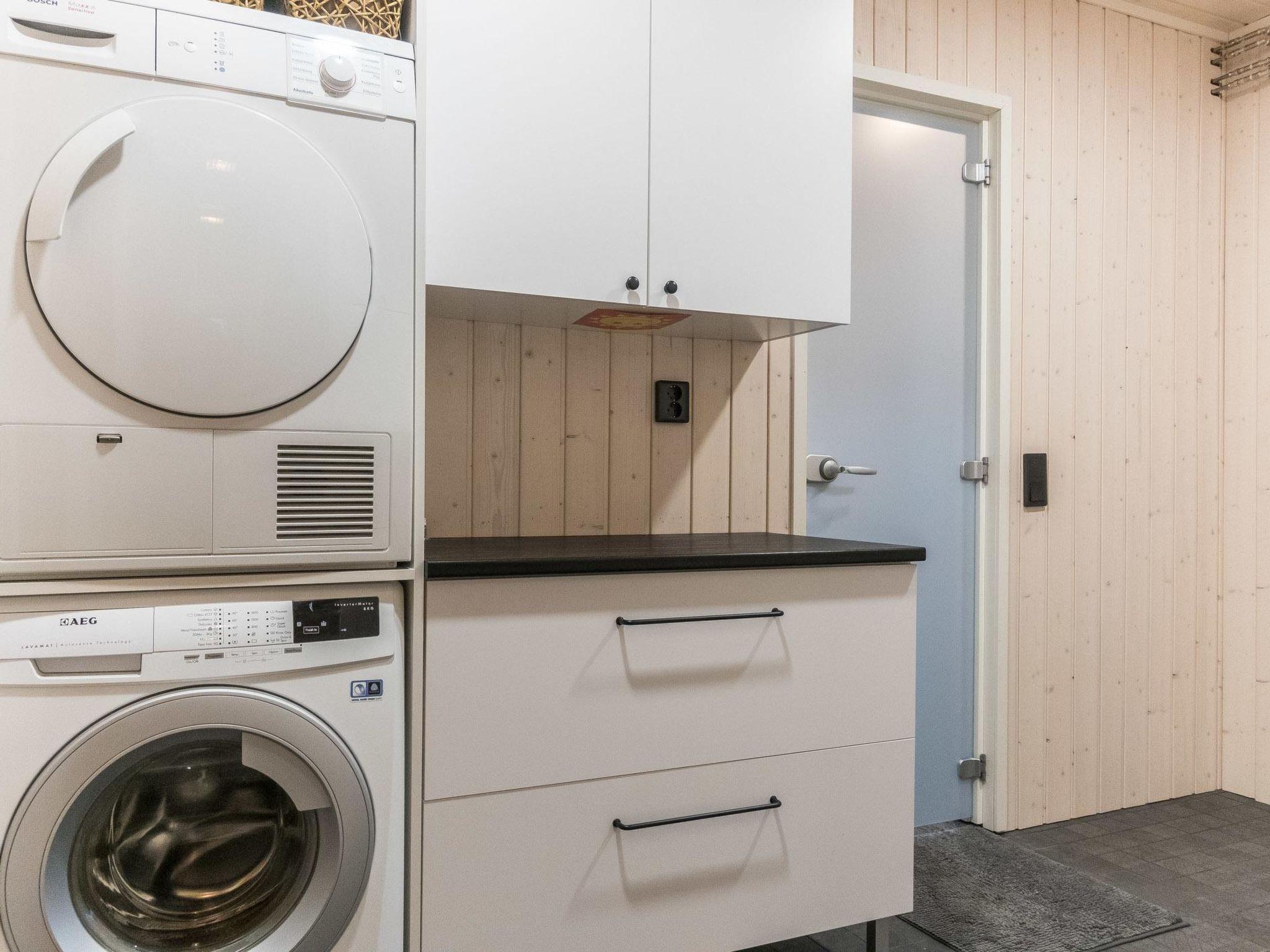 Living room with spreadable bed, bedroom with double bed, another bedroom with 2 separate beds, sauna, washroom/WC, separate WC and hall. Small covered porch.