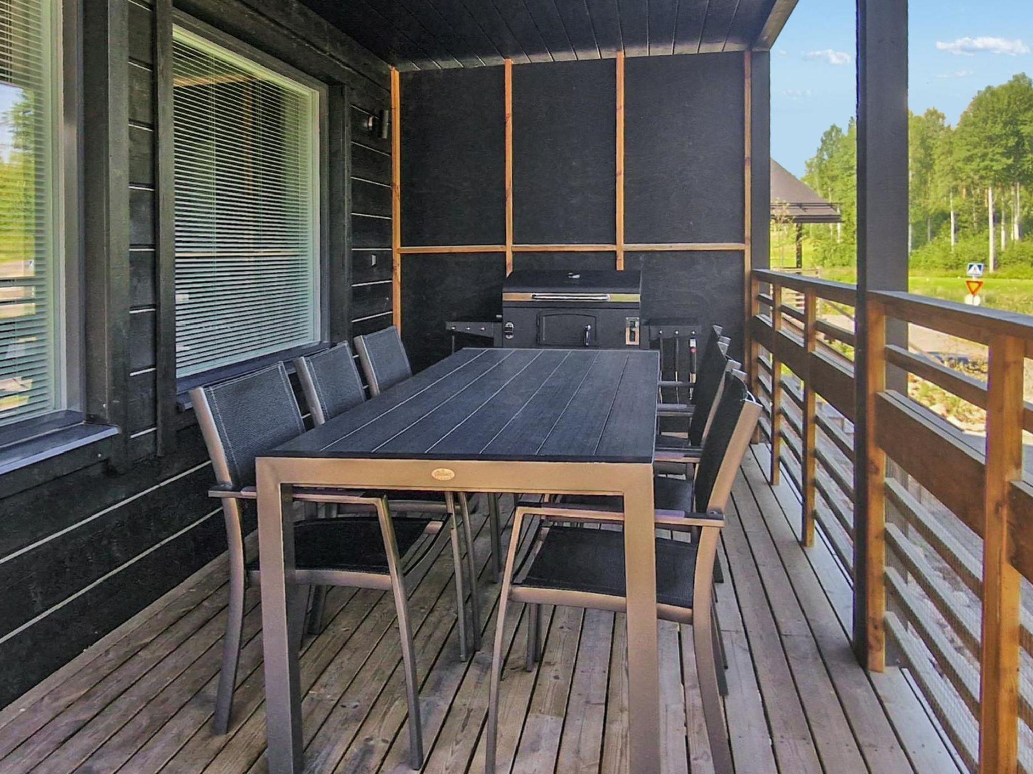 Spacious terrace on both sides of the apartment. Hydro massage bath outdoors and sofa group on the backyard terrace. There is terrace table with chairs on the terrace in the front yard. From the living room and the front yard there is a wonderful view of the golf green.