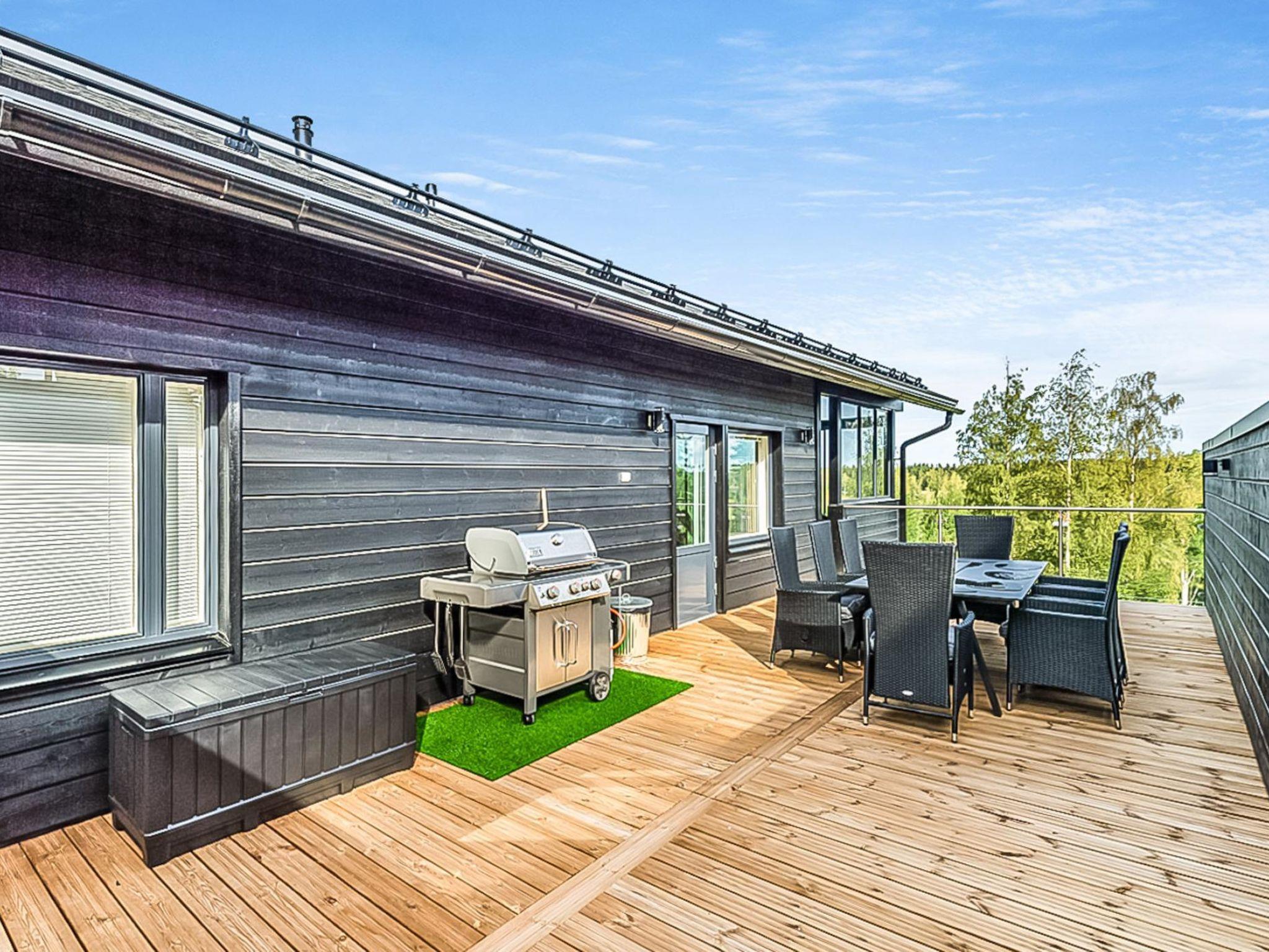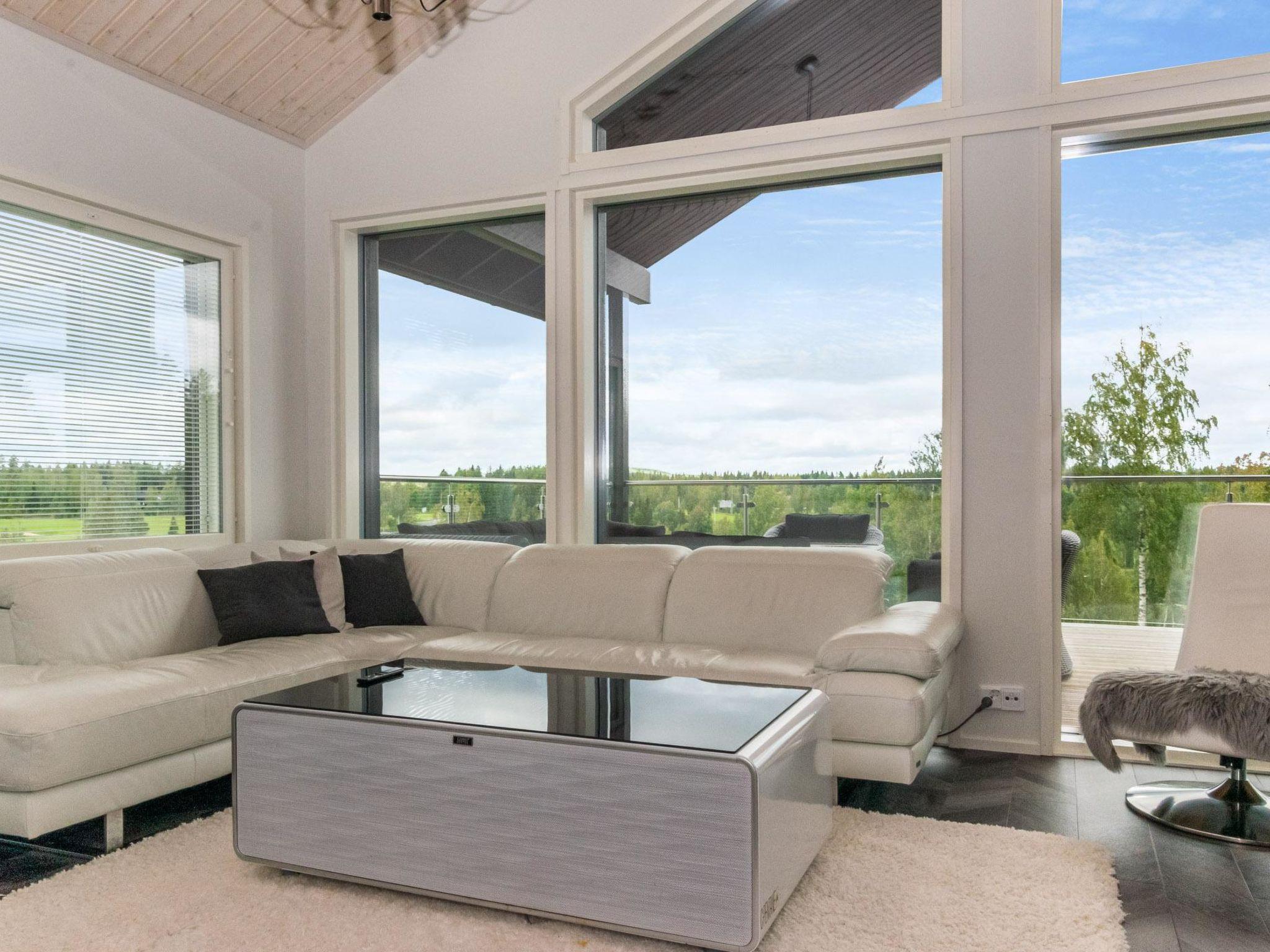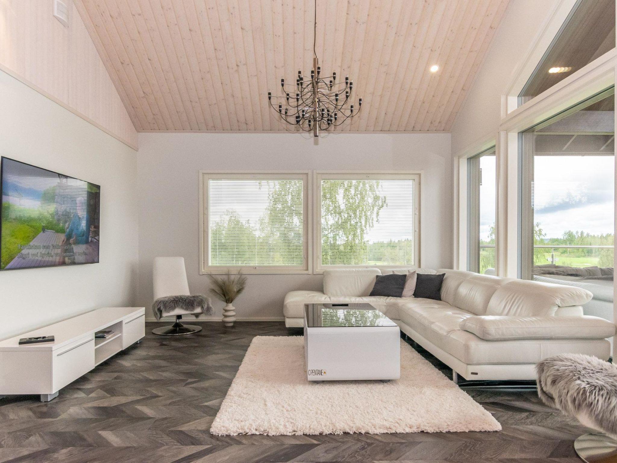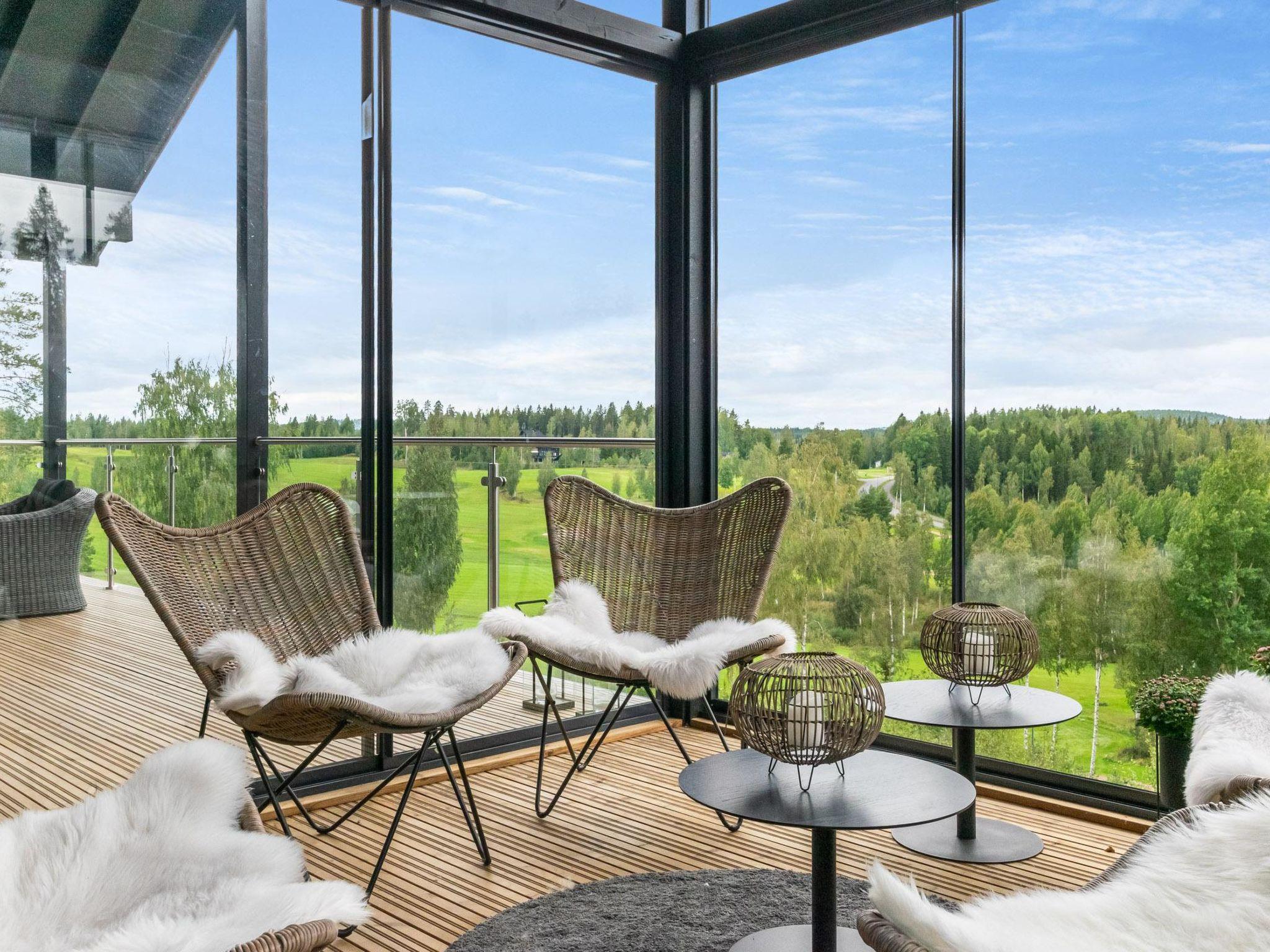 Magnificent, well-equipped, and spacious cabin situated on the western side of Himos, on a ski slope above Himos Golf Course. The cabin offers splendid views of the golf course from its terraces and windows, making it especially suitable for golf enthusiasts. The cabin comes with two private golf carts, included in the rental (for golfing use only). There is a glassed and non-glassed terrace on the upper floor. On the lower floor terrace, there is a hot tub available for rent.