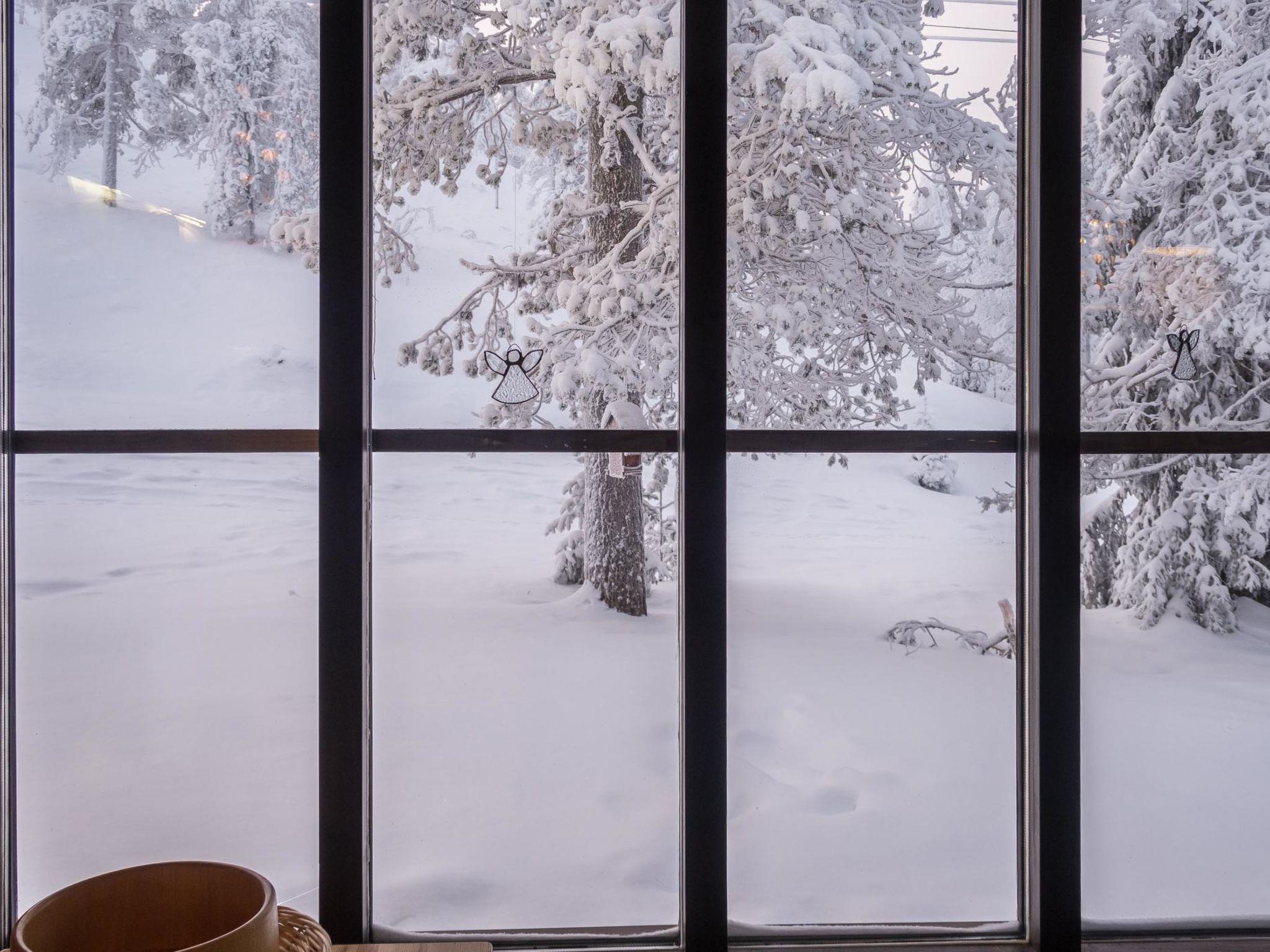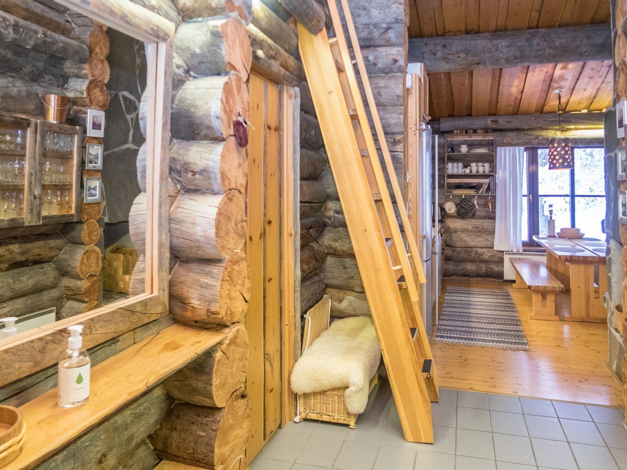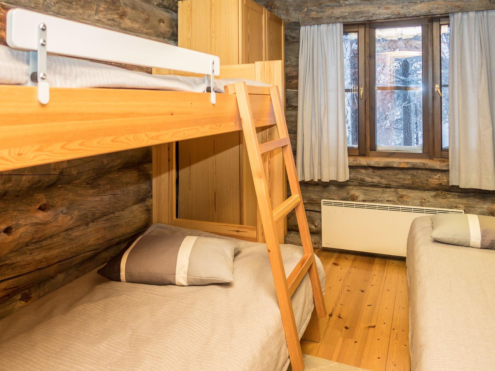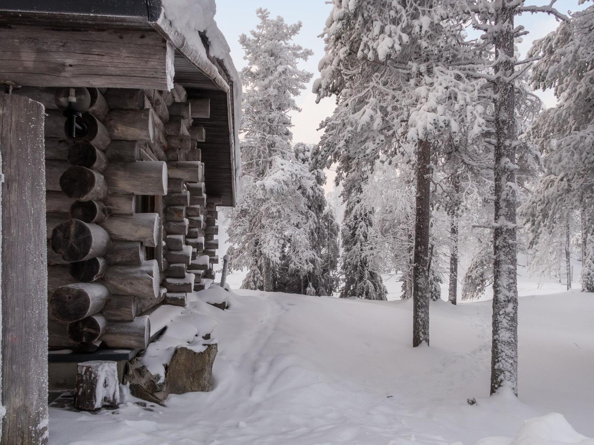 From Kuusamo to north 25 km, Ruka Village (West Ruka) 2 km, Vuosseli (East Ruka) 3 km. 1992 built semi-detached kelo log cabin, bedroom 1: bed + bunk bed, bedroom 2: bed + bunk bed, loft (steep stairs): double bed + 2 matresses. Combined kitchen + living room. Electric sauna.