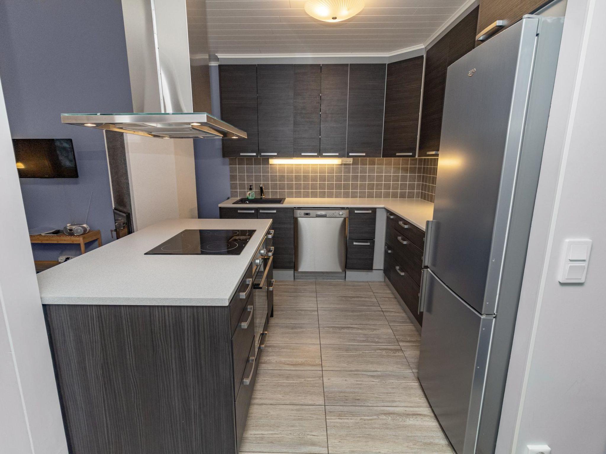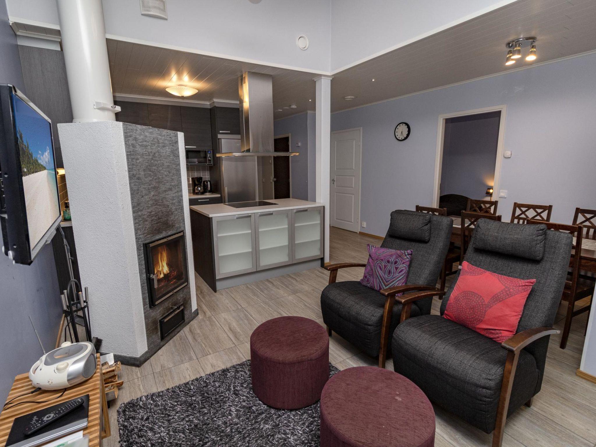 21 km north of Kuusamo, Ruka 6.7 km, Hirsilampi pond 200 m, Pyhäjärvi -lake 300 m. Apartment in terraced house, built in 2013, bedroom 1: double bed, bedroom 2: 2 beds, living room: sofabed for 2, combined kitchen/living room, electric sauna.