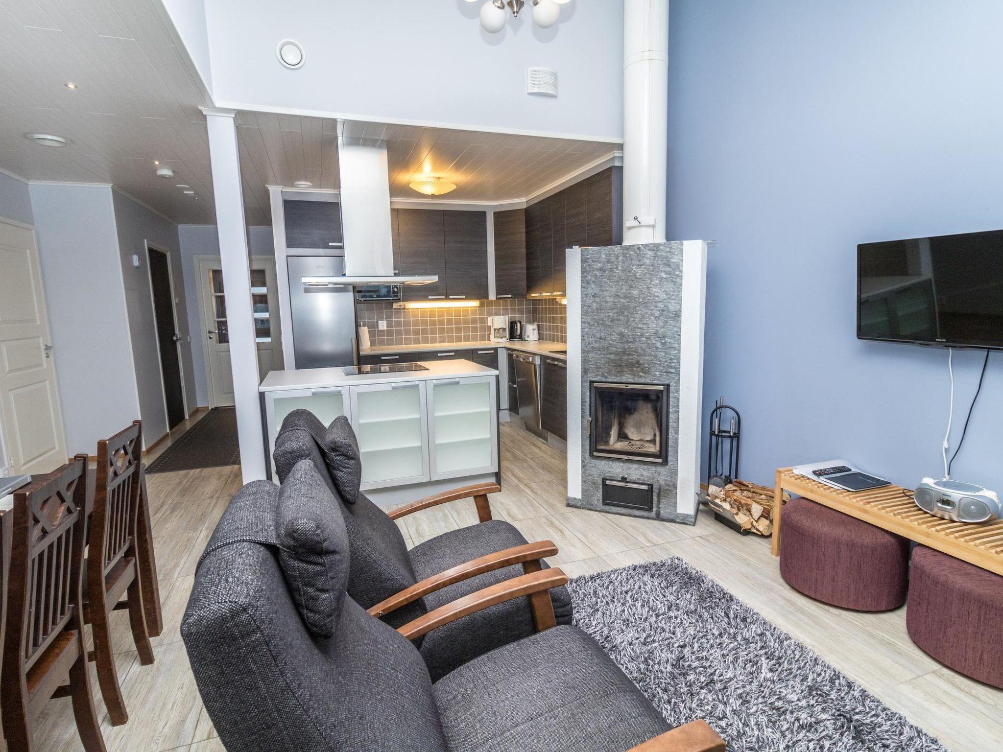 21 km north of Kuusamo, Ruka 6.7 km, Hirsilampi pond 200 m, Pyhäjärvi -lake 300 m. Apartment in terraced house, built in 2013, bedroom 1: double bed, bedroom 2: 2 beds, living room: sofabed for 2, combined kitchen/living room, electric sauna.