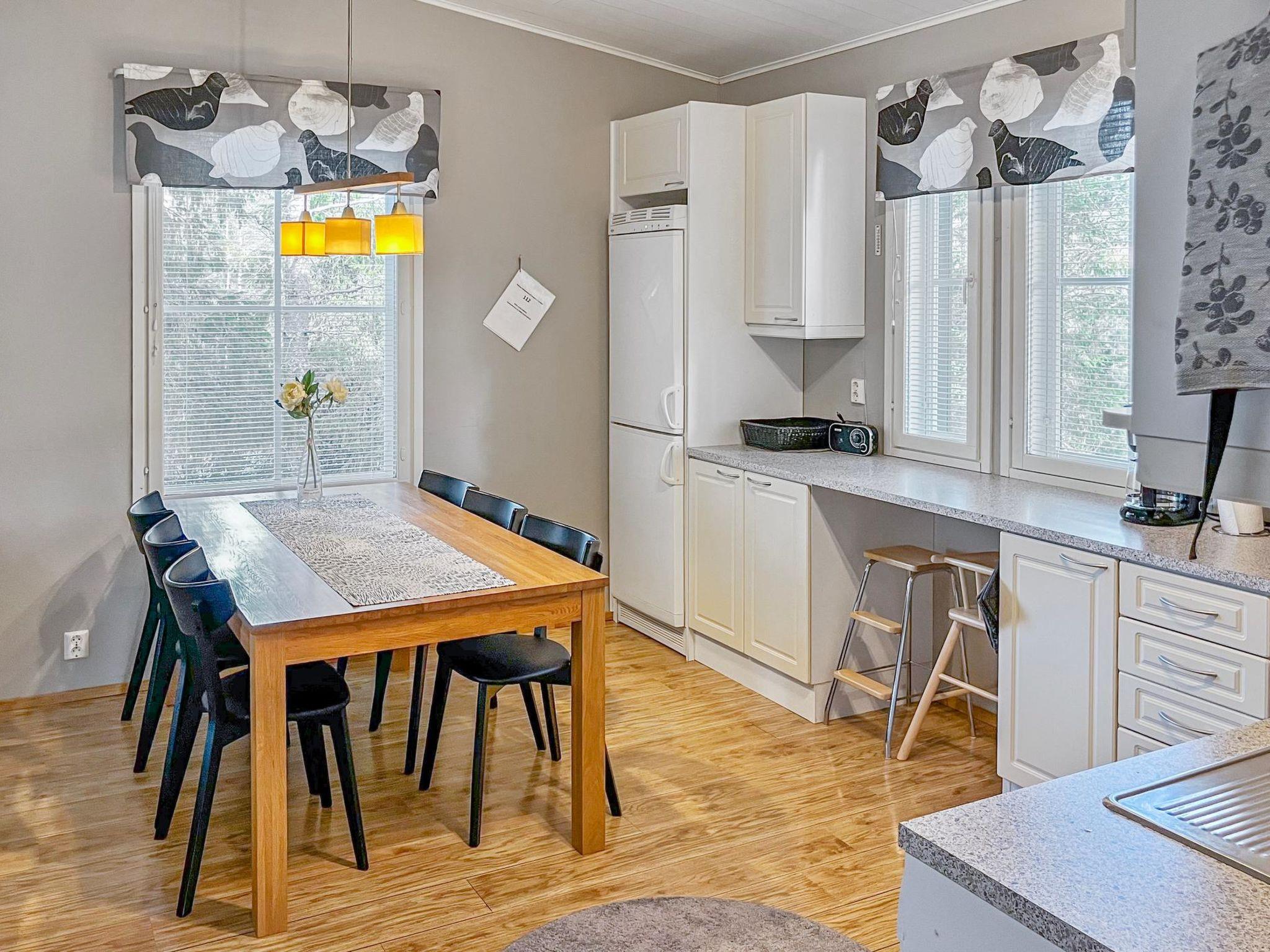 Cottage is built in 2006, living room/kitchen, bedroom 1 with double bed, bedroom 2 with 2 beds, loft with 2 beds and 2 extra mattresses. Utility room, electric sauna and bathroom, sauna terrace and balcony. Carport for 1 vehicle, storage room, own boat and pier in shore. The bottom of the beach deepens sharply. It is good to go swimming from the pier ladder.