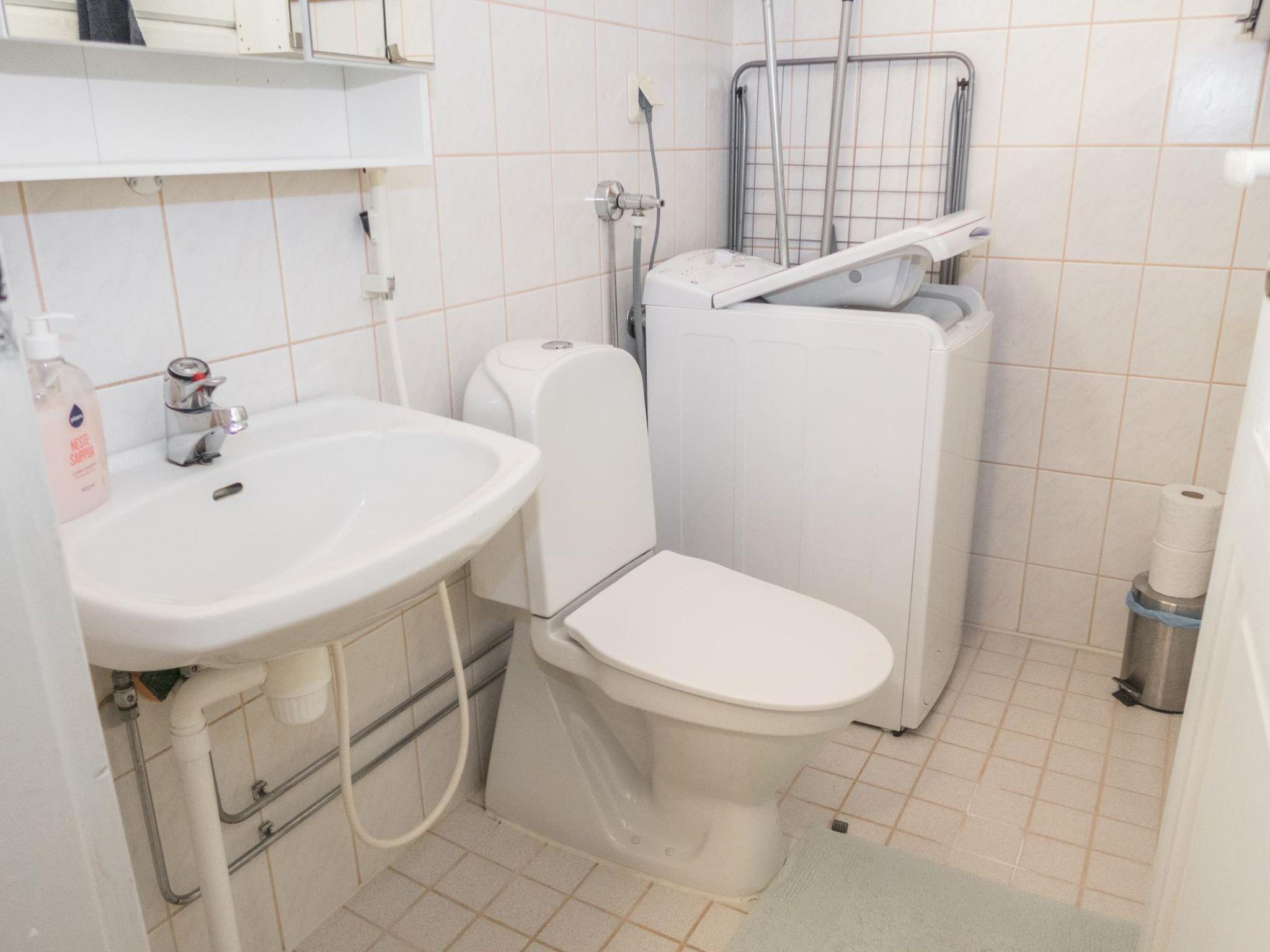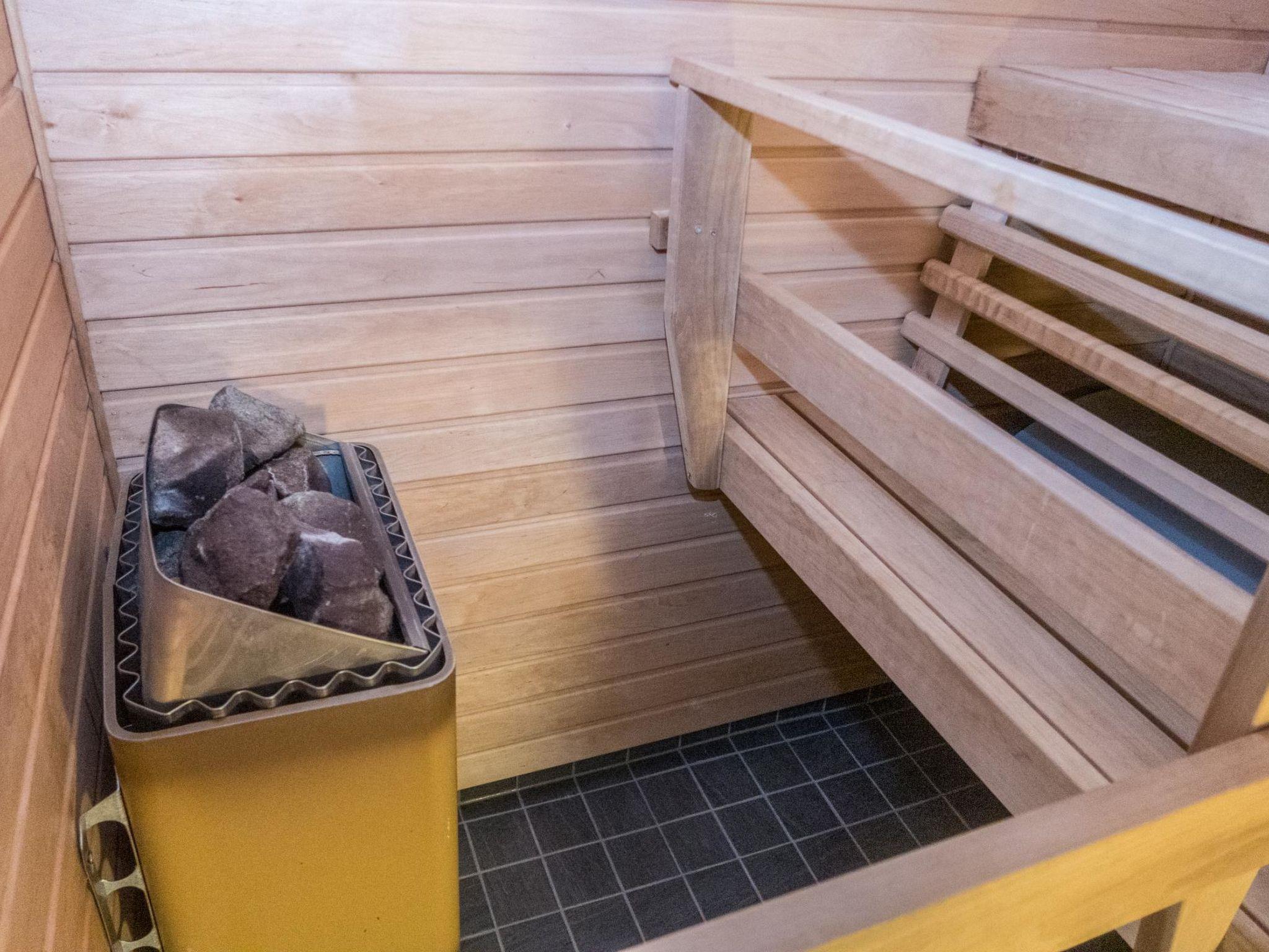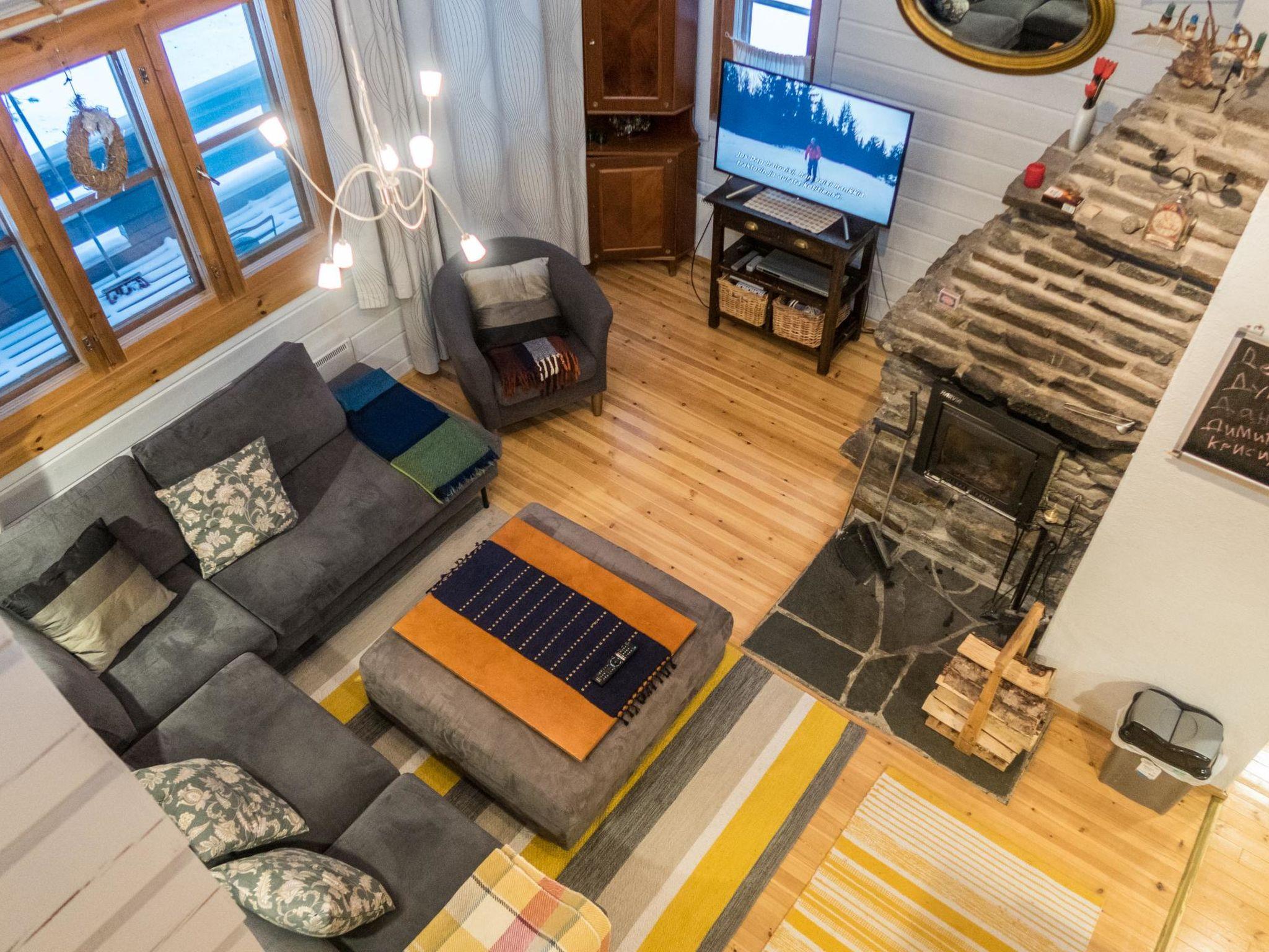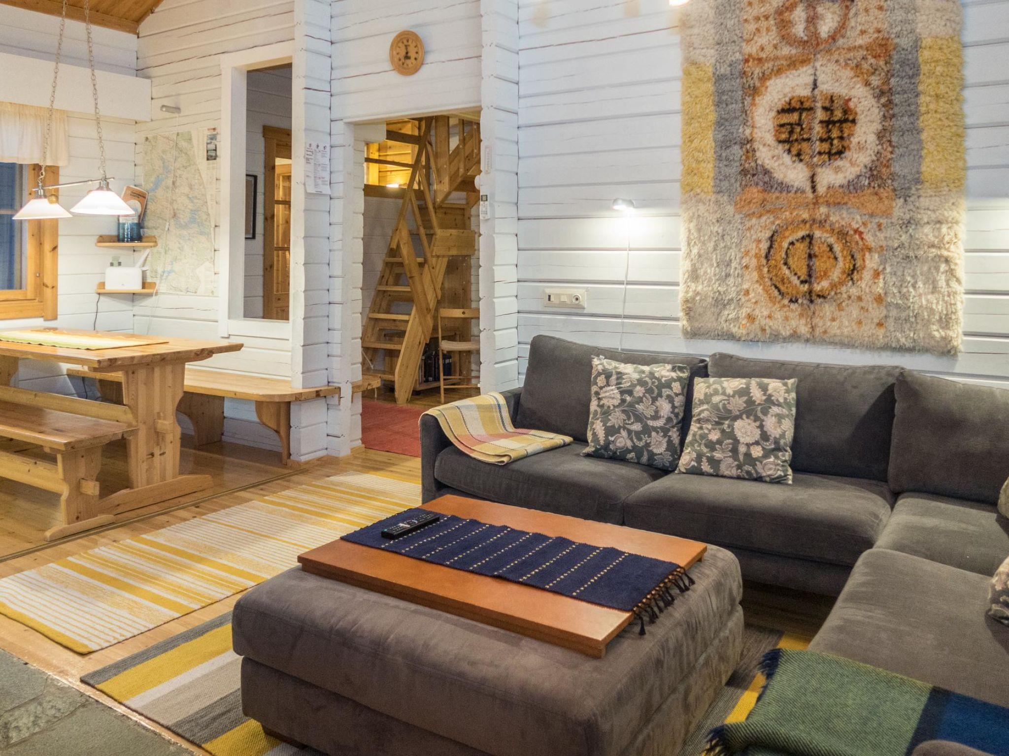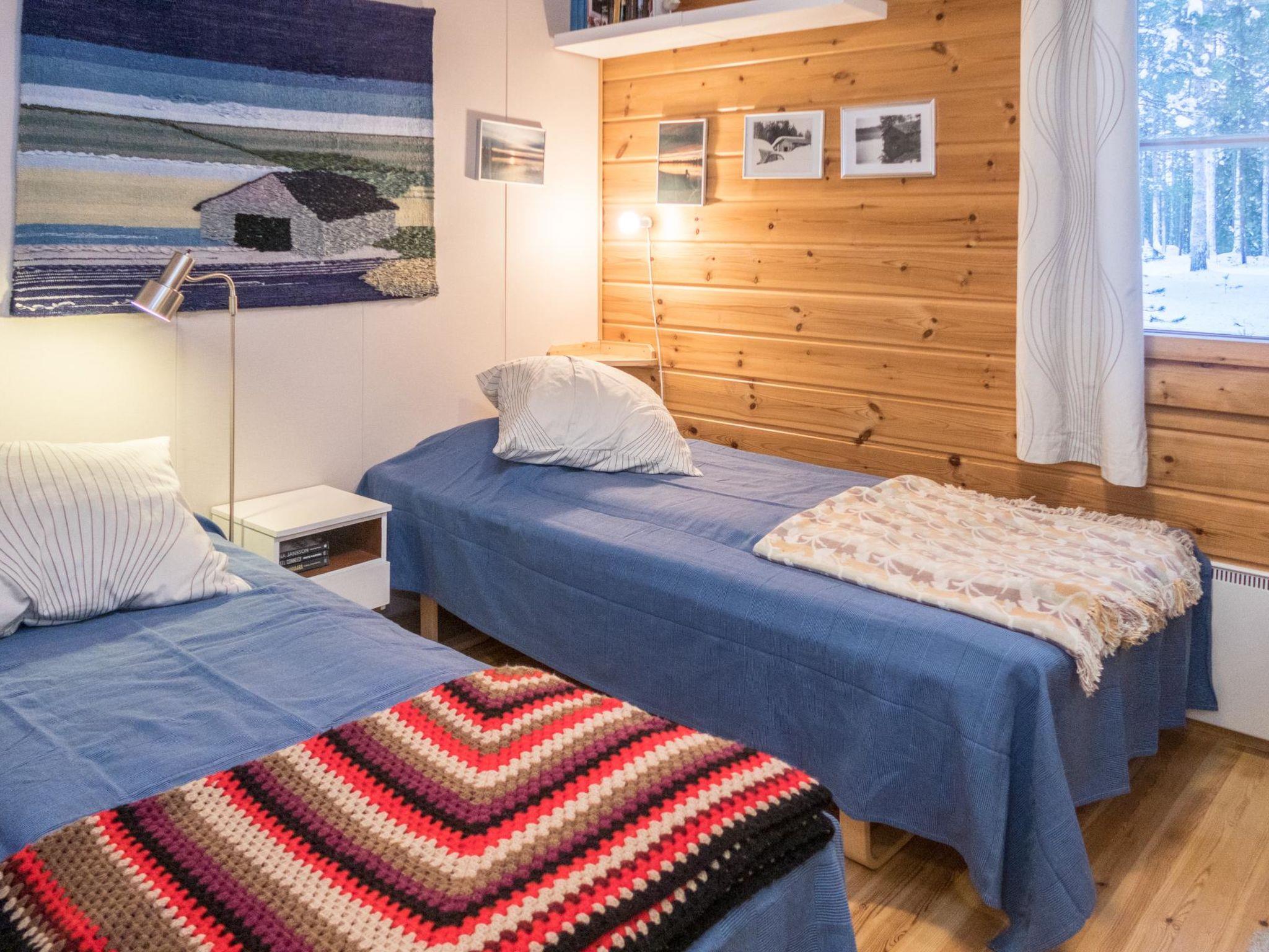 Log terraced house with three apartments, built in 1990, living room/kitchen, 2 bedrooms: 2 beds in each one (width 120 cm), sleeping loft with 4 beds, washroom, sauna (elec. stove), open porch.