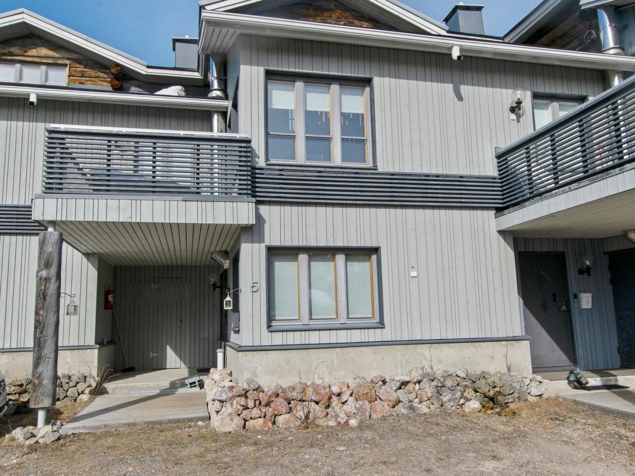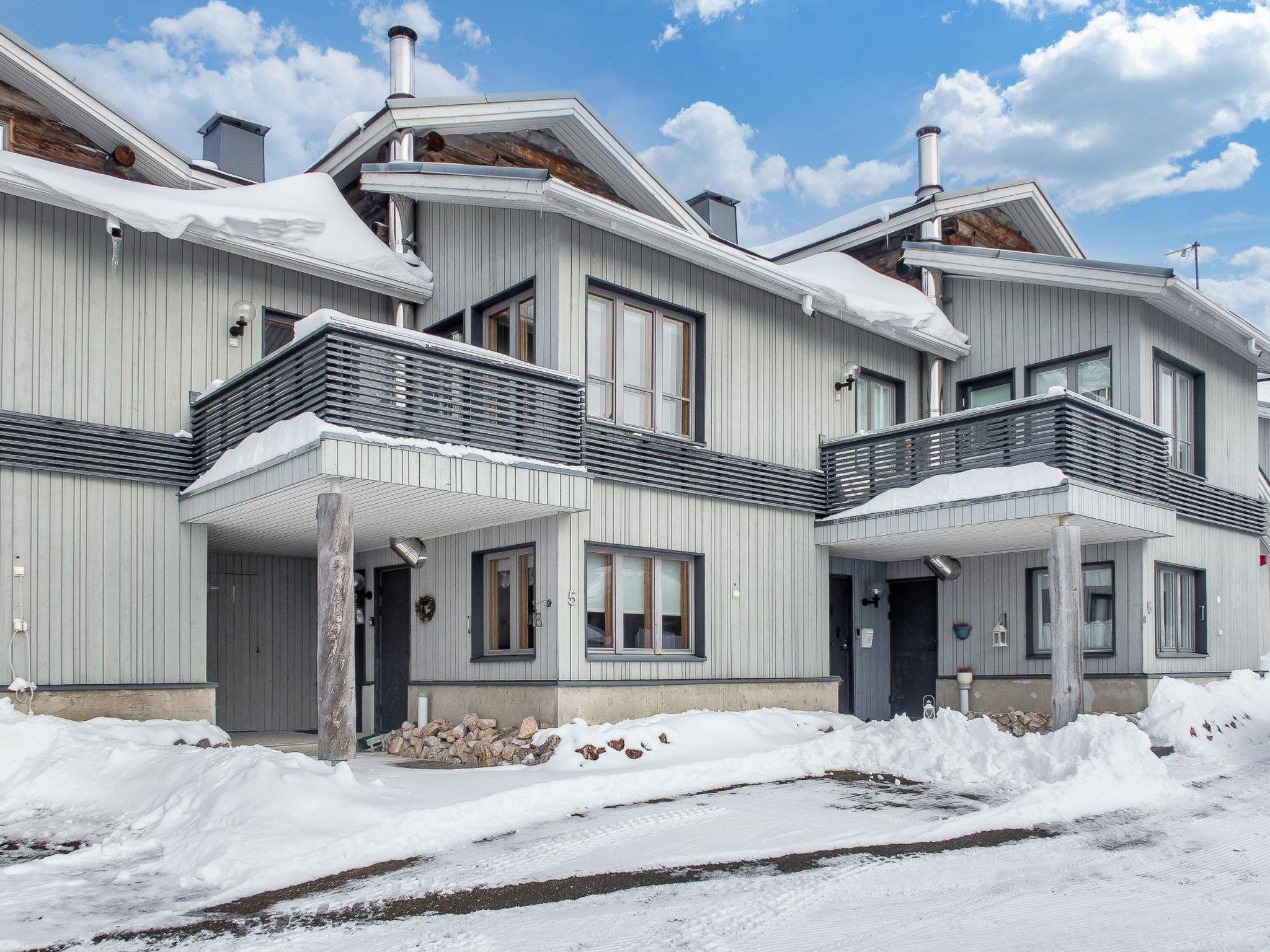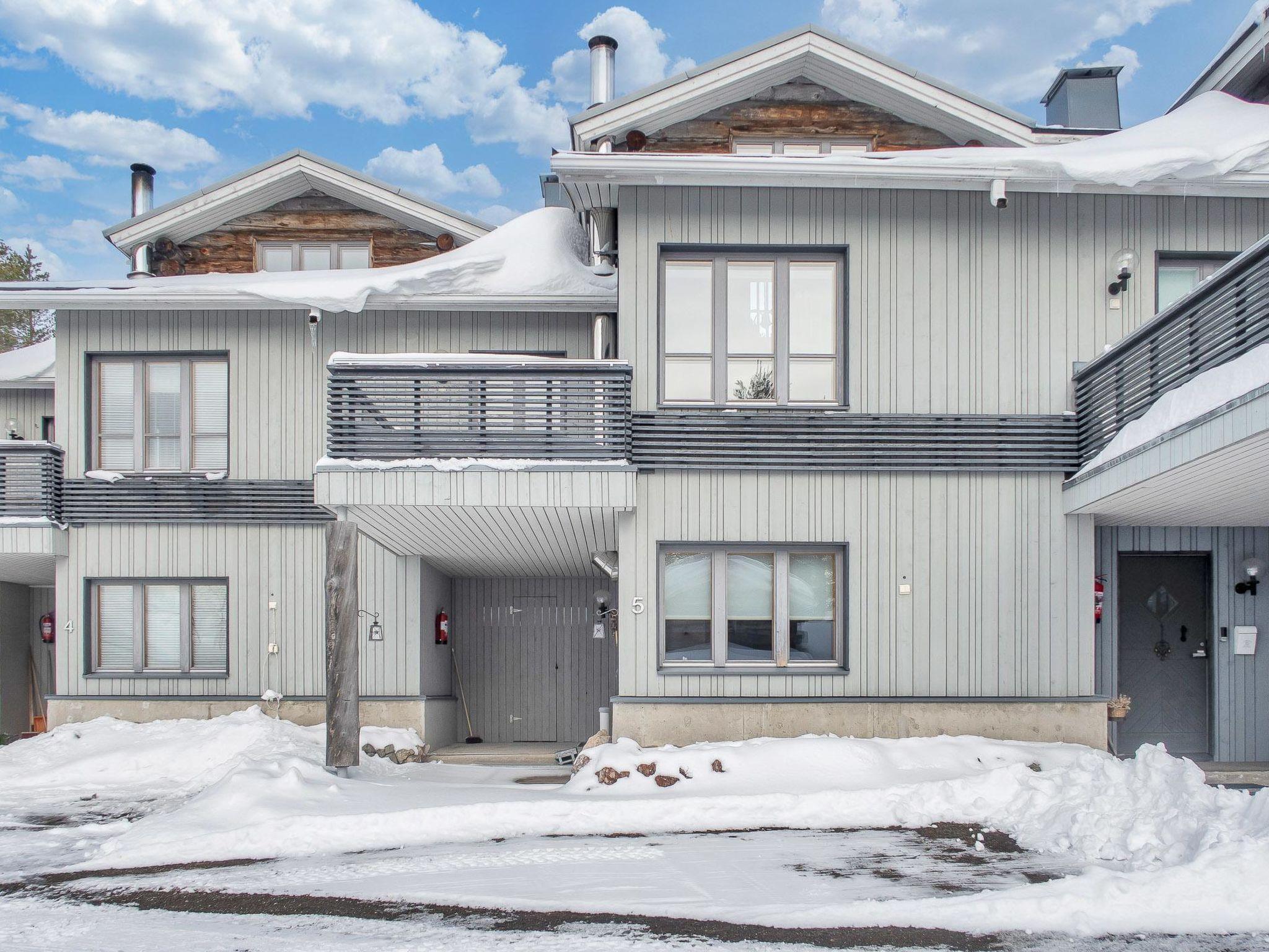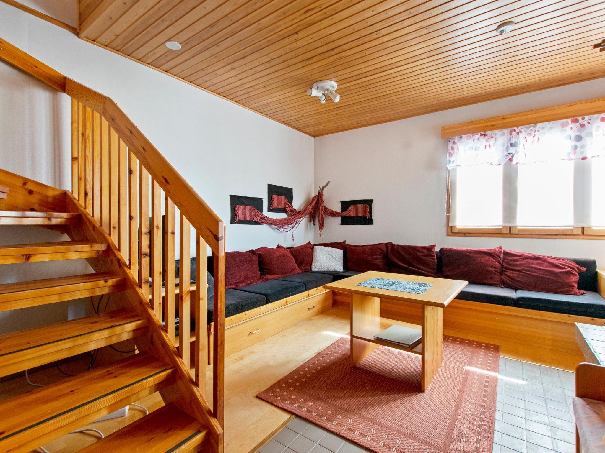 27 km north of Kuusamo, Ruka village (Western Ruka) 1.5 km. Two-storey apartment with loft in terraced cottage , downstairs washroom, sauna and fireplace room (sofa, sleeping place for one ) and TV. On the second floor open plan kitchen, bedroom with double bed, dining area, terrace facing to the west. Two beds on the loft.
