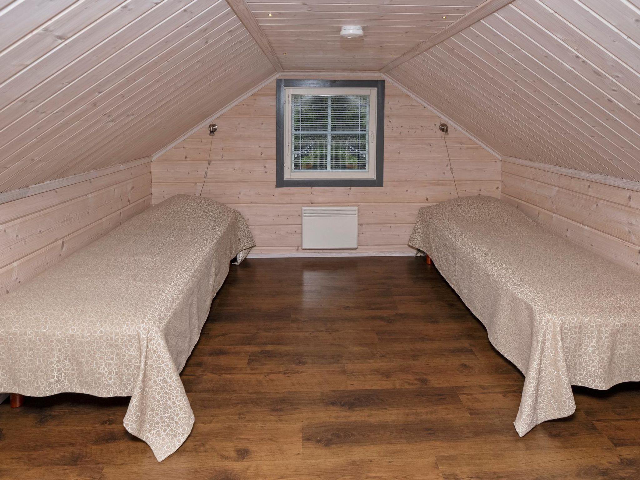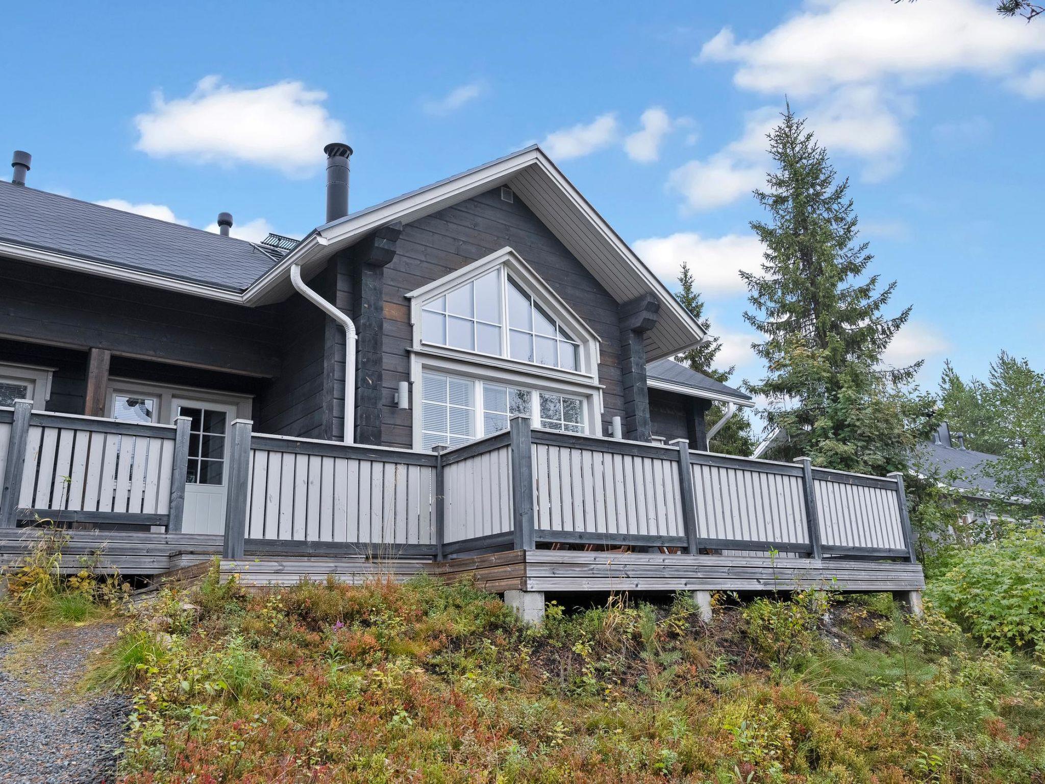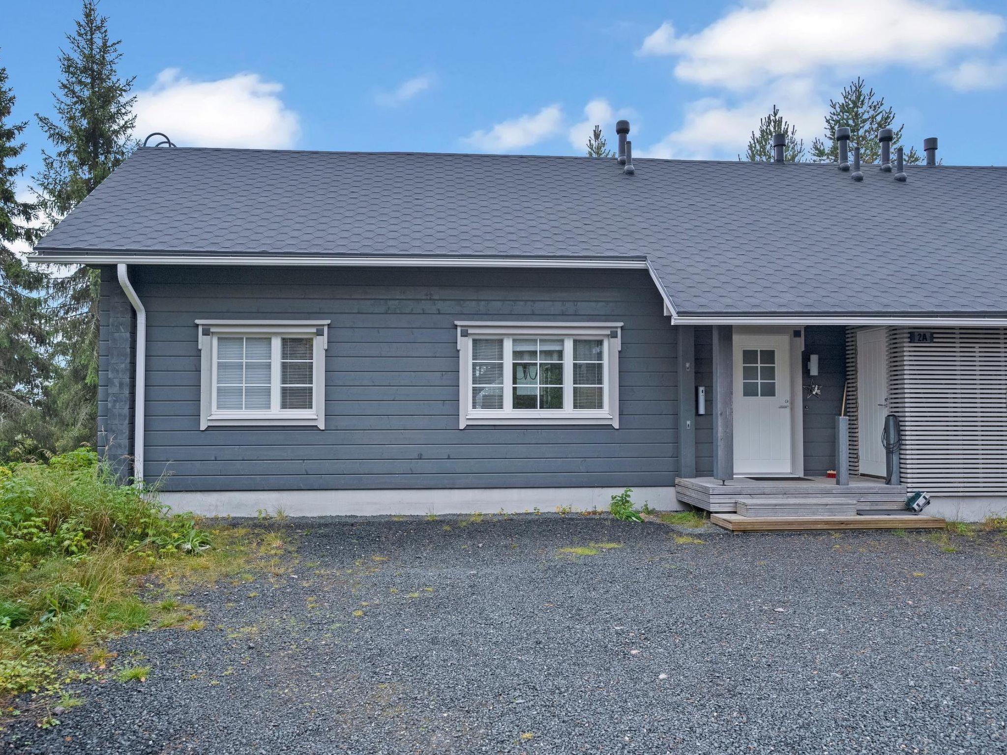 27 km to the north from Kuusamo, view to the lake Vuosselijärvi (200m to the lake, no swimming beach). Half of the semi-detached log cottage, built in 2011, kitchen, living room, fireplace, bedroom 1: two beds, bedroom 2: two beds, loft: in both ends two beds, shower room, sauna (electric stove), two toilets, terrace. Also separate sauna (heating with wood) in the yard.